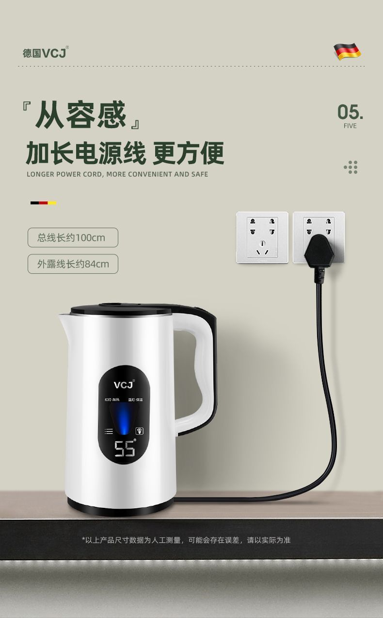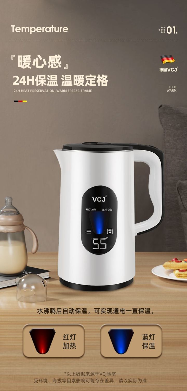 德国VCJ煮水壶保温大容量智能恒温烧水壶家用耐用自动断电热水壶