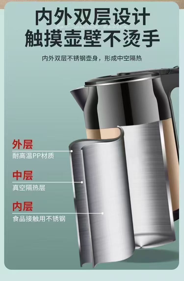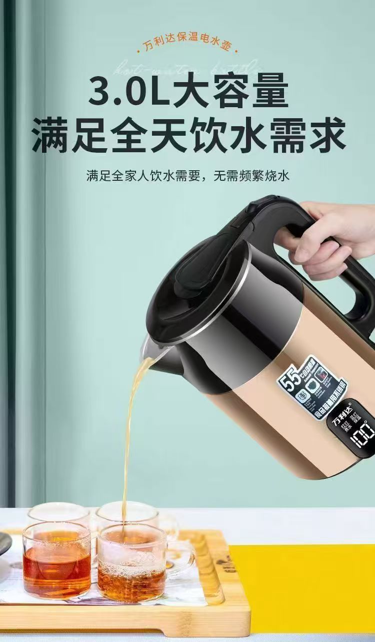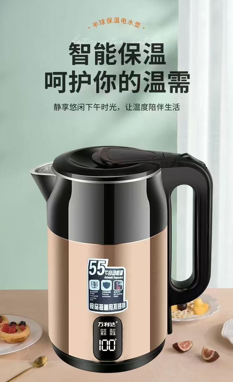 万利达电热水壶加厚保温烧水壶家用耐用大容量开水壶自动断电快壶