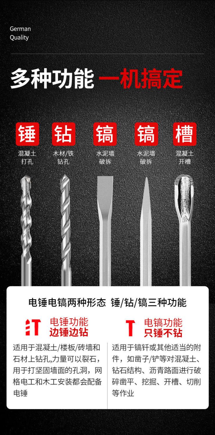 德国电锤电镐两用混凝土家用多功能工业级大功率冲击钻电钻三用锤