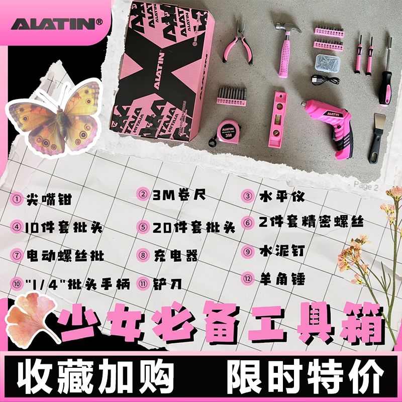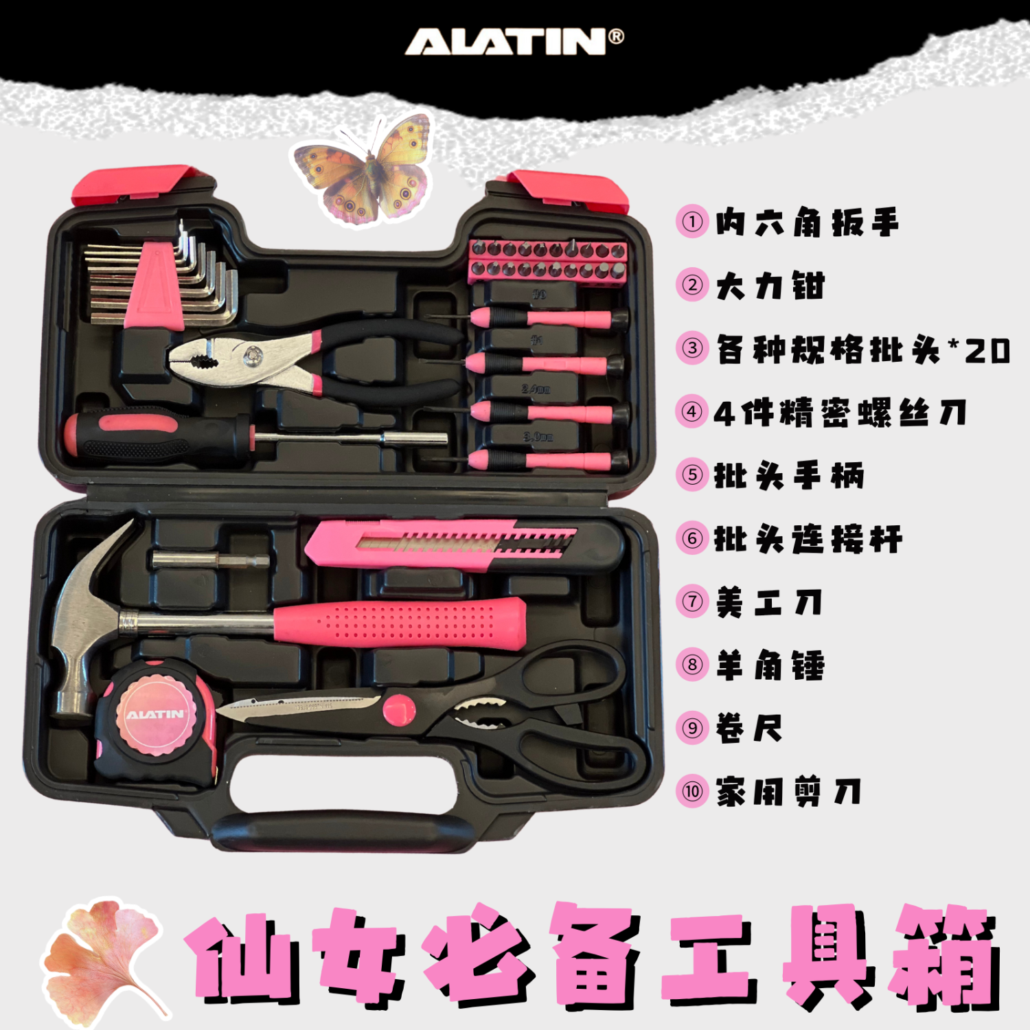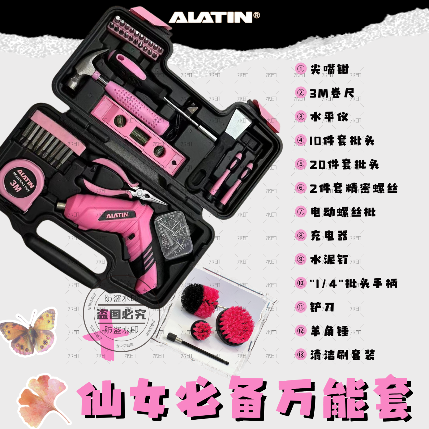 alatin手电钻充电锂电钻螺丝刀家用工具箱套装五金工具套装多功能