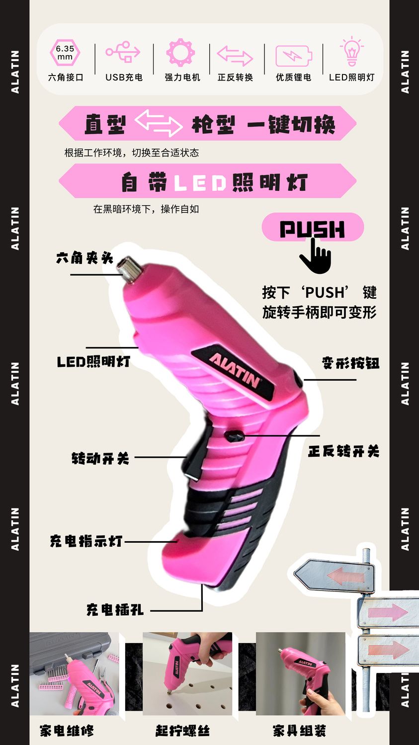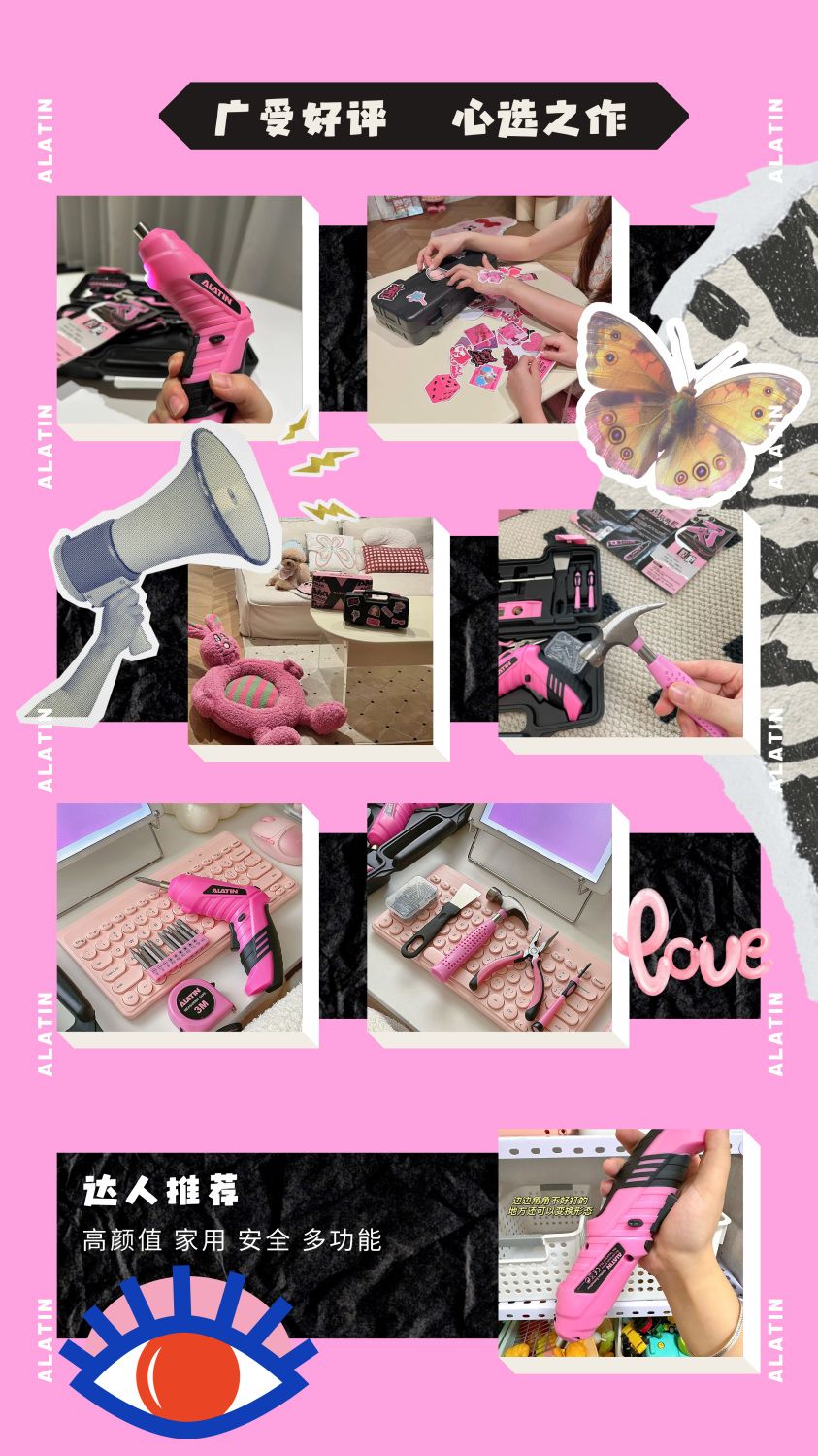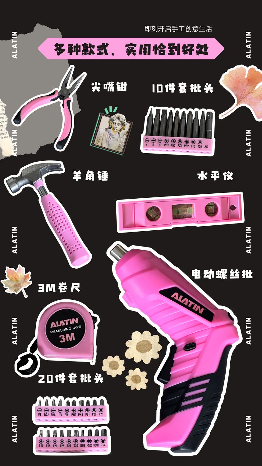 alatin手电钻充电锂电钻螺丝刀家用工具箱套装五金工具套装多功能