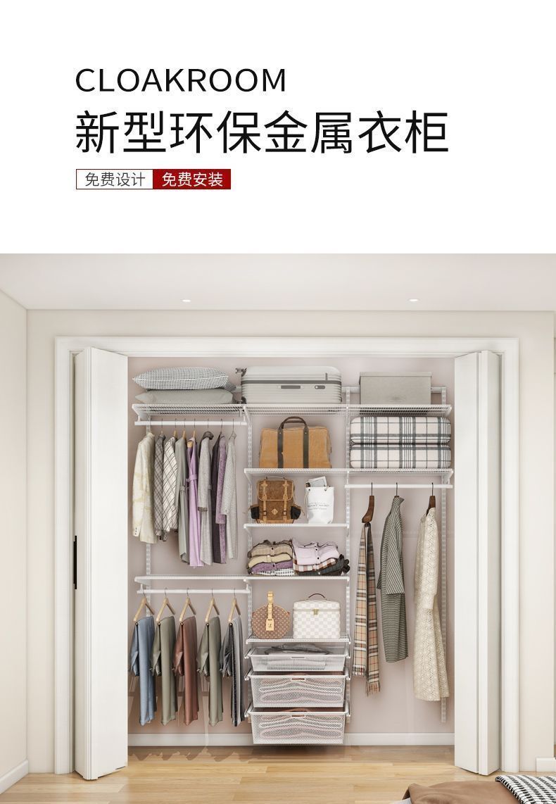 金属衣柜定做全钢架开放式衣帽间卧室衣橱壁挂墙衣柜组合diy组装