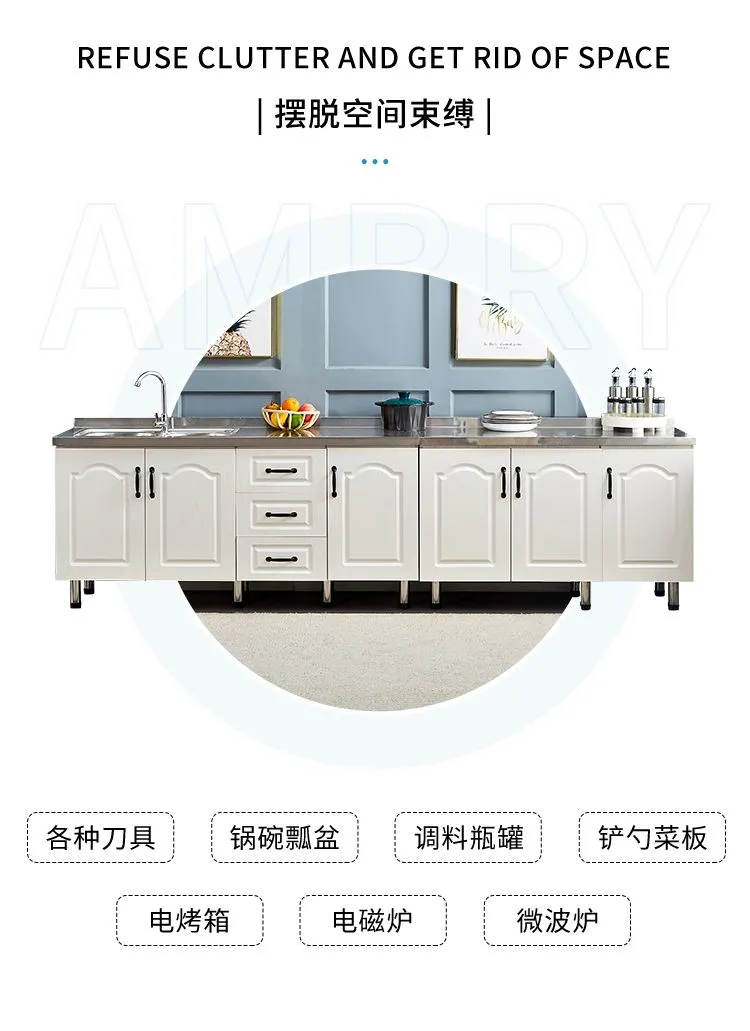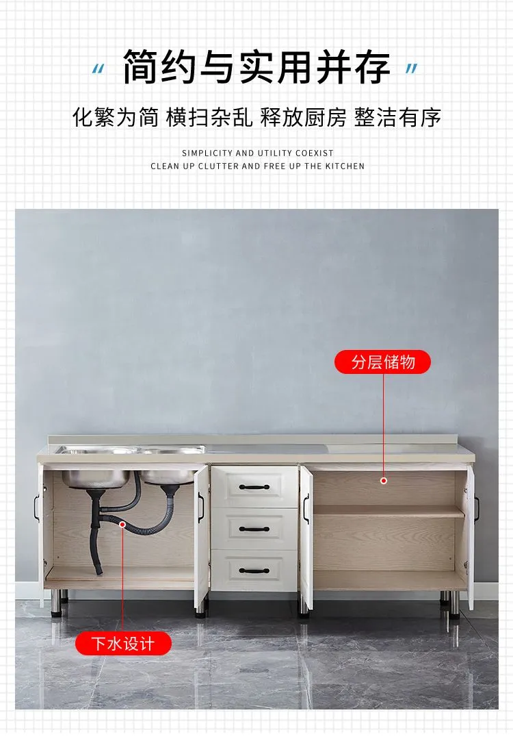 简易橱柜家用厨房不锈钢橱柜组装洗碗柜经济型出租房灶台柜储物柜