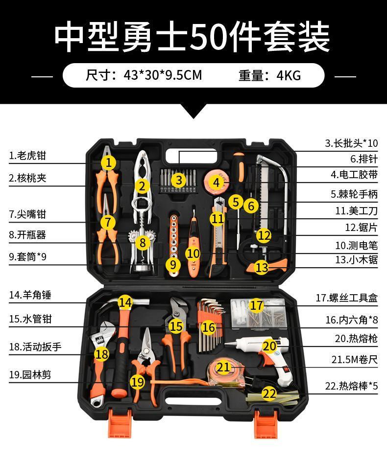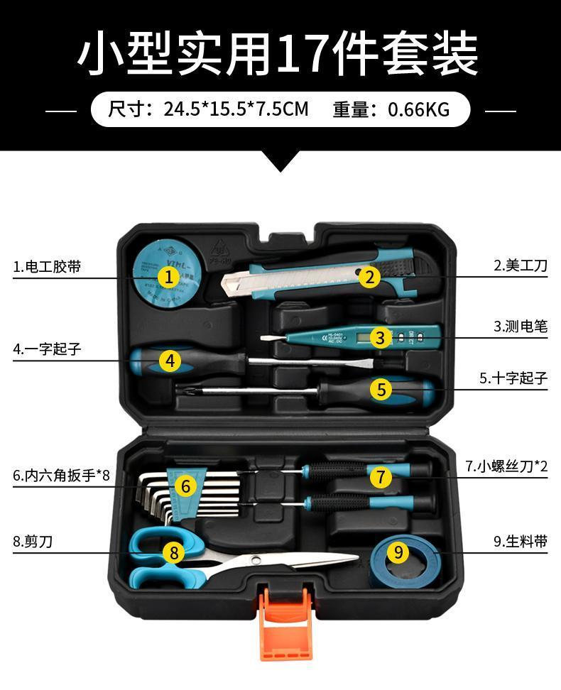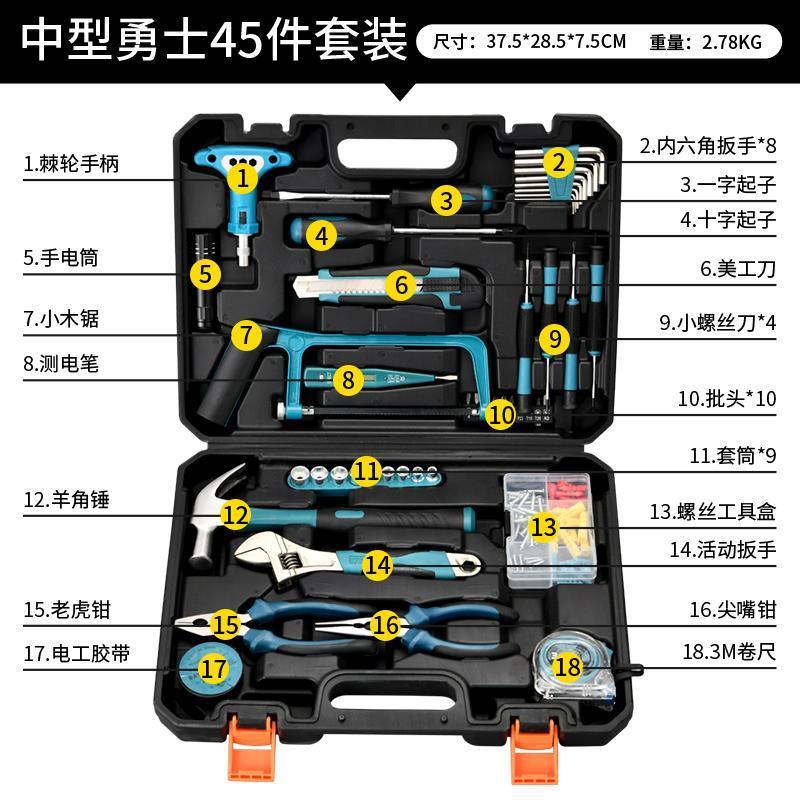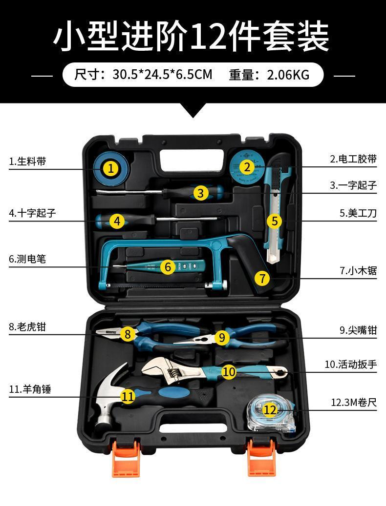 沃巴家用工具箱多功能手动五金套装家庭电工木工维修组合套冲量款
