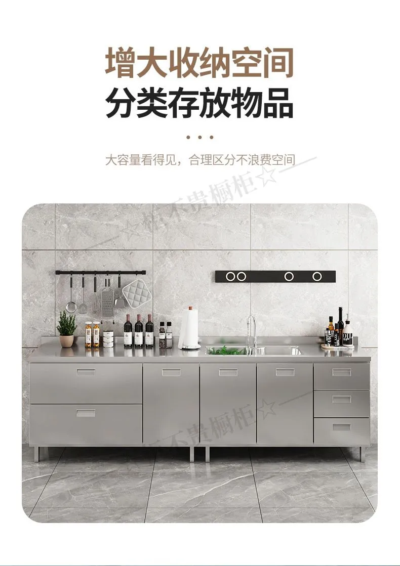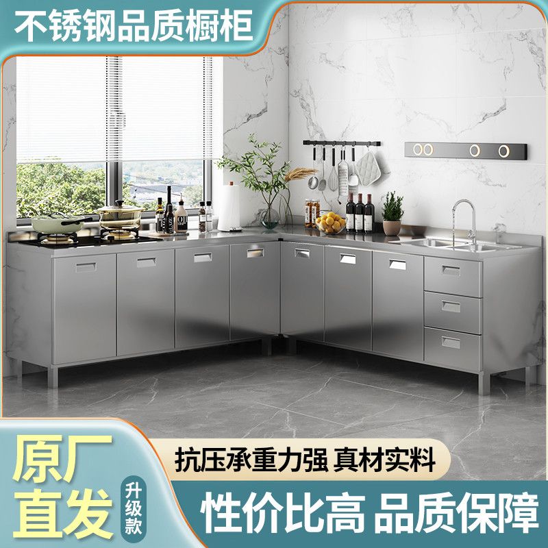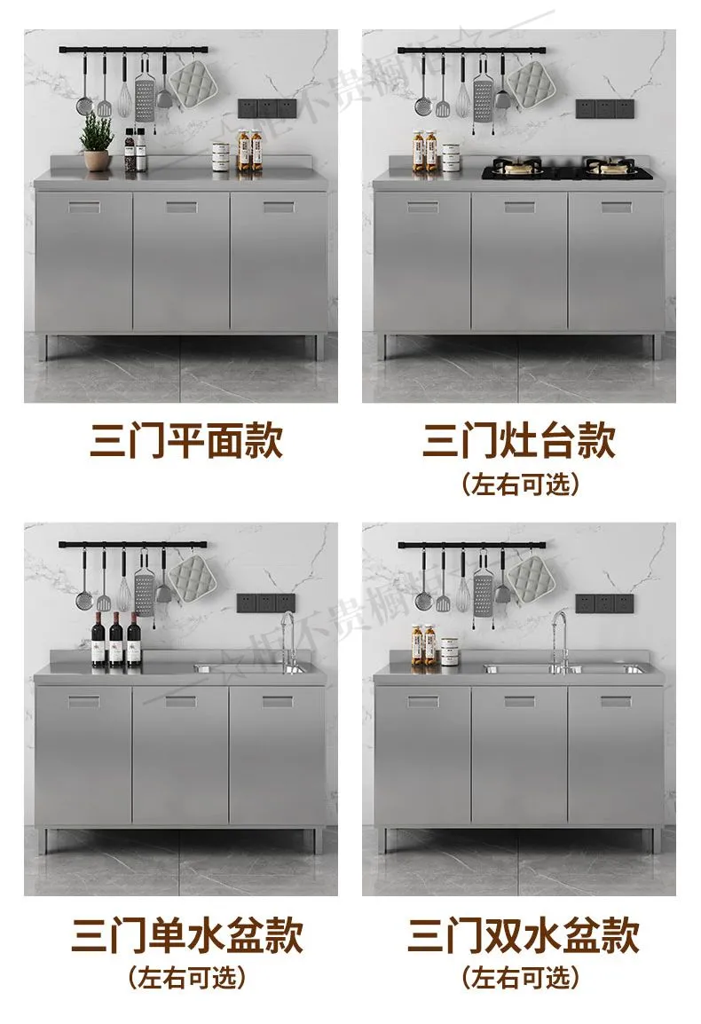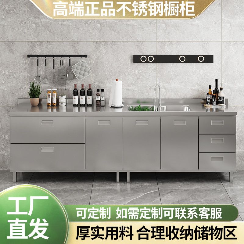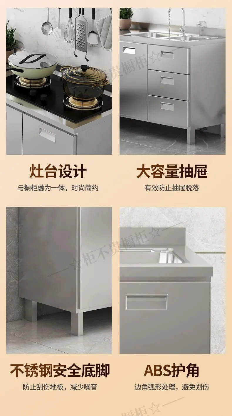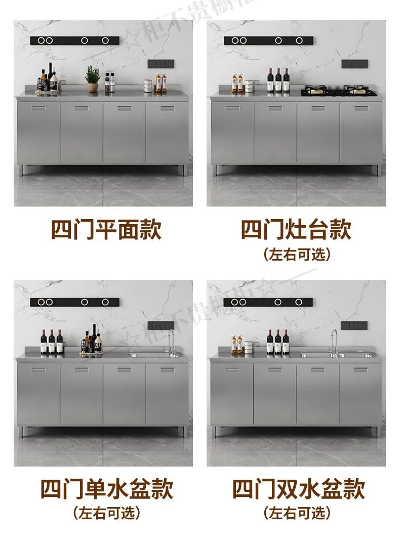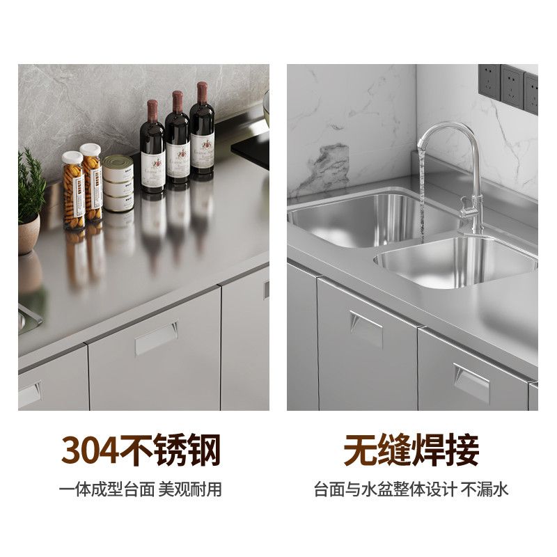 304不锈钢厨房橱柜加厚型橱柜家用厨房碗柜灶台洗菜盆一体组合柜