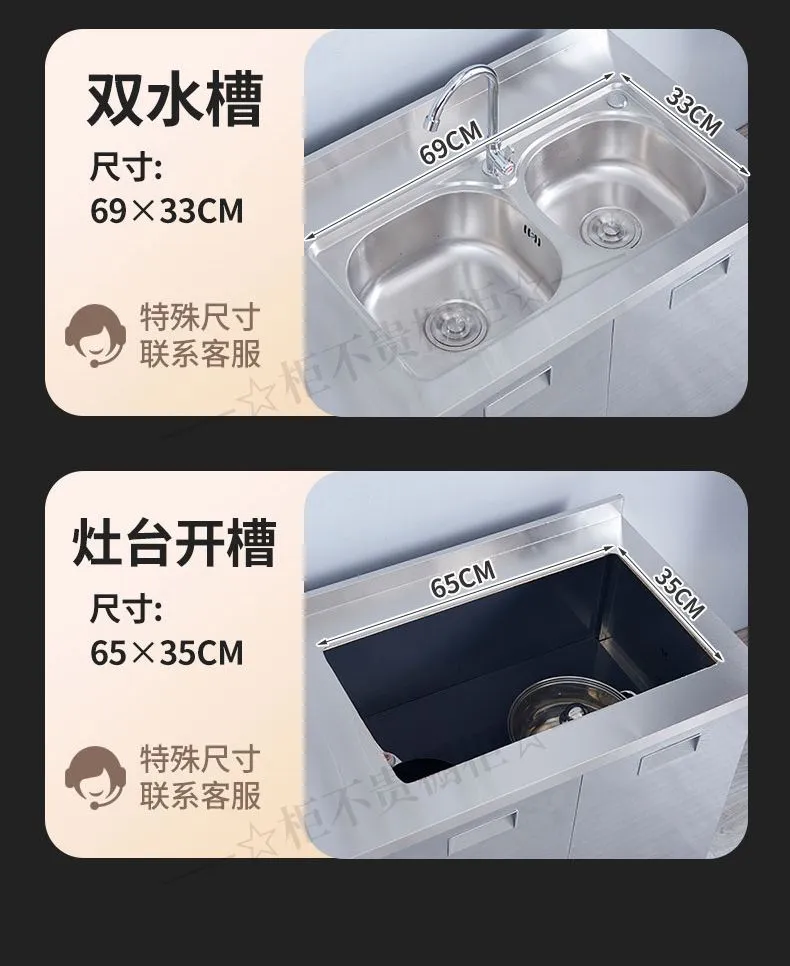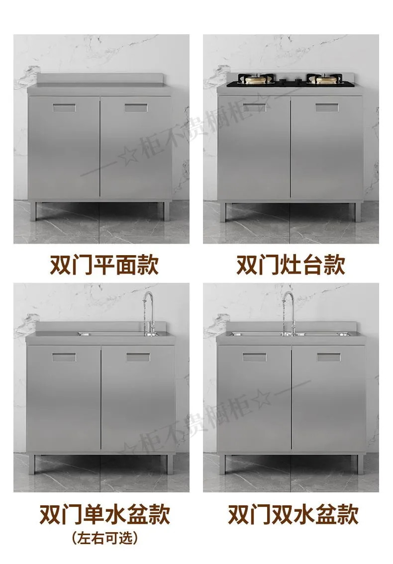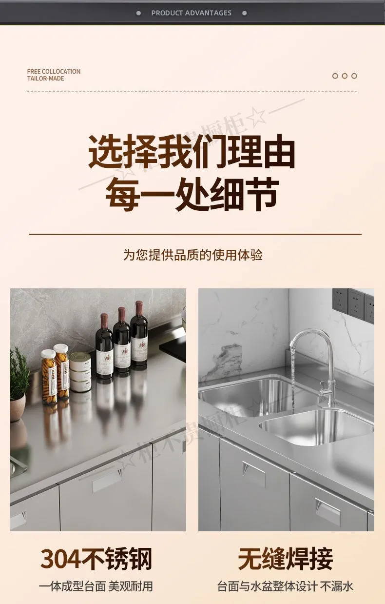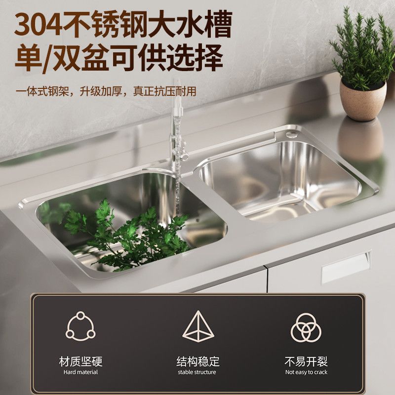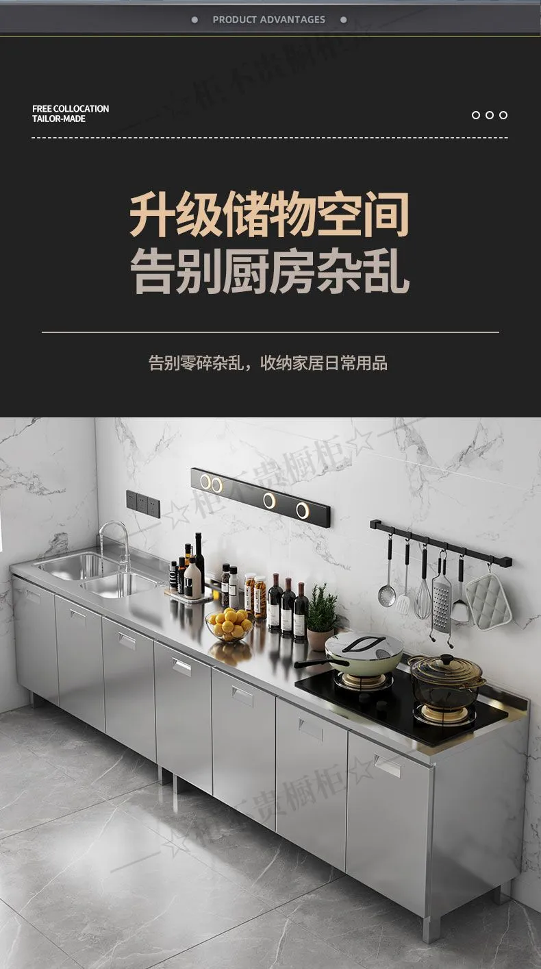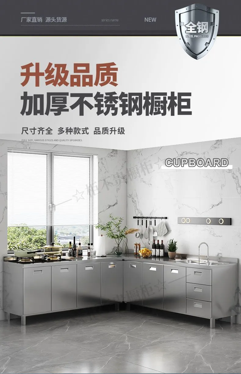 304不锈钢厨房橱柜加厚型橱柜家用厨房碗柜灶台洗菜盆一体组合柜