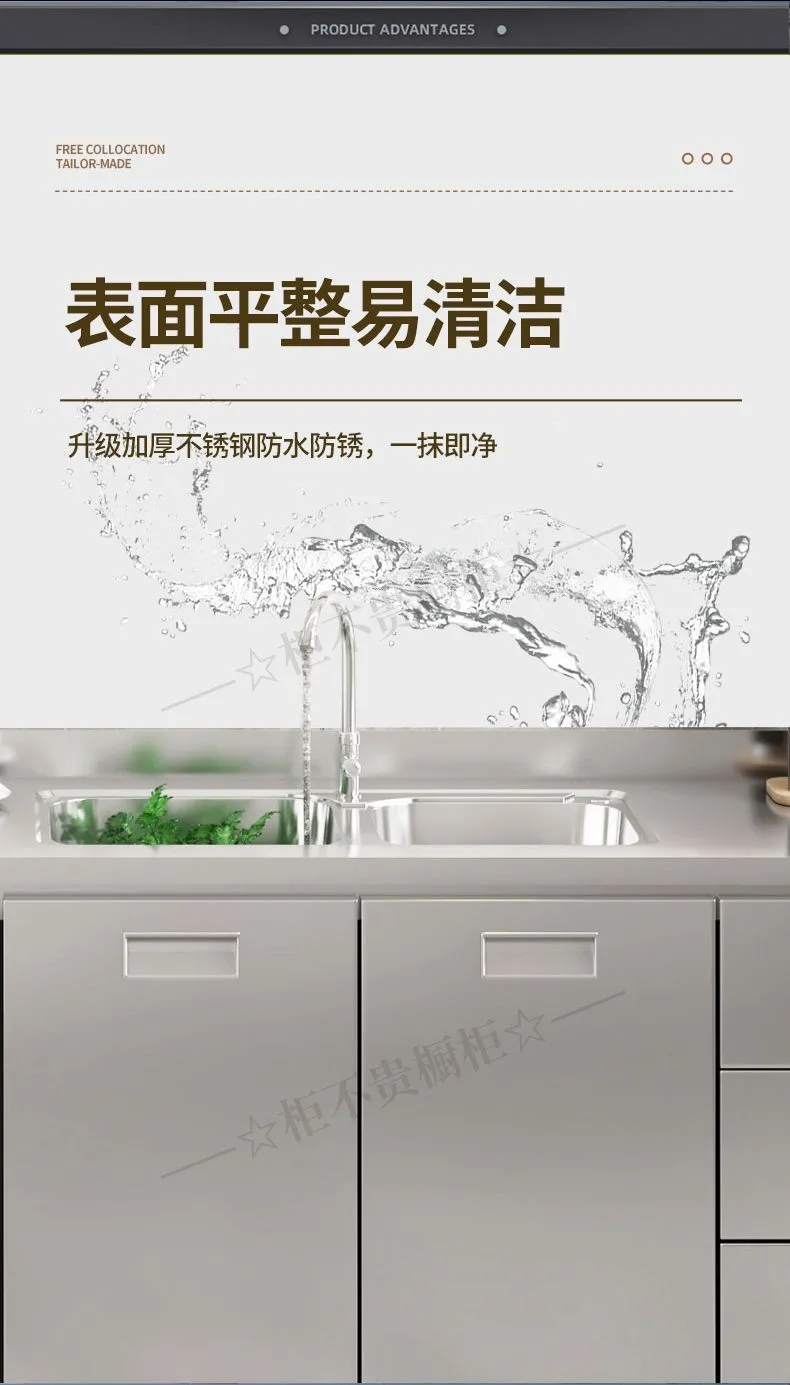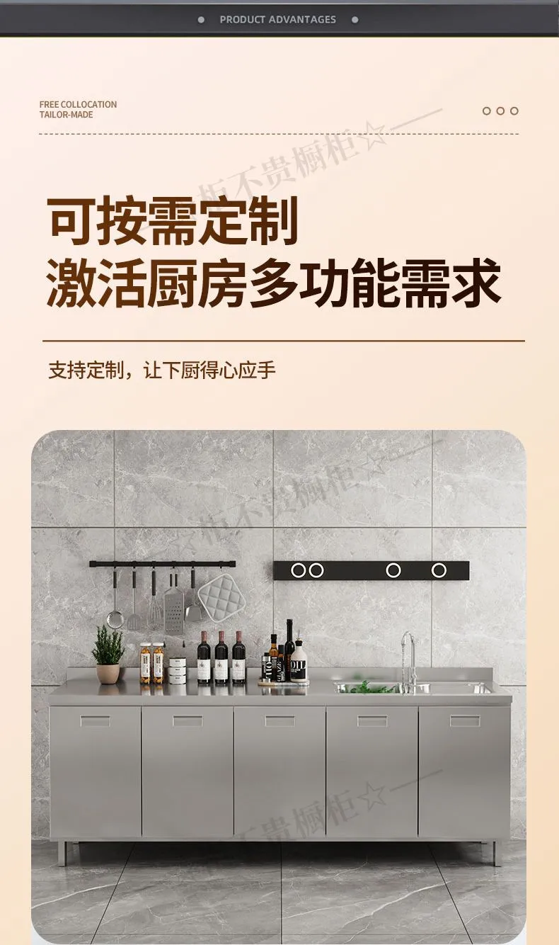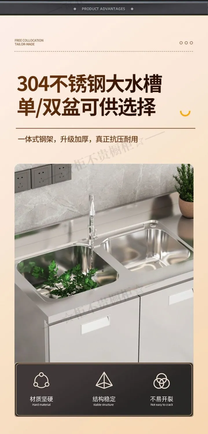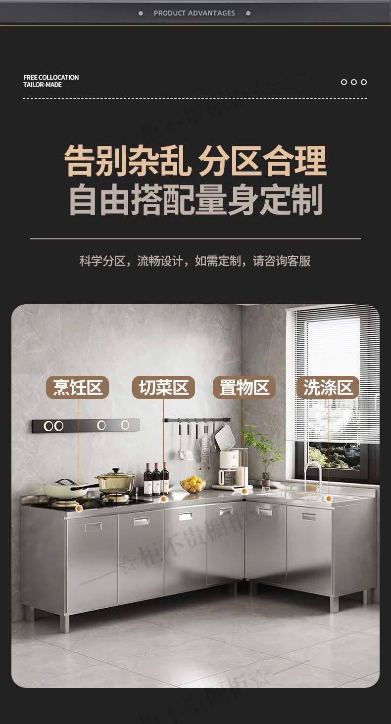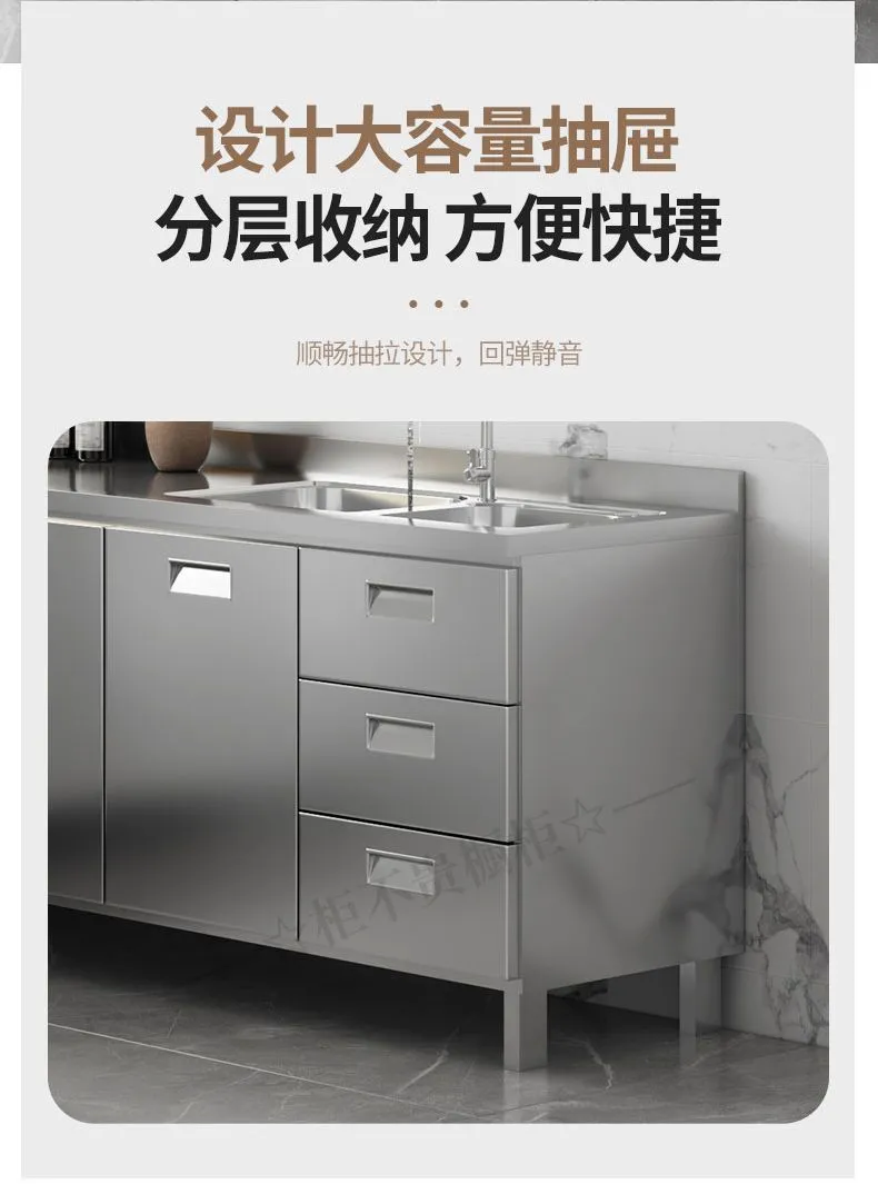 304不锈钢厨房橱柜加厚型橱柜家用厨房碗柜灶台洗菜盆一体组合柜