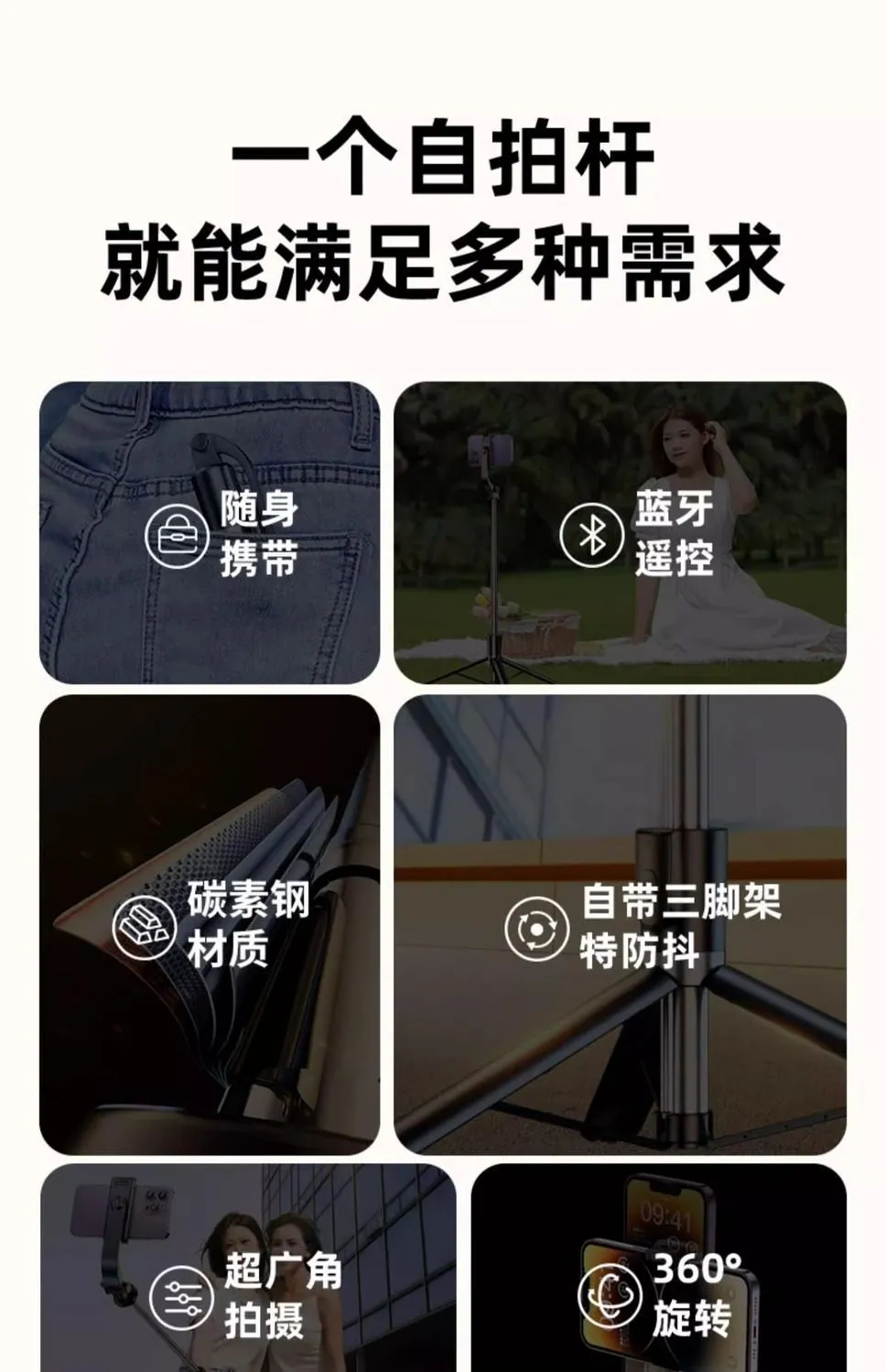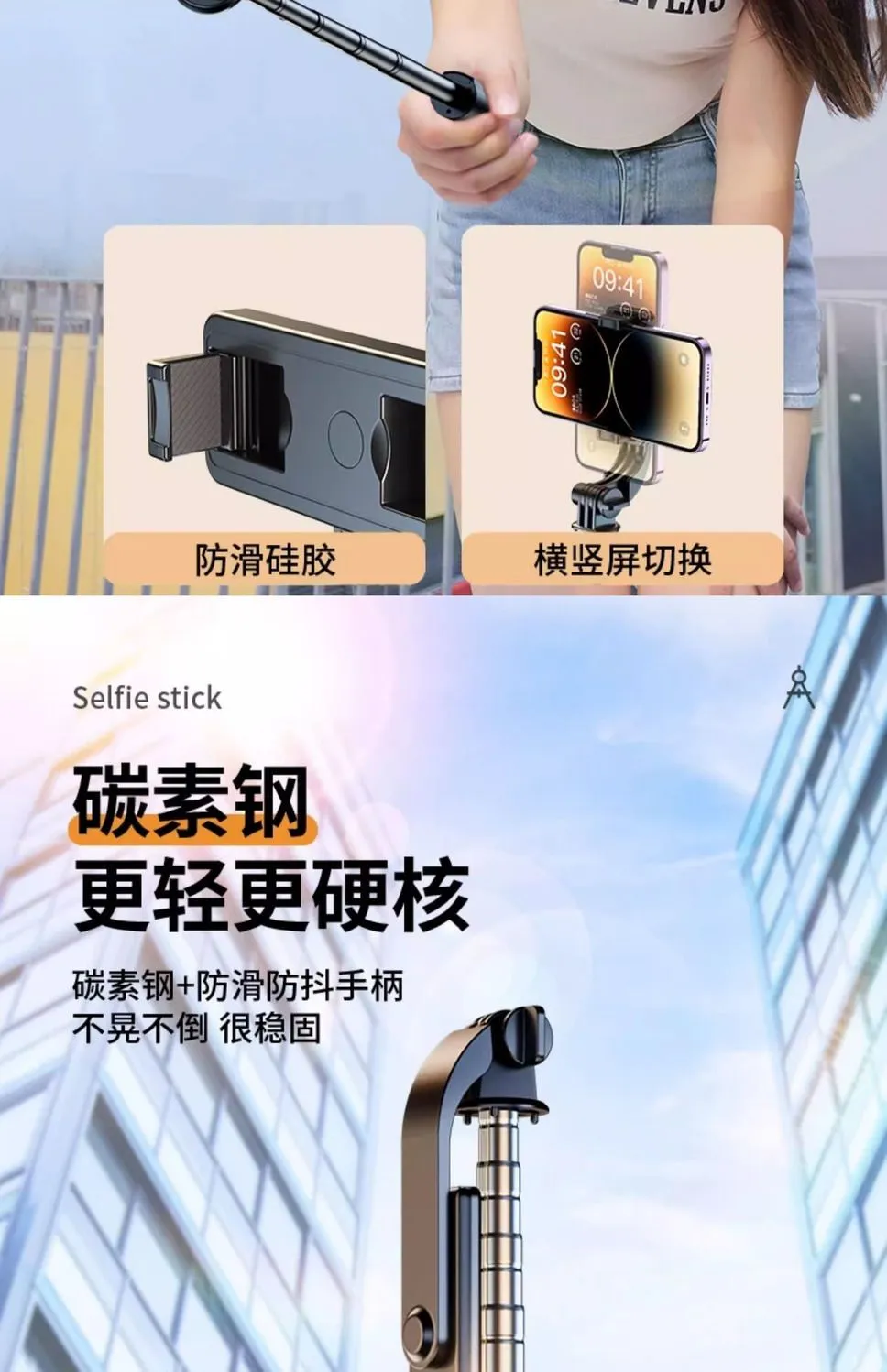 2024新款手机自拍杆三角架手持落地折叠旅行蓝牙遥控自拍神器便携