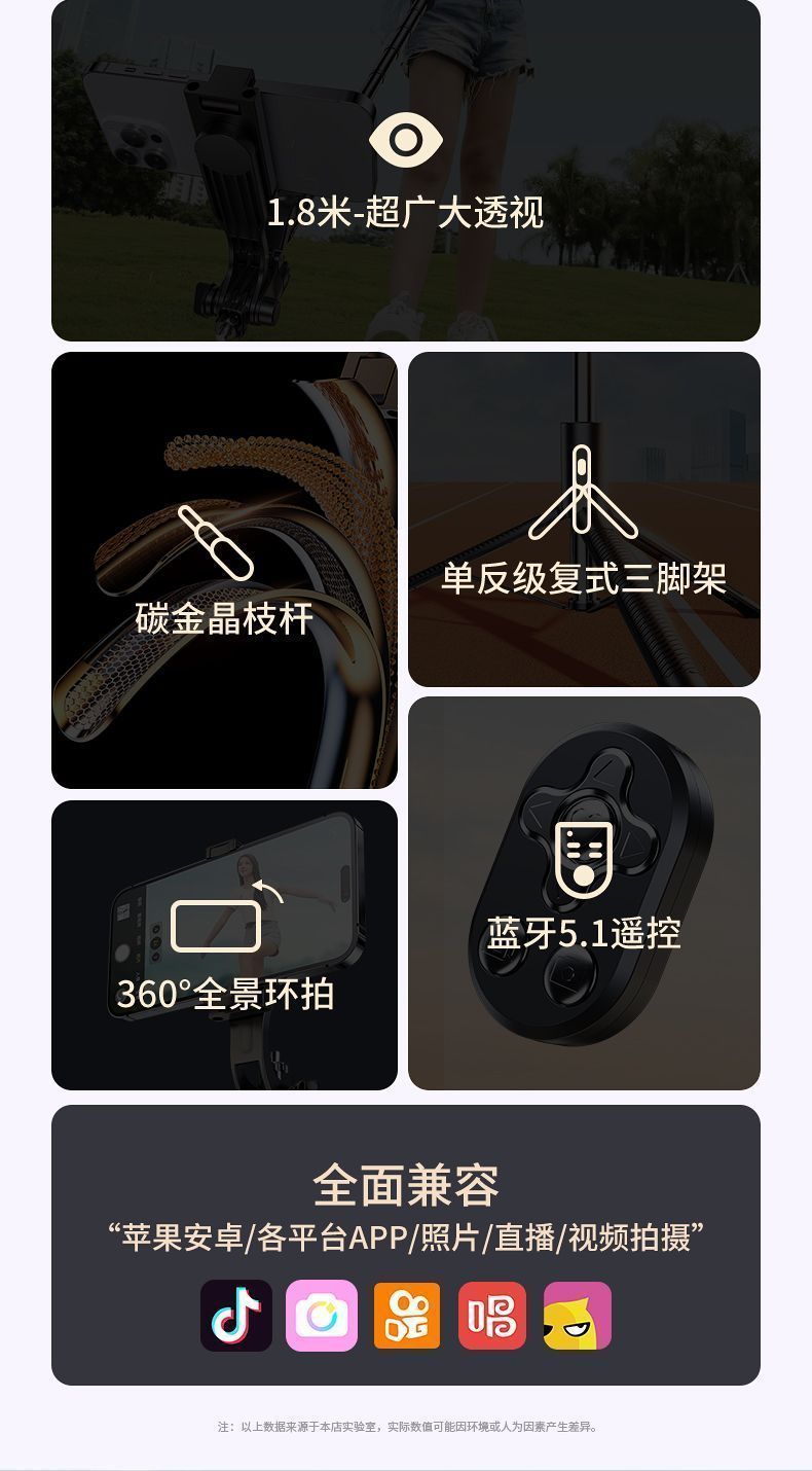 | 【1.8米】双美颜灯+四轴防抖+超广角稳固 | USD $12.45 | 999999 piece available |