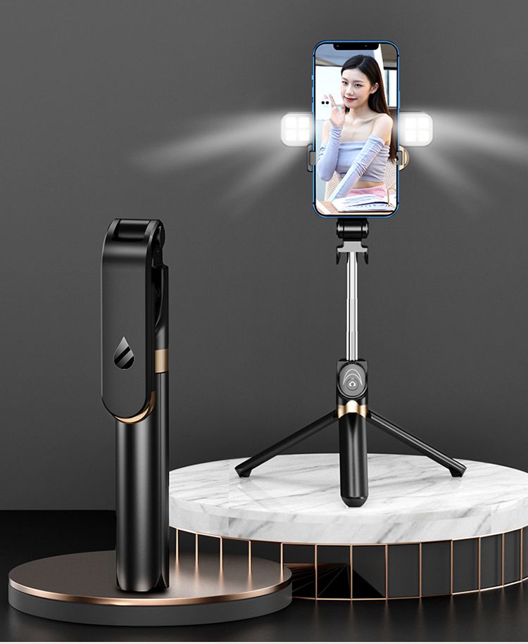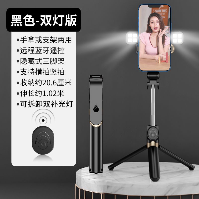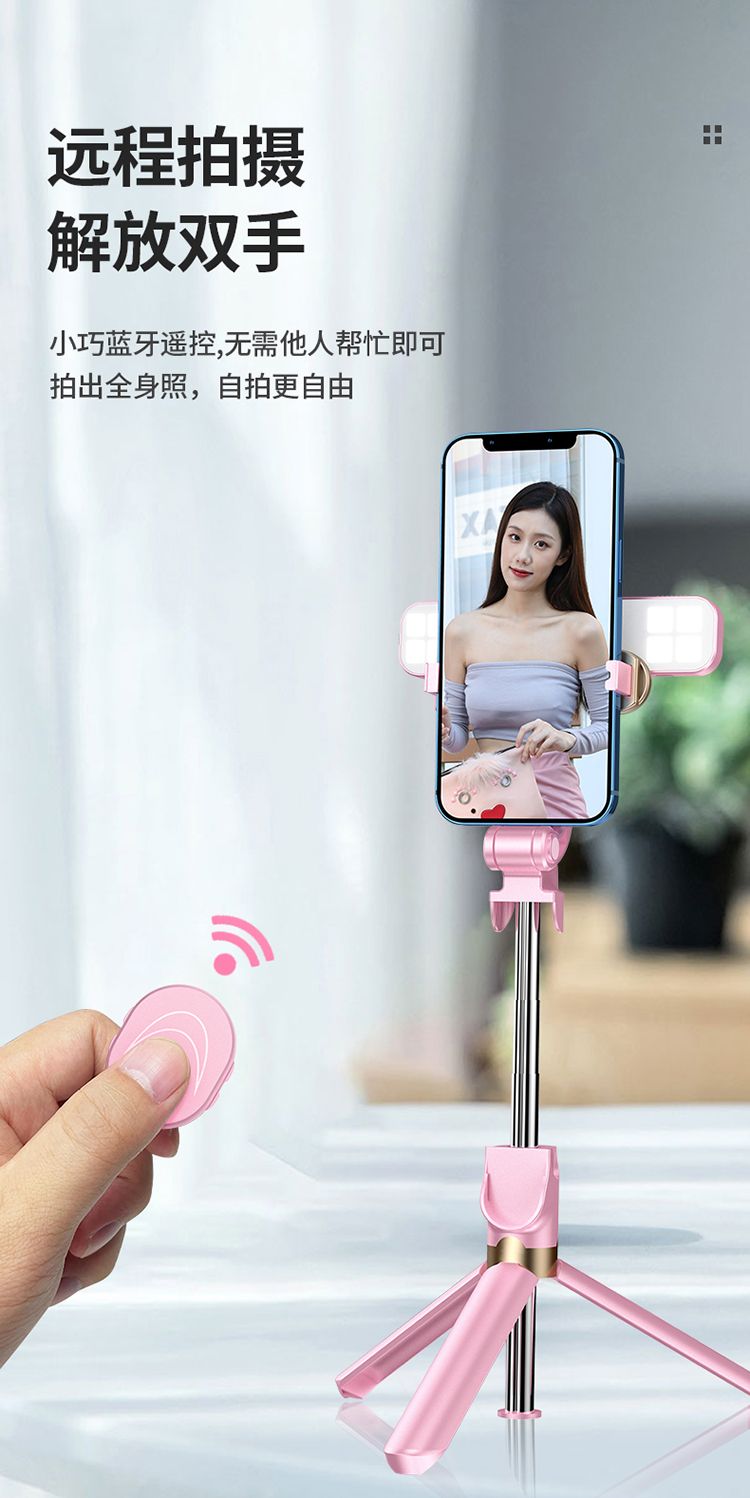 加长手机自拍杆蓝牙遥控补光灯多功能通用三脚架手拿便携旅游支架