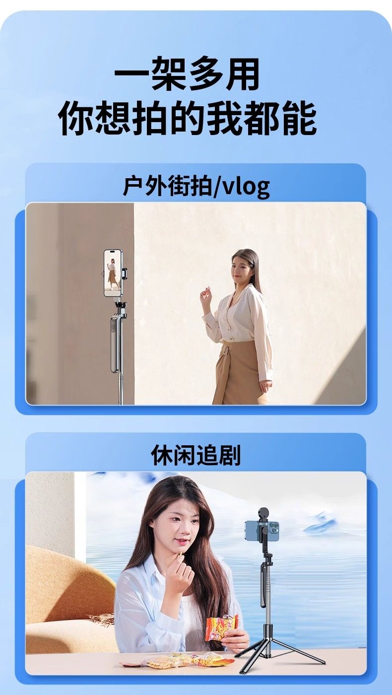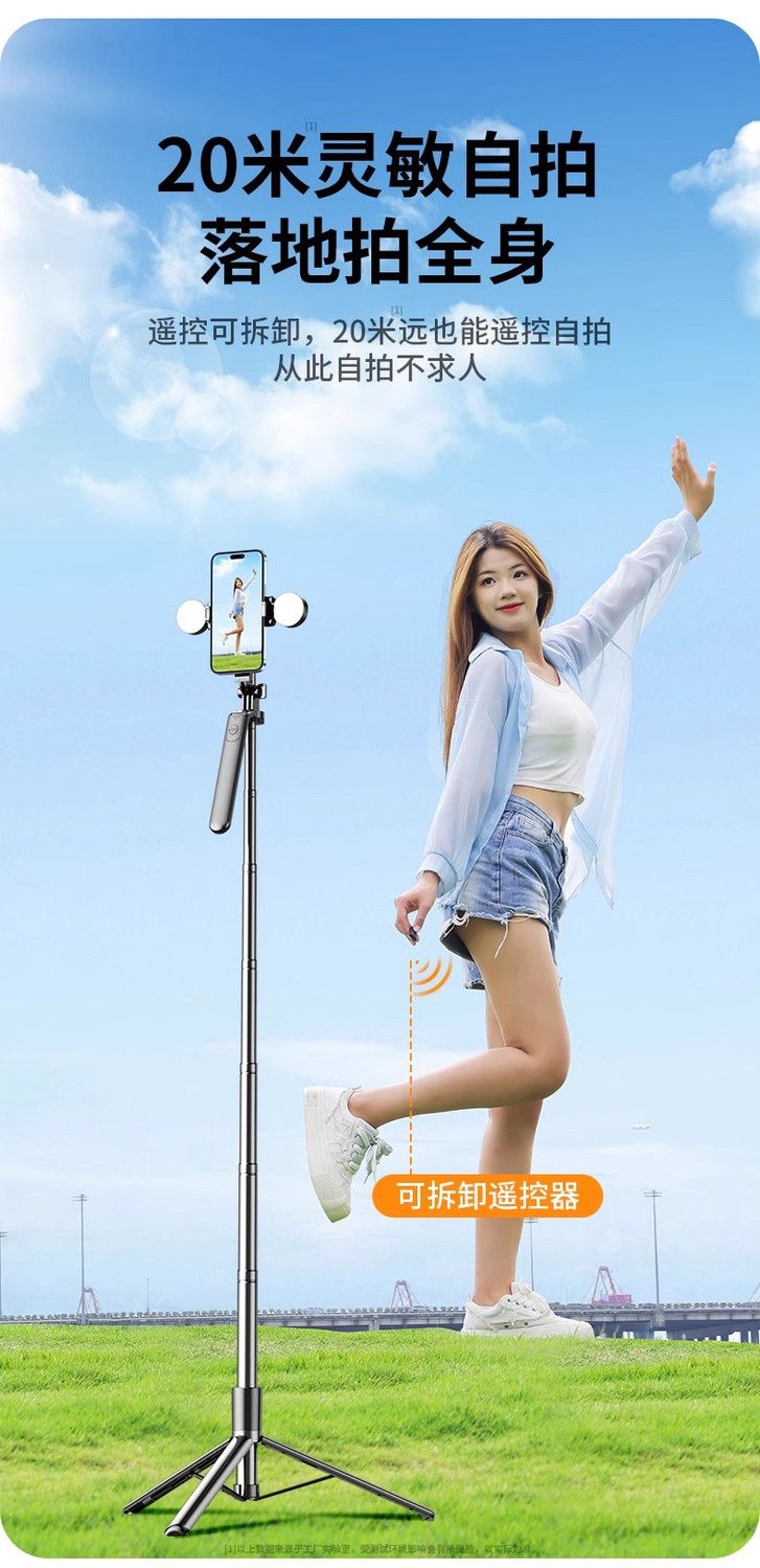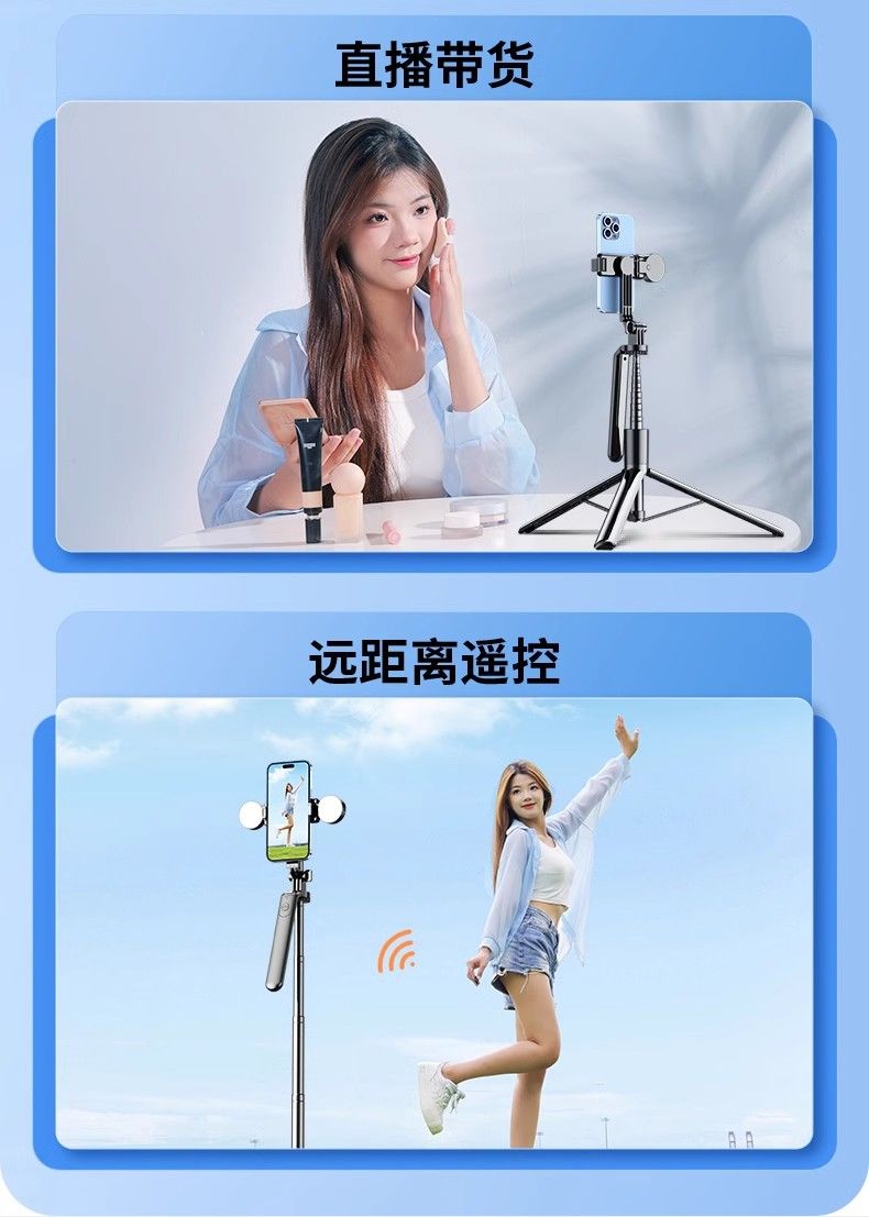 秋叶原1.8米自拍杆三脚架蓝牙直播抖音360度补光手持落地支架通用