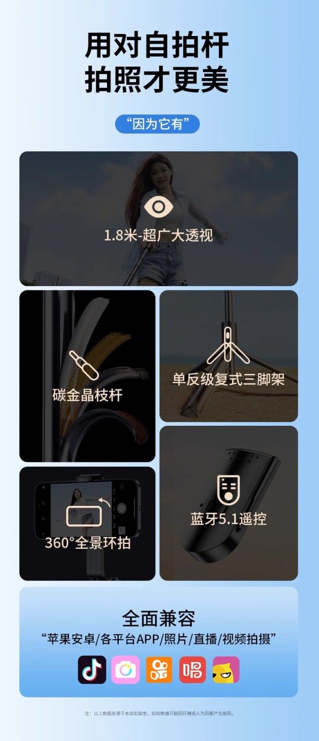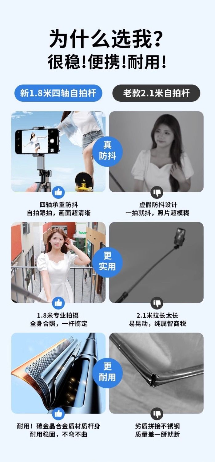 | 1.8米【防抖款+蓝牙拍照】三棱龙骨架 | USD $10.28 | 999998 piece available |