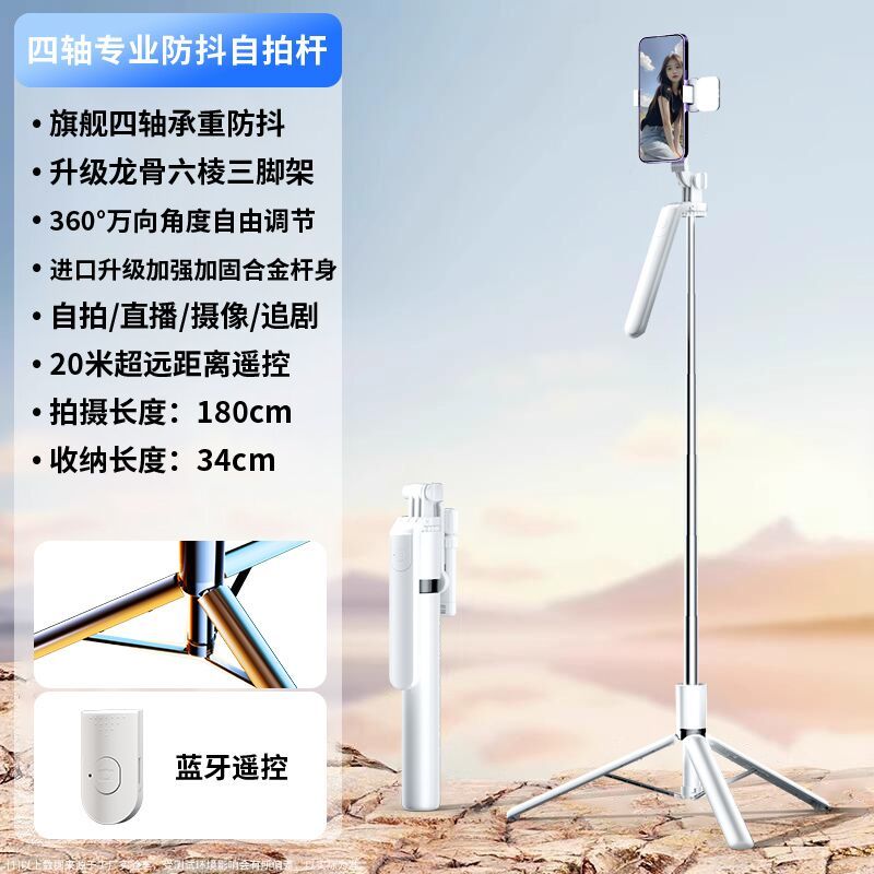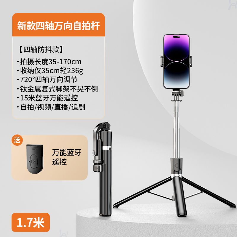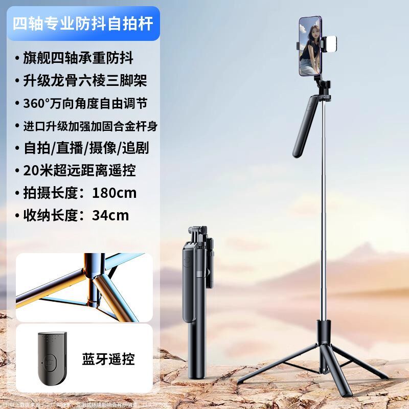 2025防抖自拍杆手机通用拍摄支架360度旋转旅游便携式落地三脚架