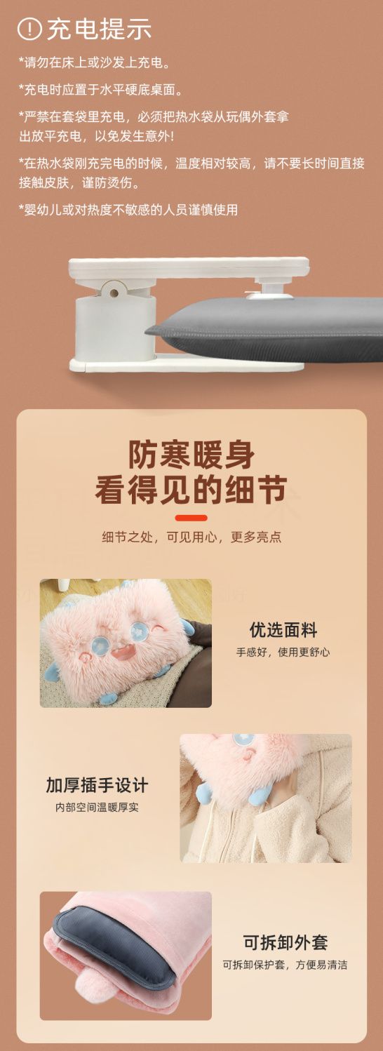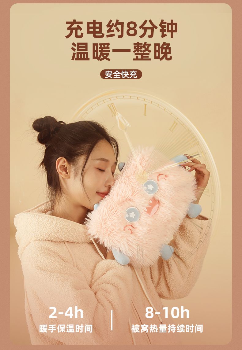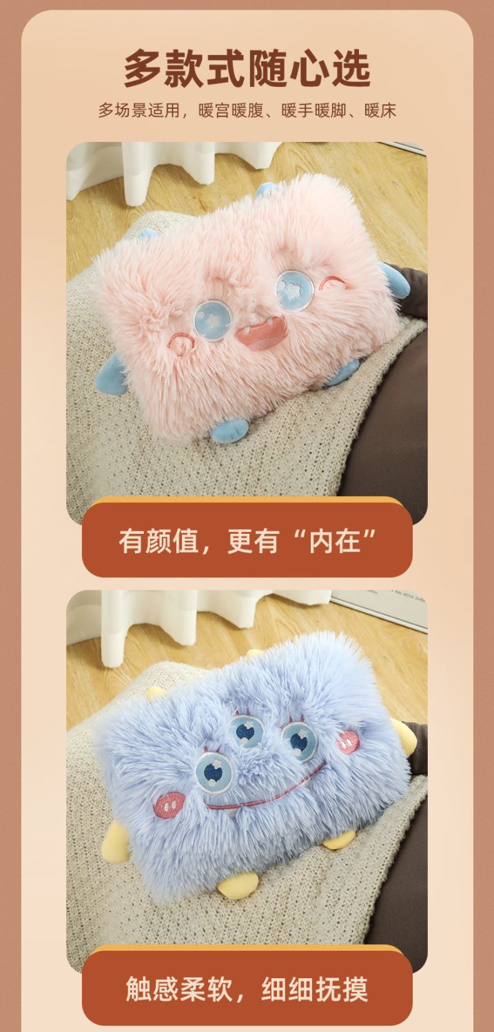 卡通电热水袋充电防爆暖宝宝暖手宝可爱电暖宝暖水袋毛绒绒可拆洗