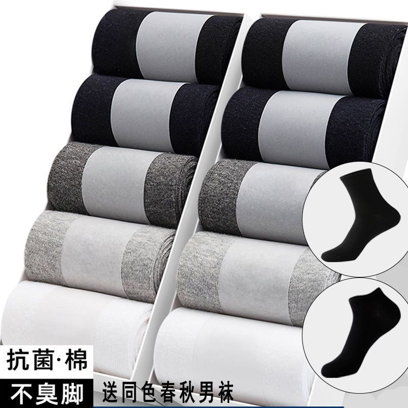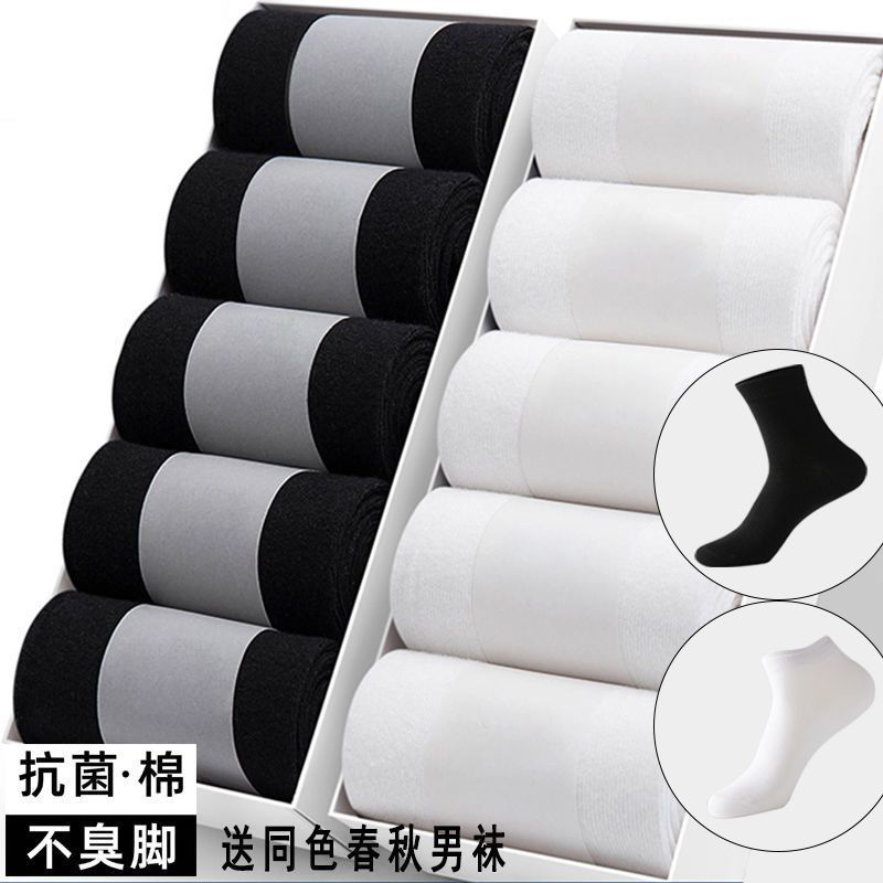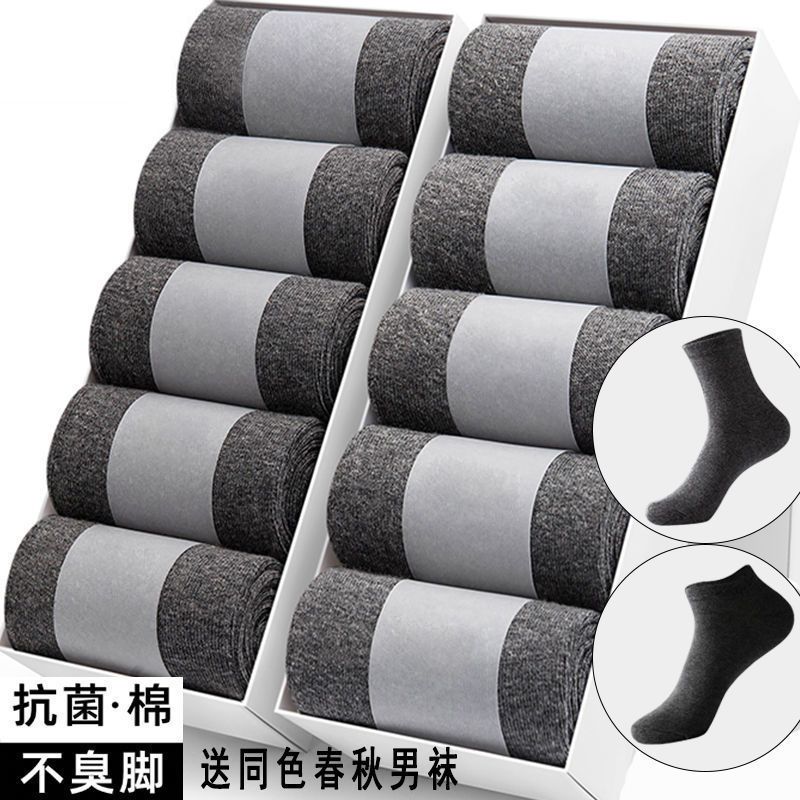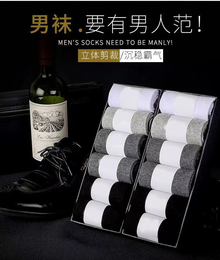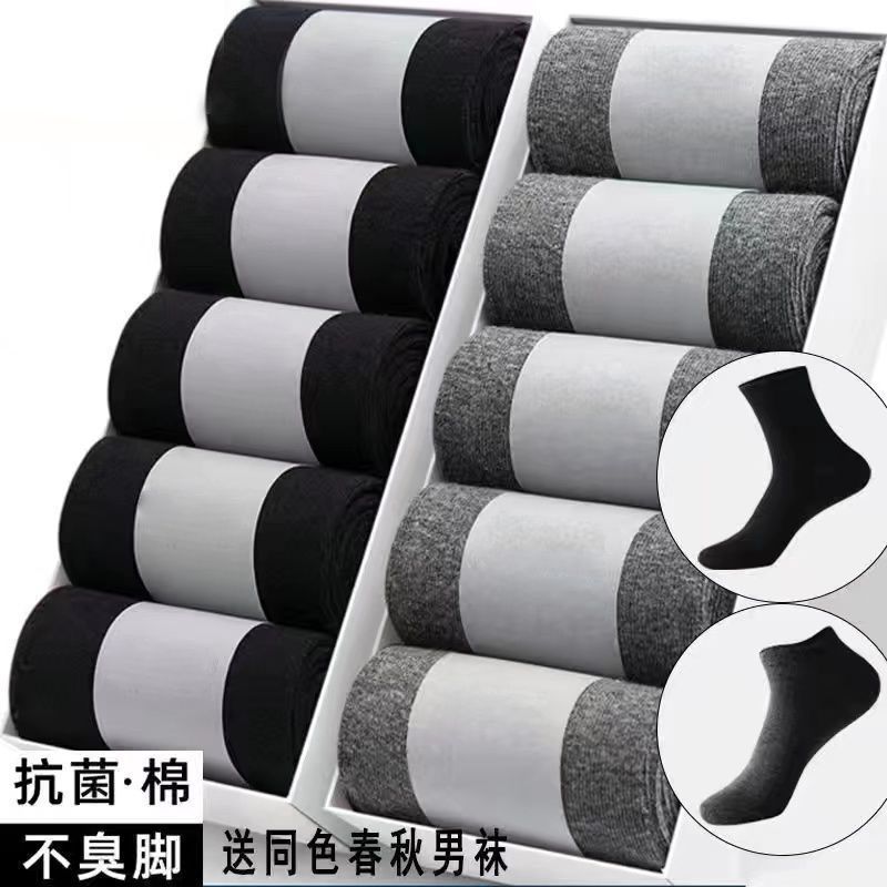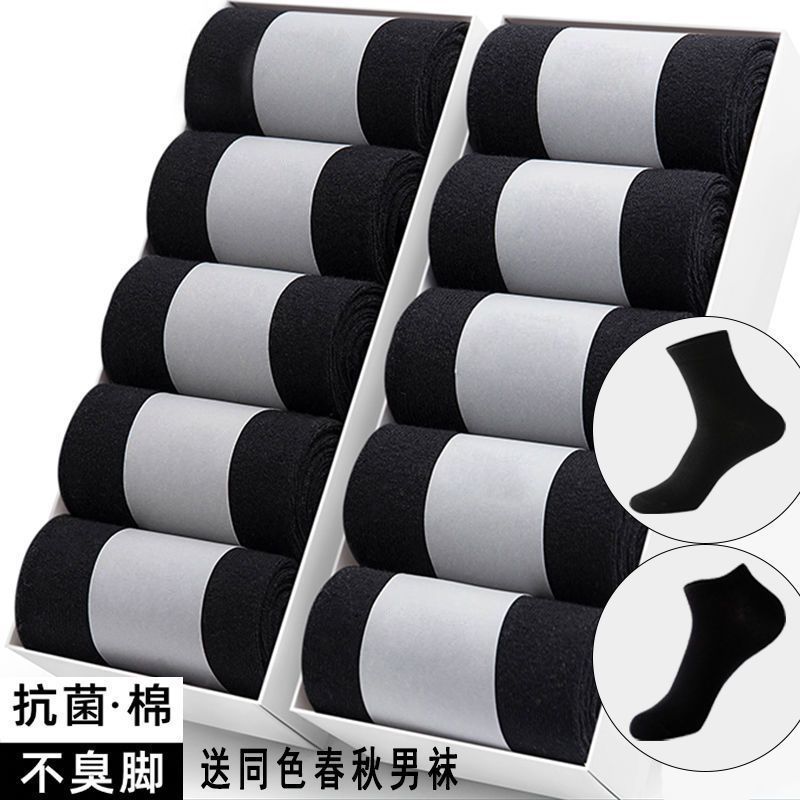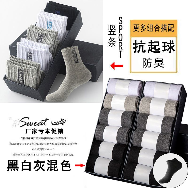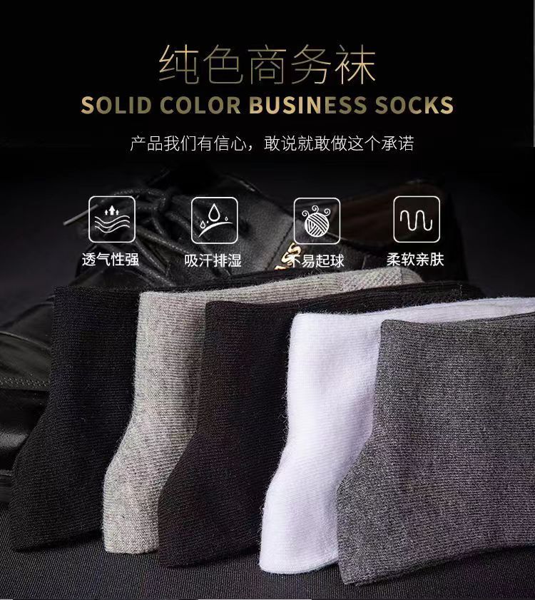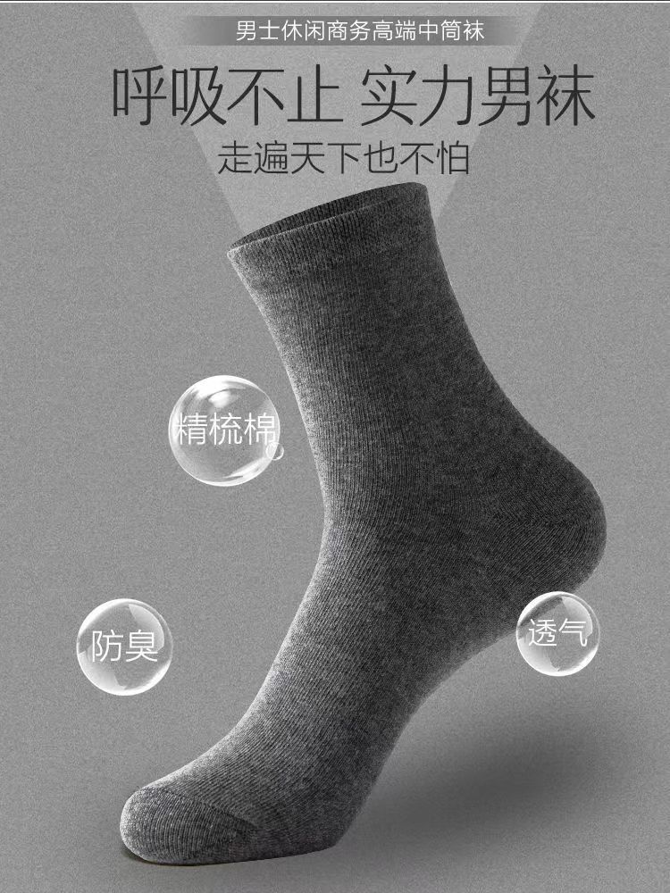 纯色秋冬棉袜子男款中筒黑色男士防臭透气长批发潮流短篮球运动袜