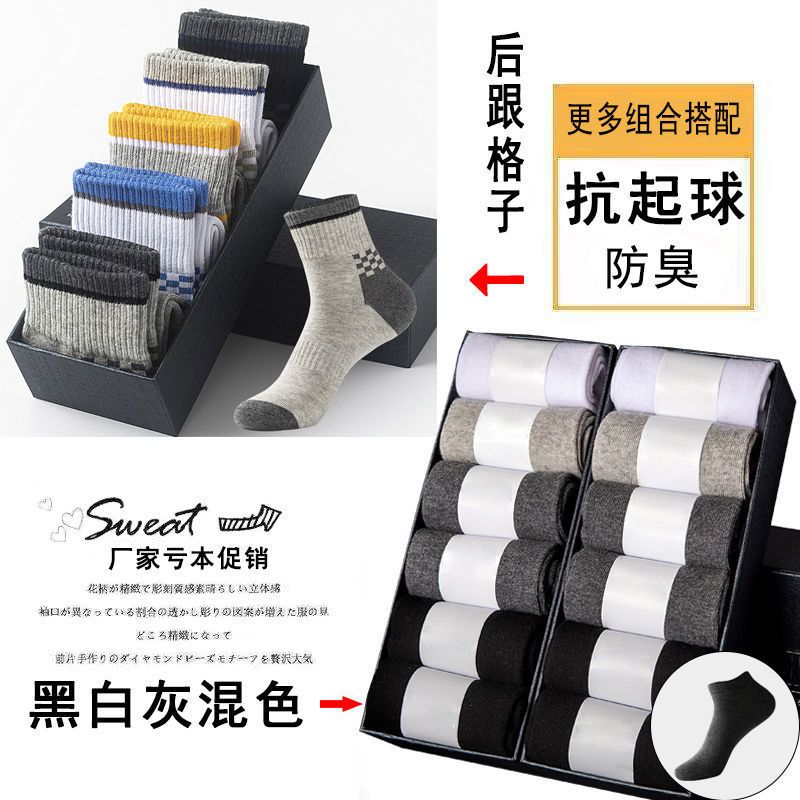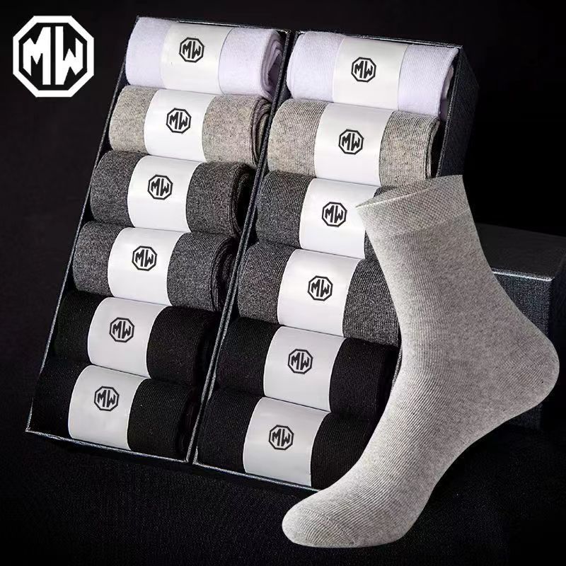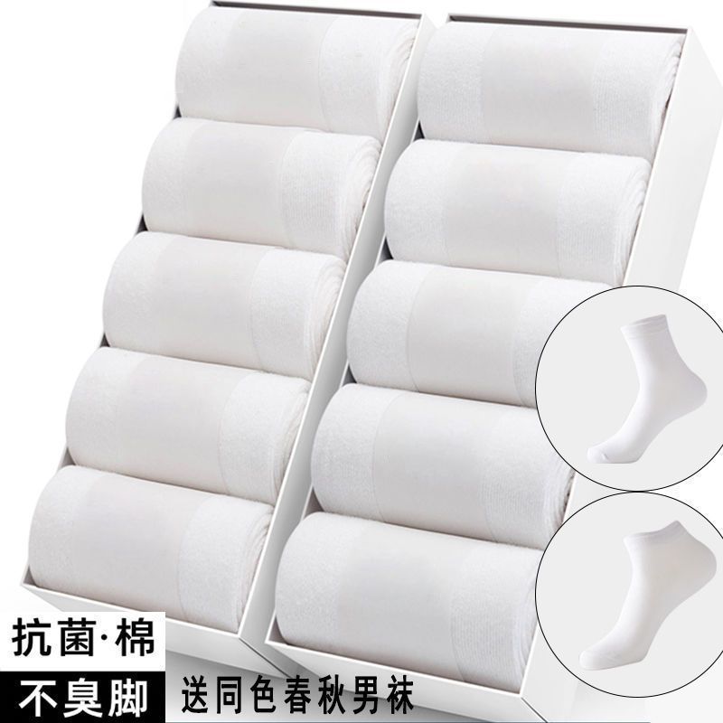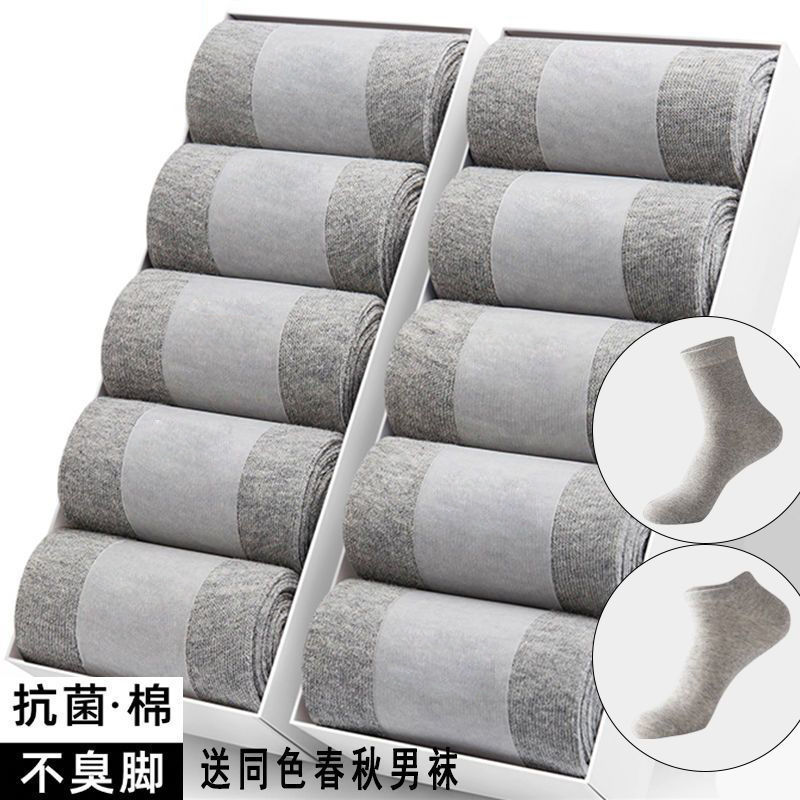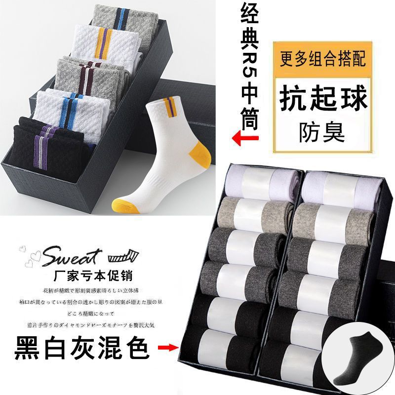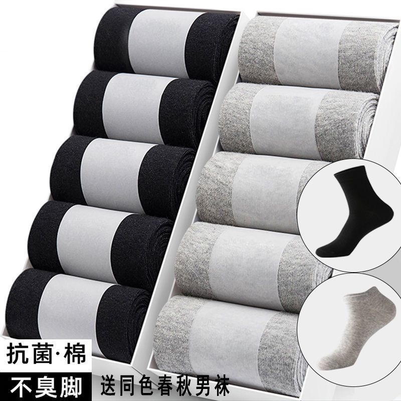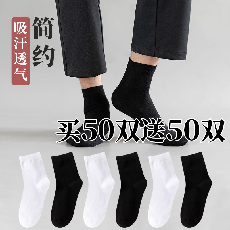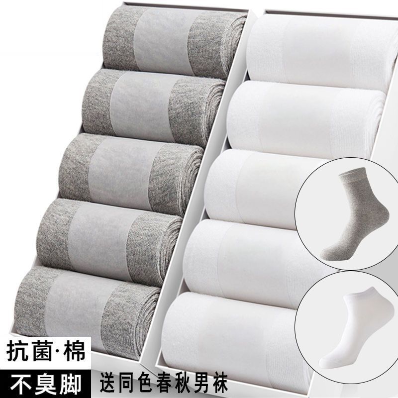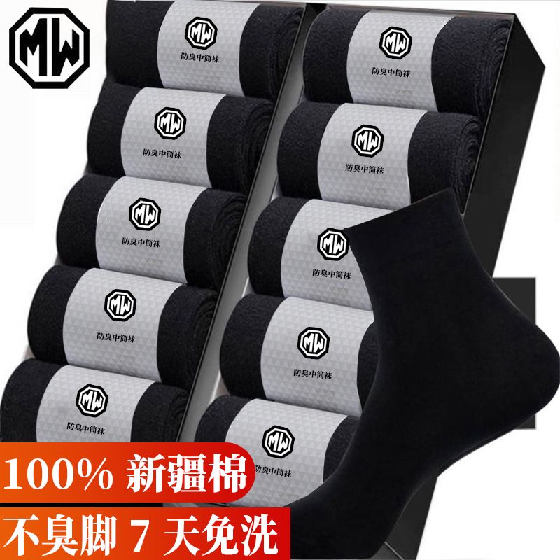 纯色秋冬棉袜子男款中筒黑色男士防臭透气长批发潮流短篮球运动袜