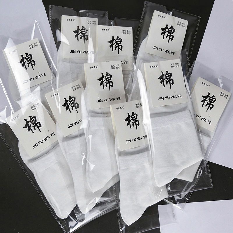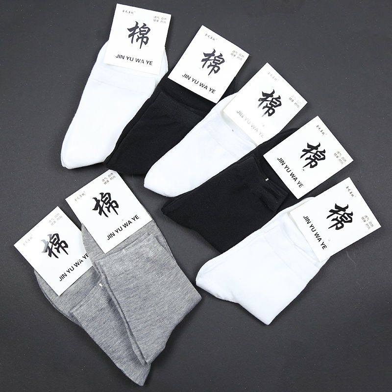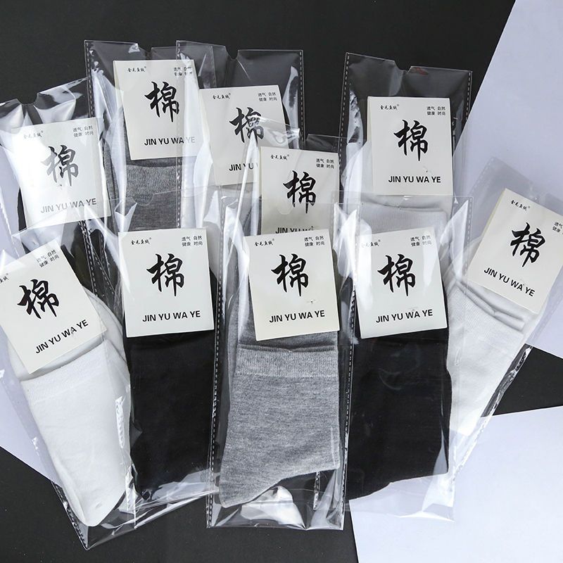 50双-100双男士中筒纯色棉袜黑白灰独立包装赠品袜子地摊货源批发