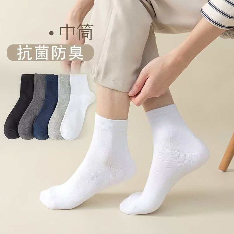 袜子一次性100双批发男款中筒四季男士日抛四季透气吸汗运动长袜