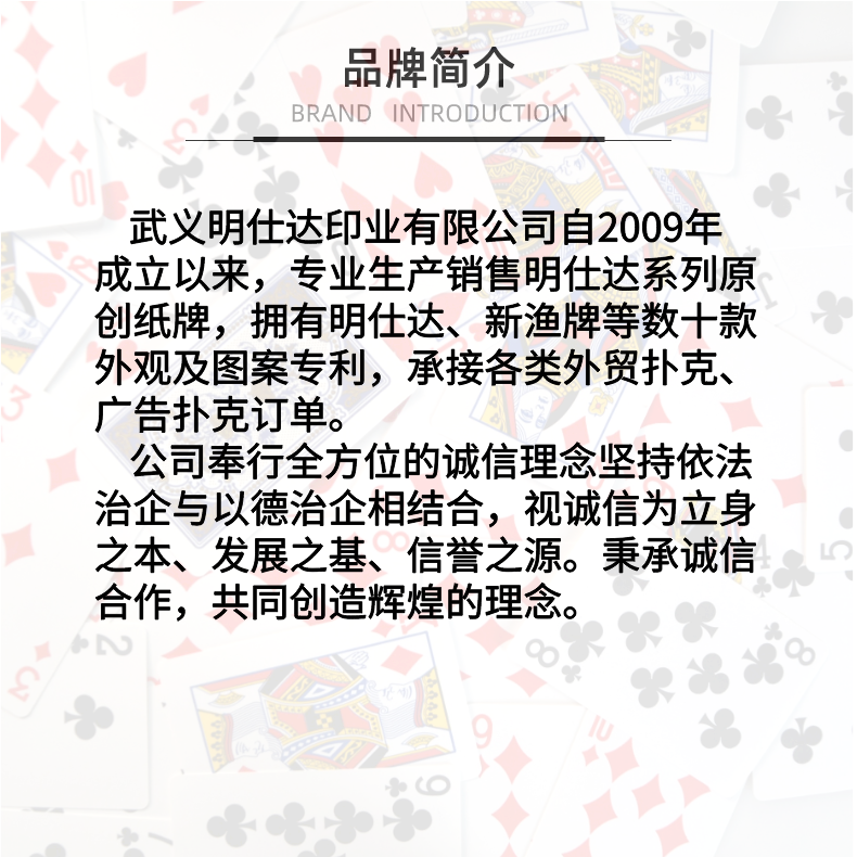 厂家直销明仕达扑克纸牌便宜批发50副100副耐用正品新款棋牌室