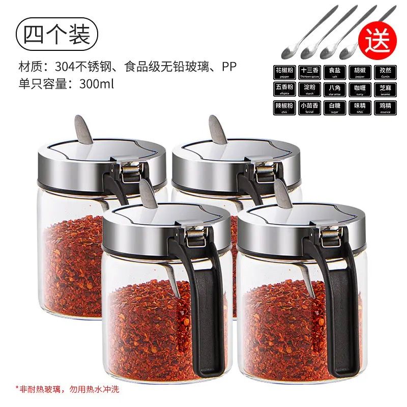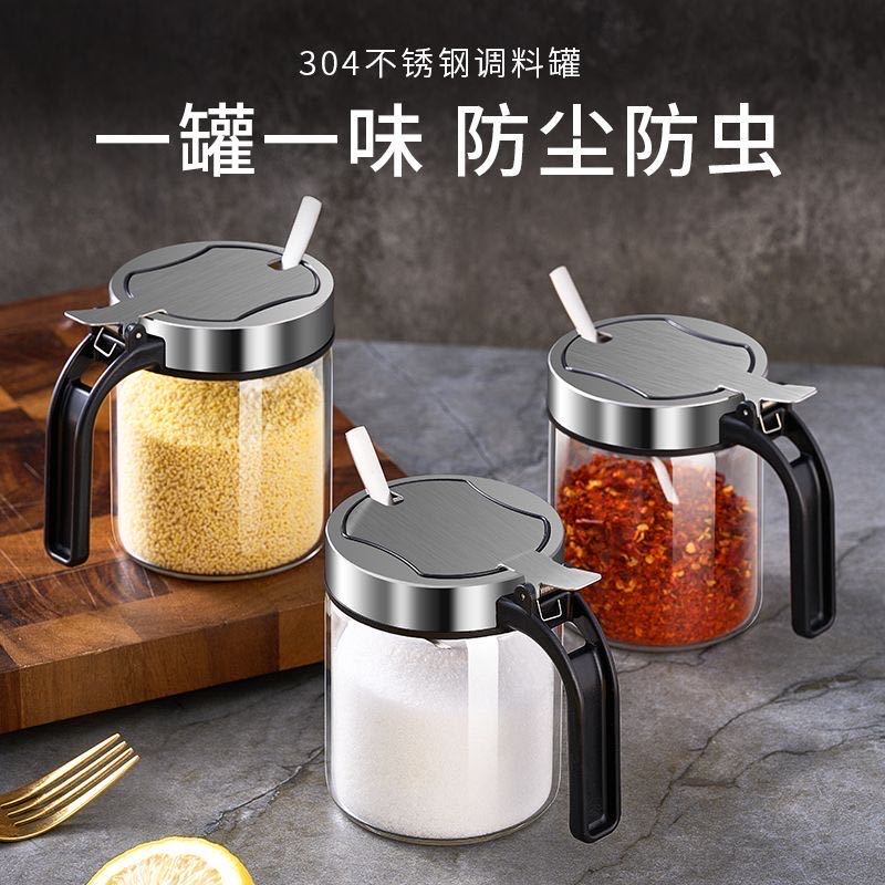 调料家用套装厨房调味大容量罐子304不锈钢调料瓶盐罐玻璃组合