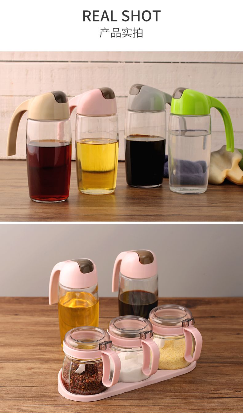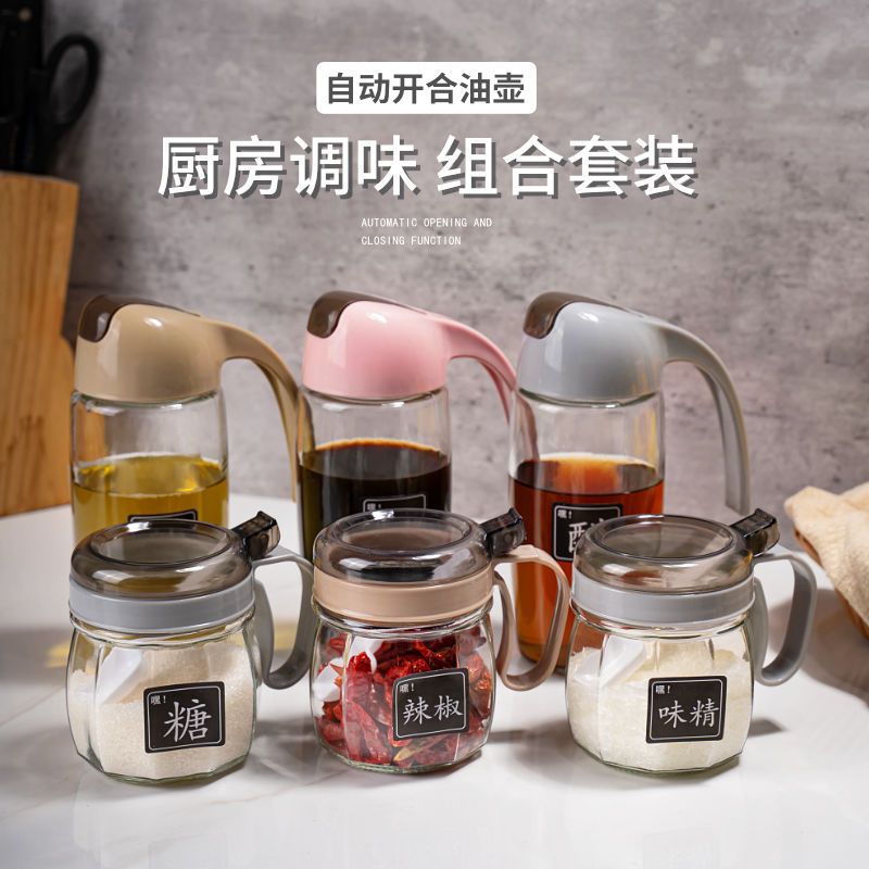 厨房玻璃调味罐家用调料盒盐罐子调味瓶自动开合油壶防漏油壶套装