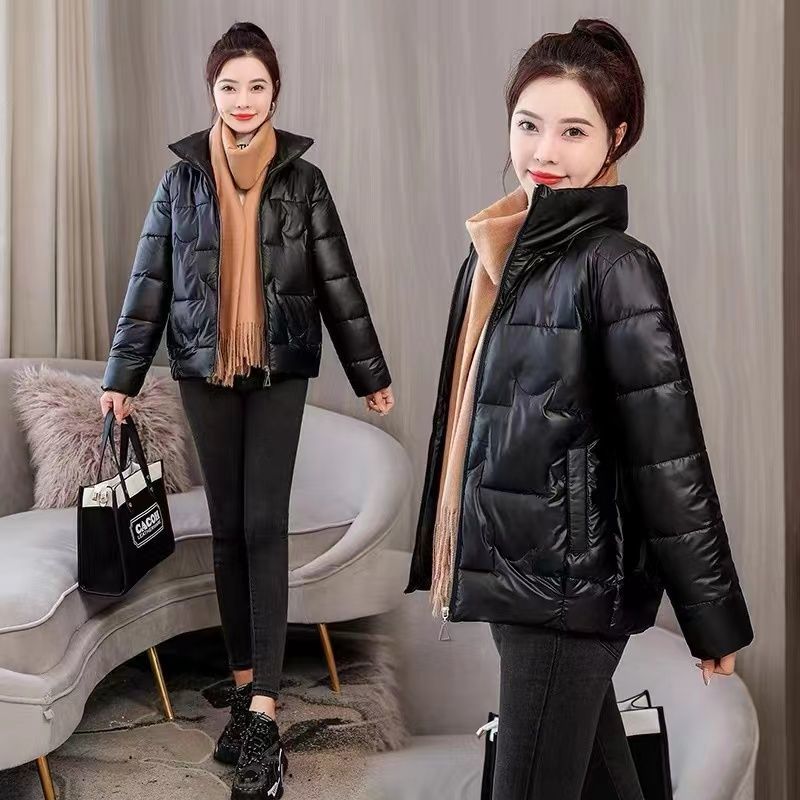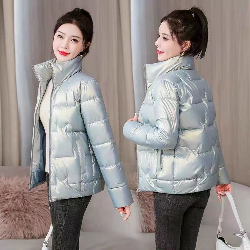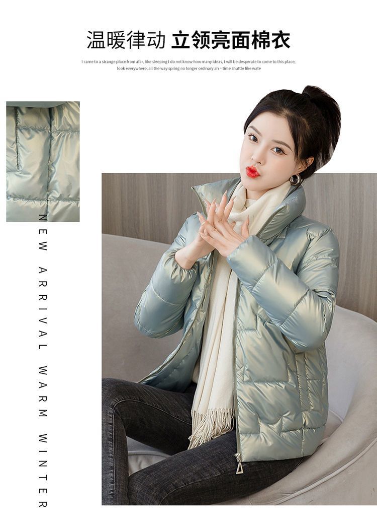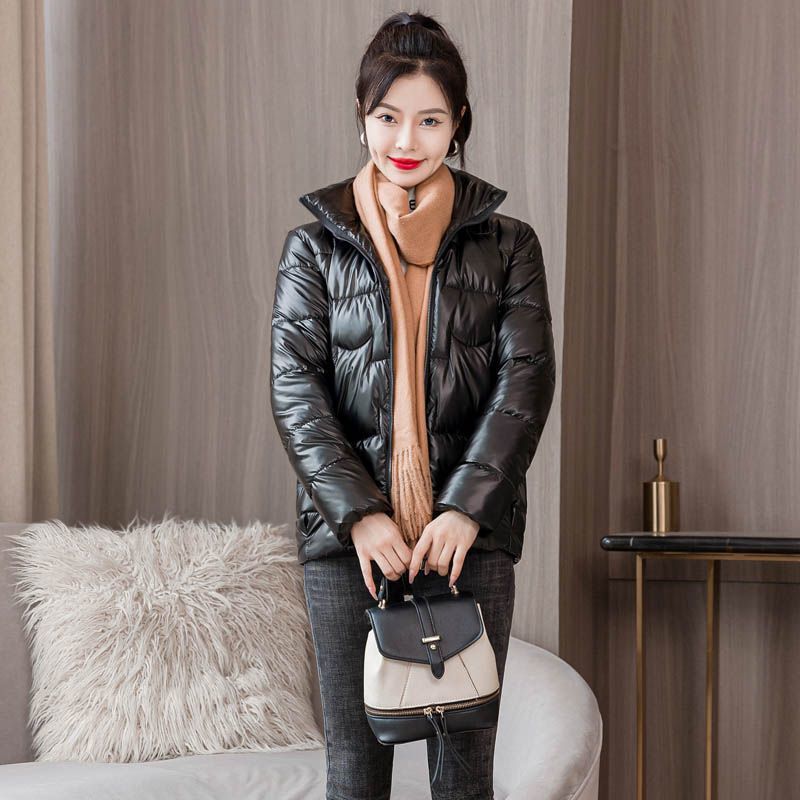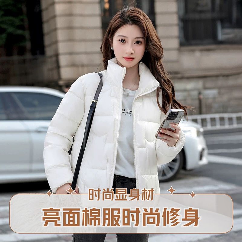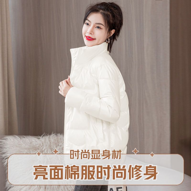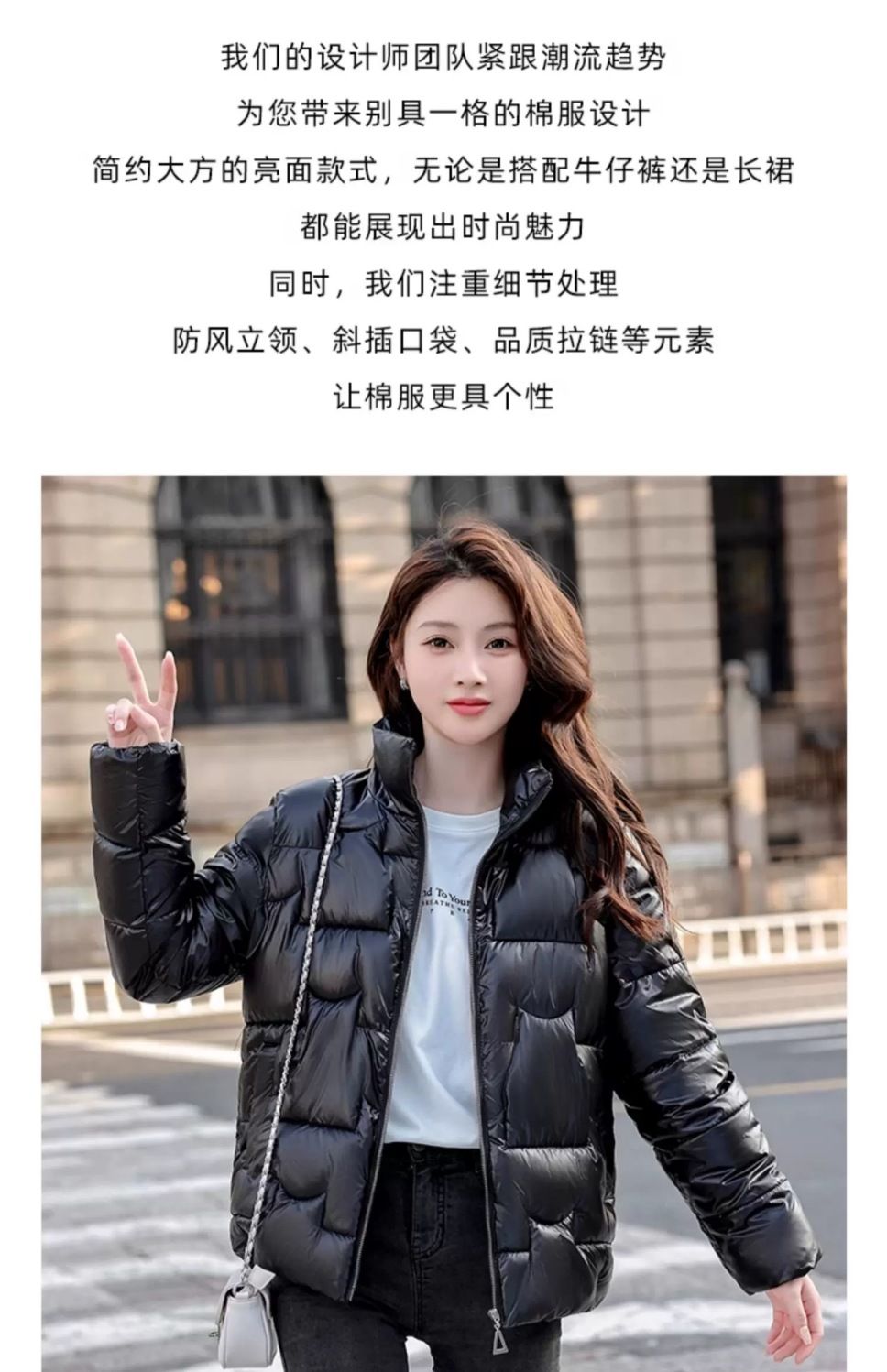 冬季亮面免洗女棉袄可擦新款短款立领外套女韩版加厚款修身棉服女