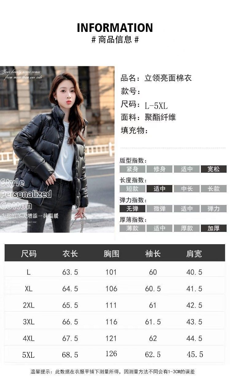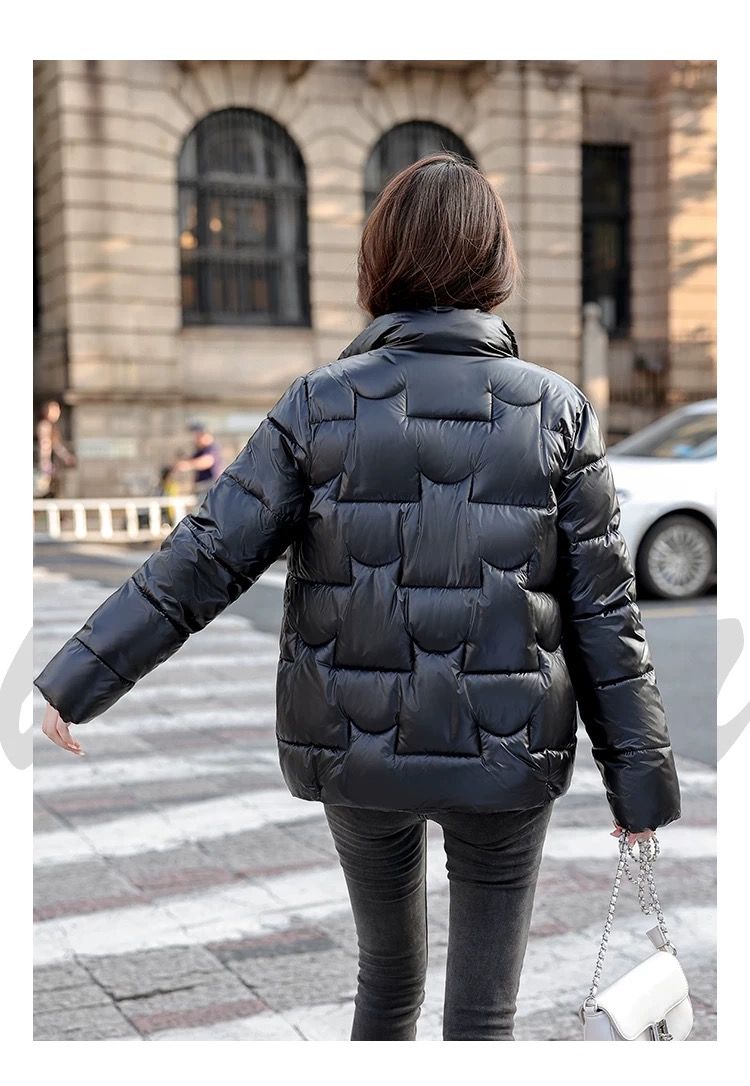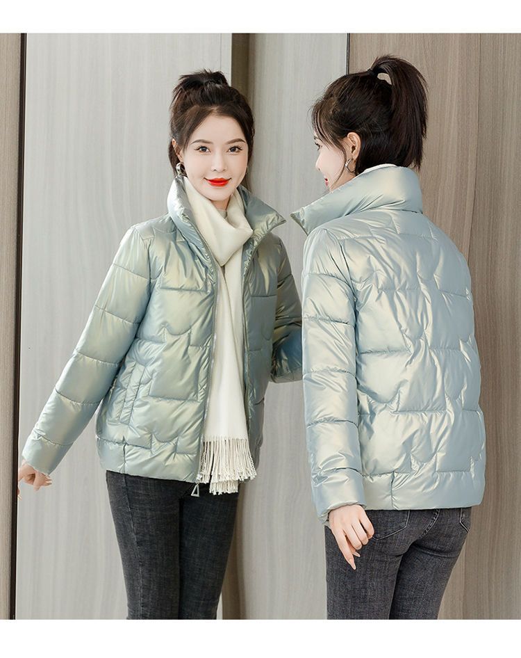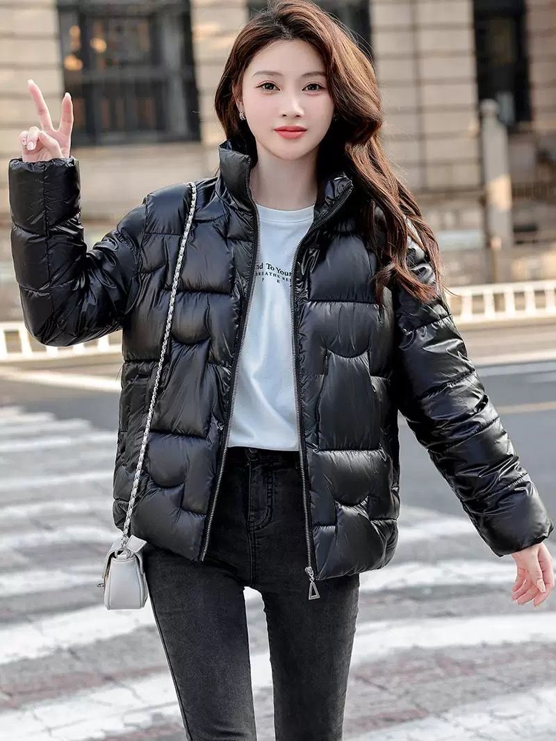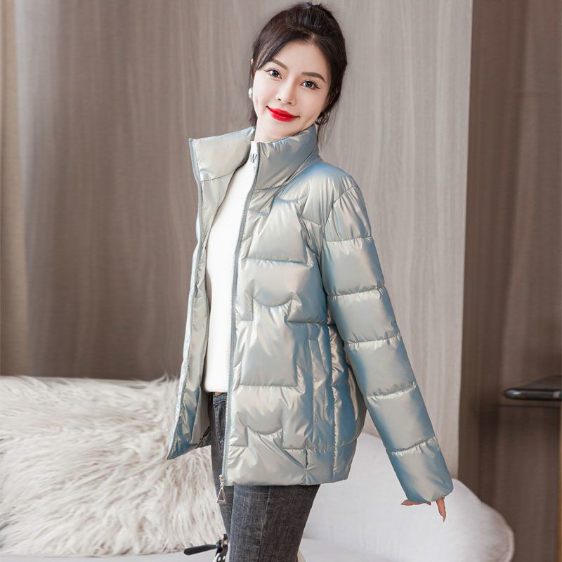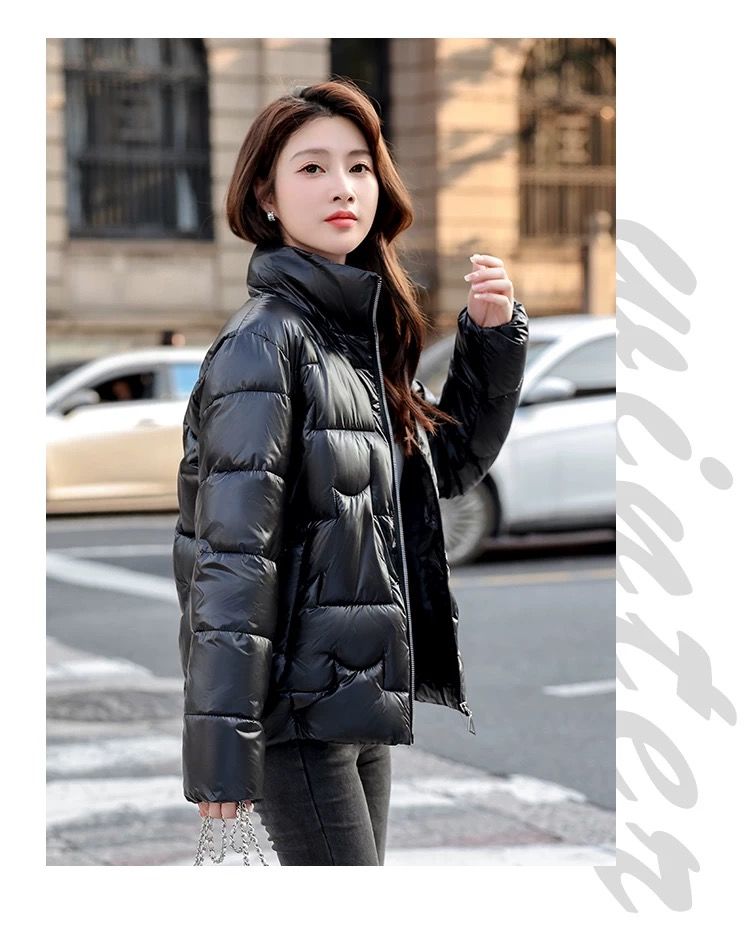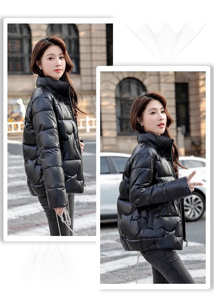 冬季亮面免洗女棉袄可擦新款短款立领外套女韩版加厚款修身棉服女