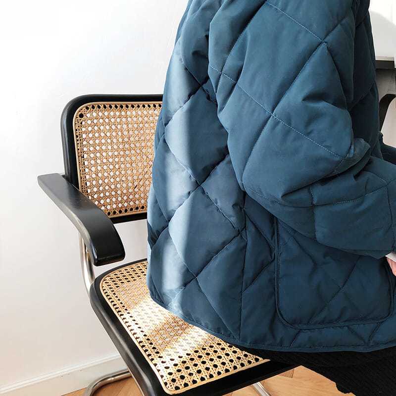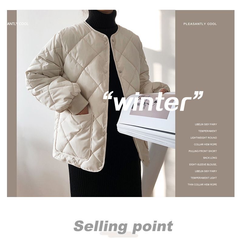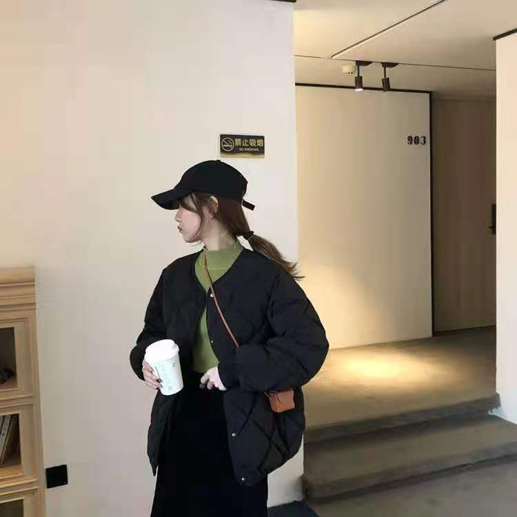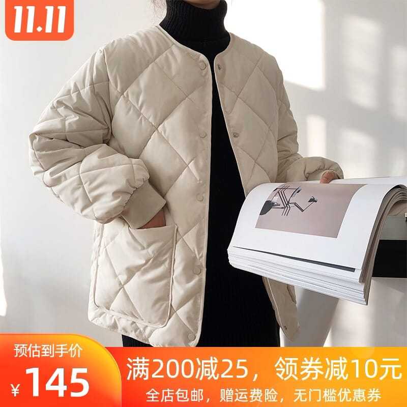 棉袄女冬装韩版加厚面包服外套女短款ins港风宽松纯色菱格棉衣潮