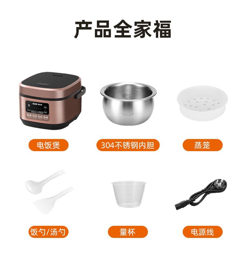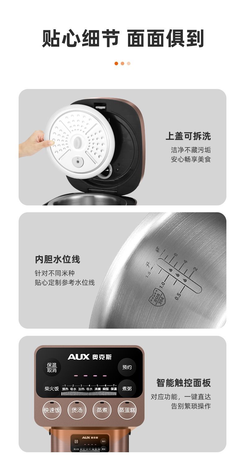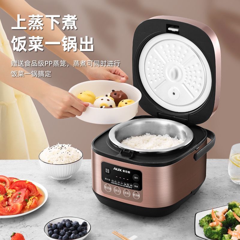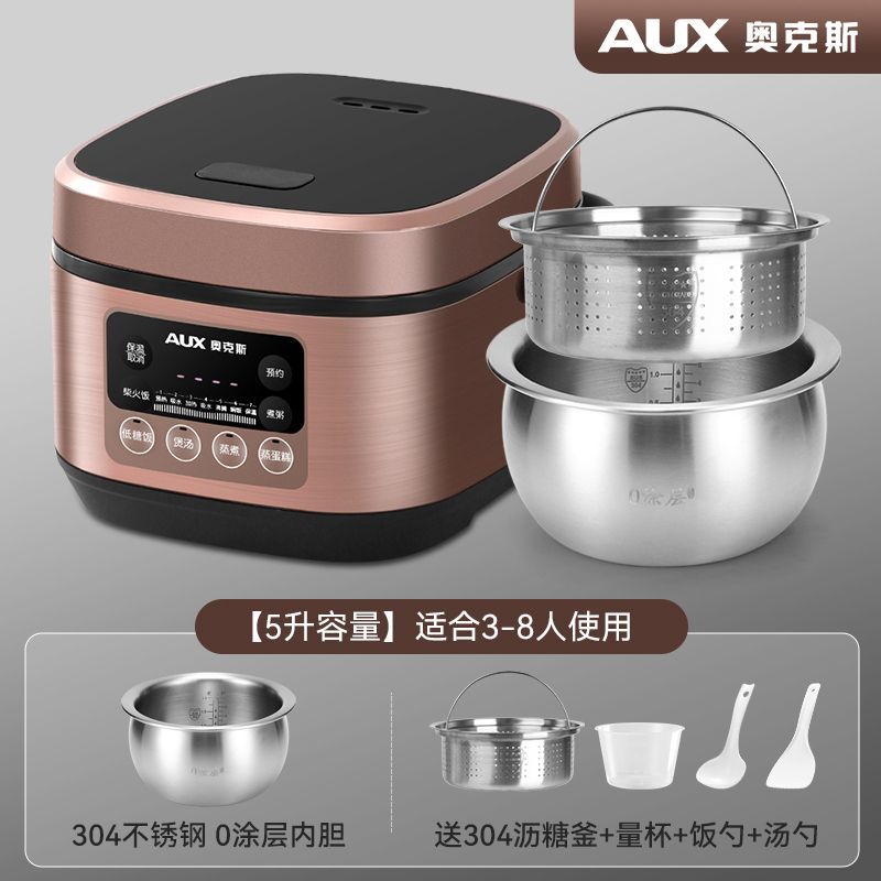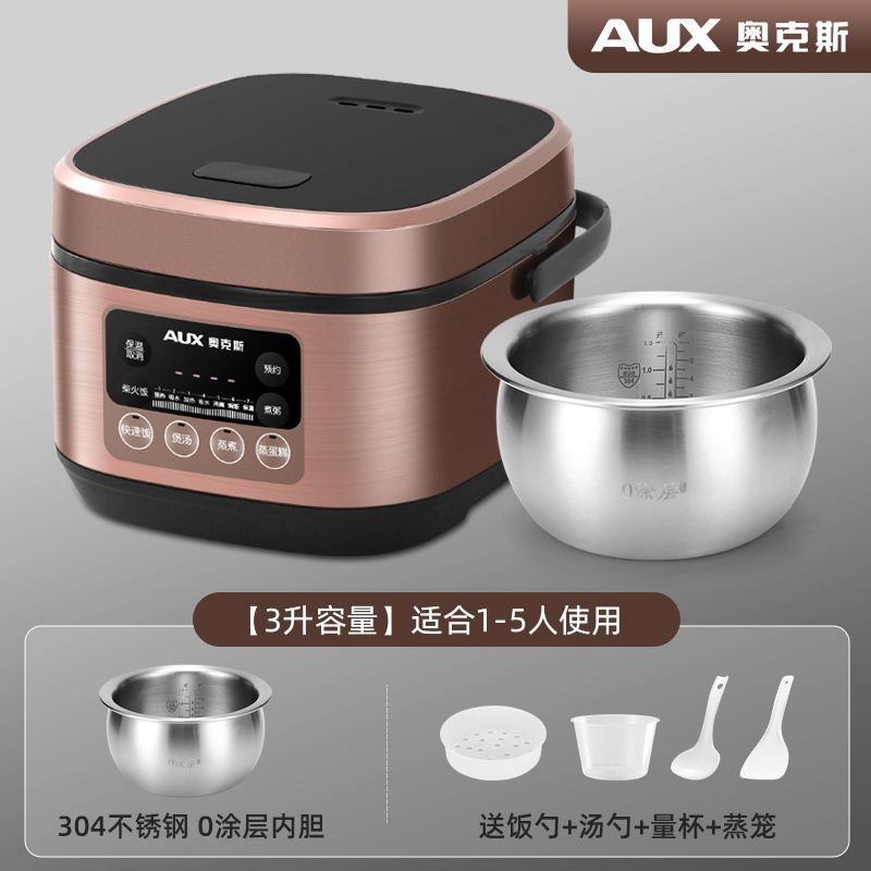 奥克斯无涂层电饭煲低糖不粘锅智能家用304不锈钢内胆多功能3L5升