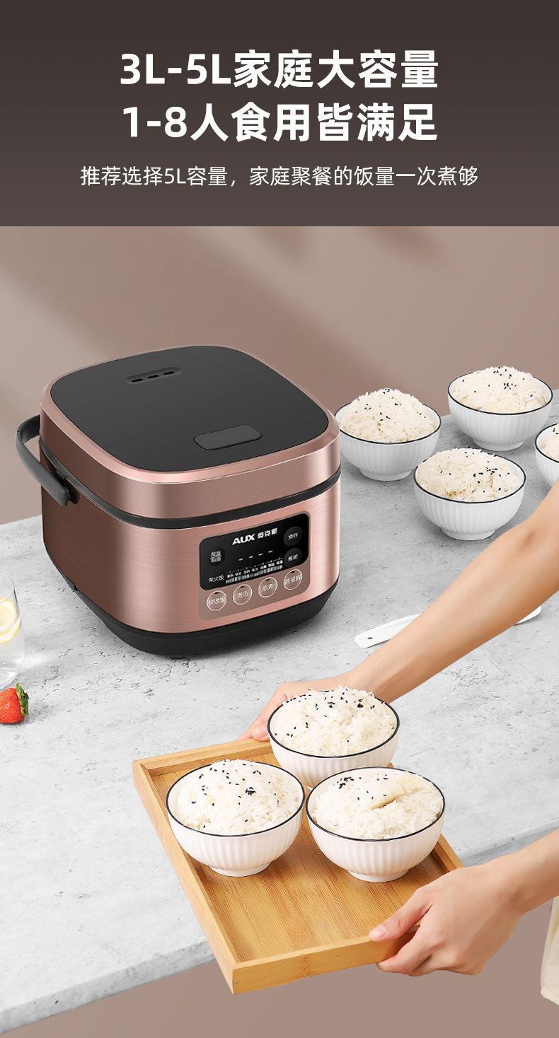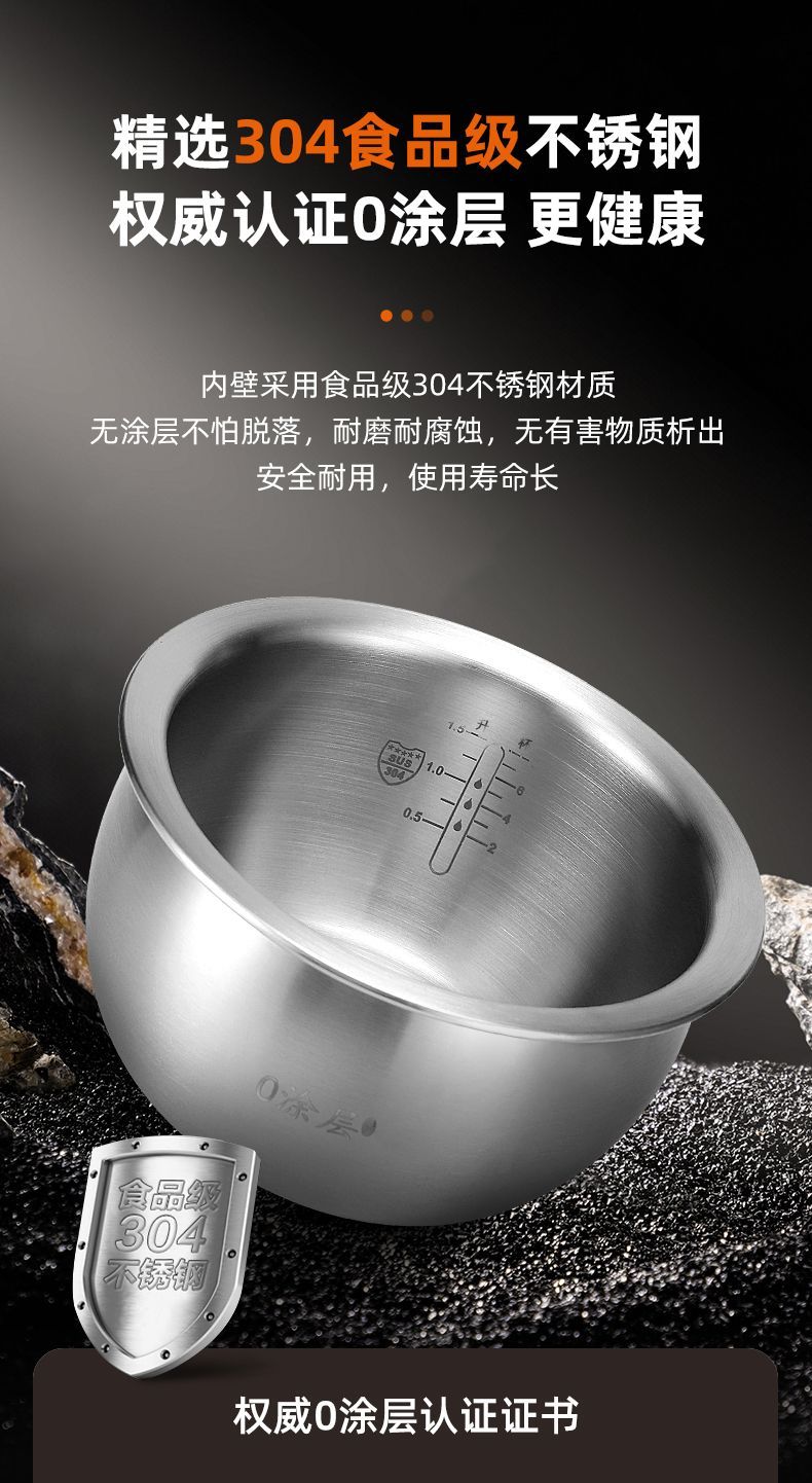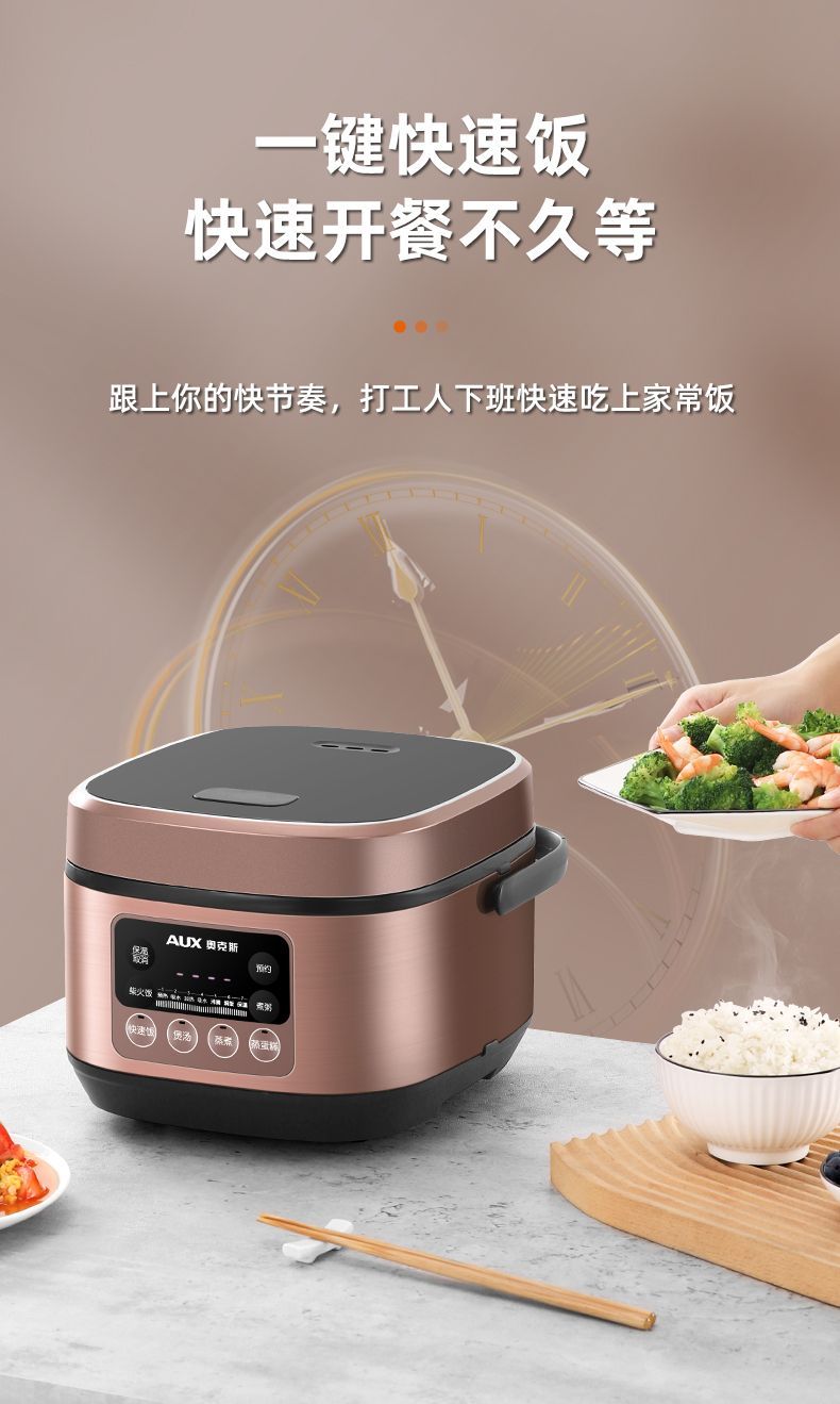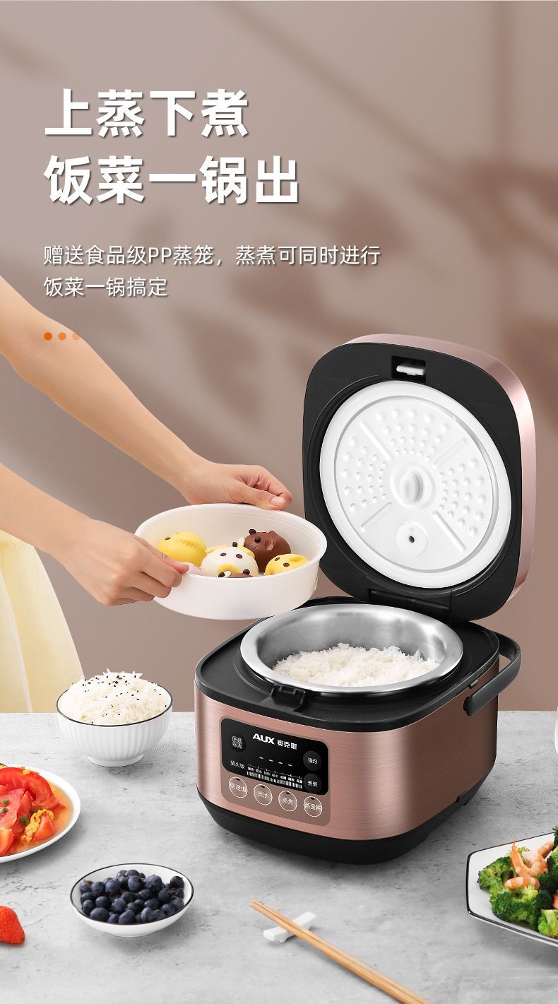 奥克斯无涂层电饭煲低糖不粘锅智能家用304不锈钢内胆多功能3L5升