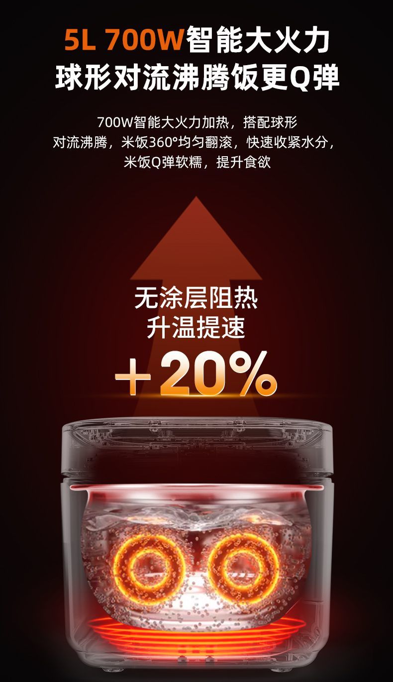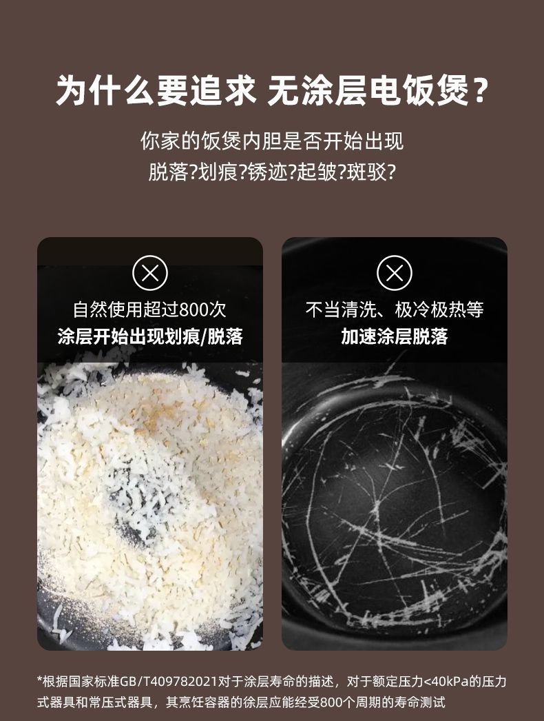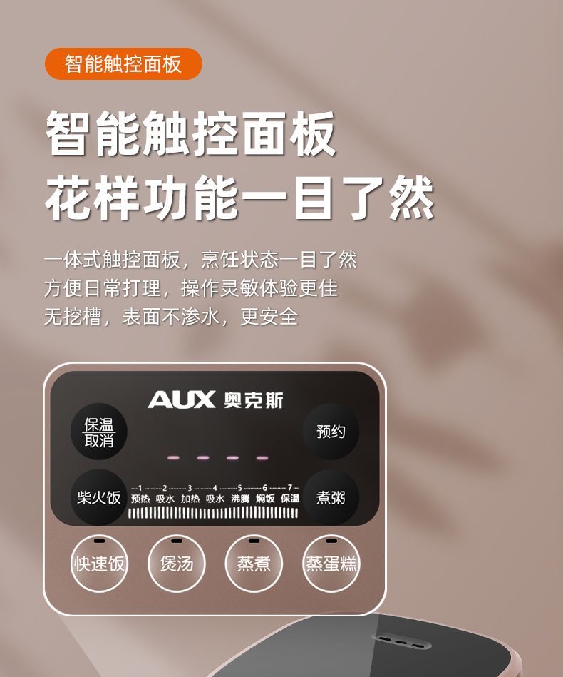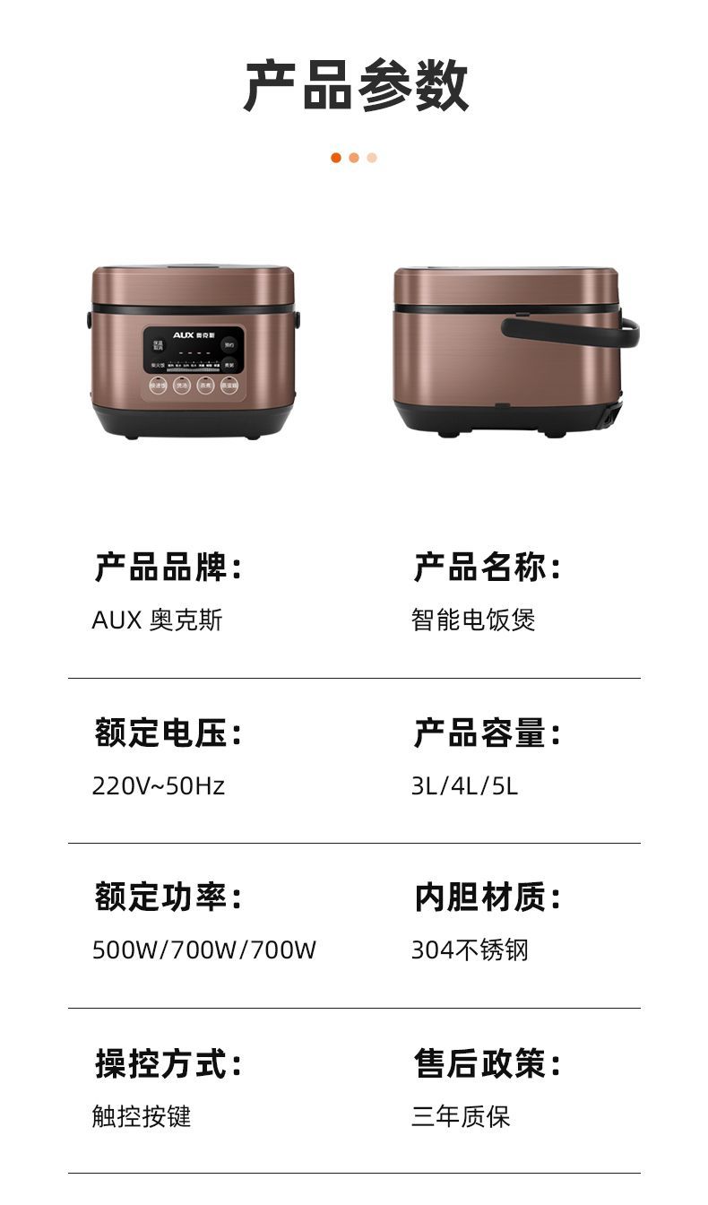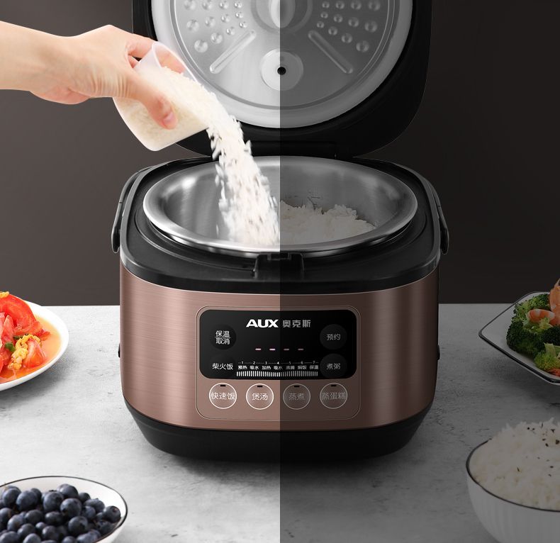 奥克斯无涂层电饭煲低糖不粘锅智能家用304不锈钢内胆多功能3L5升