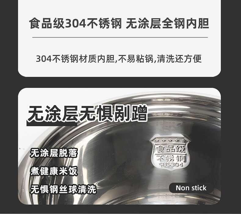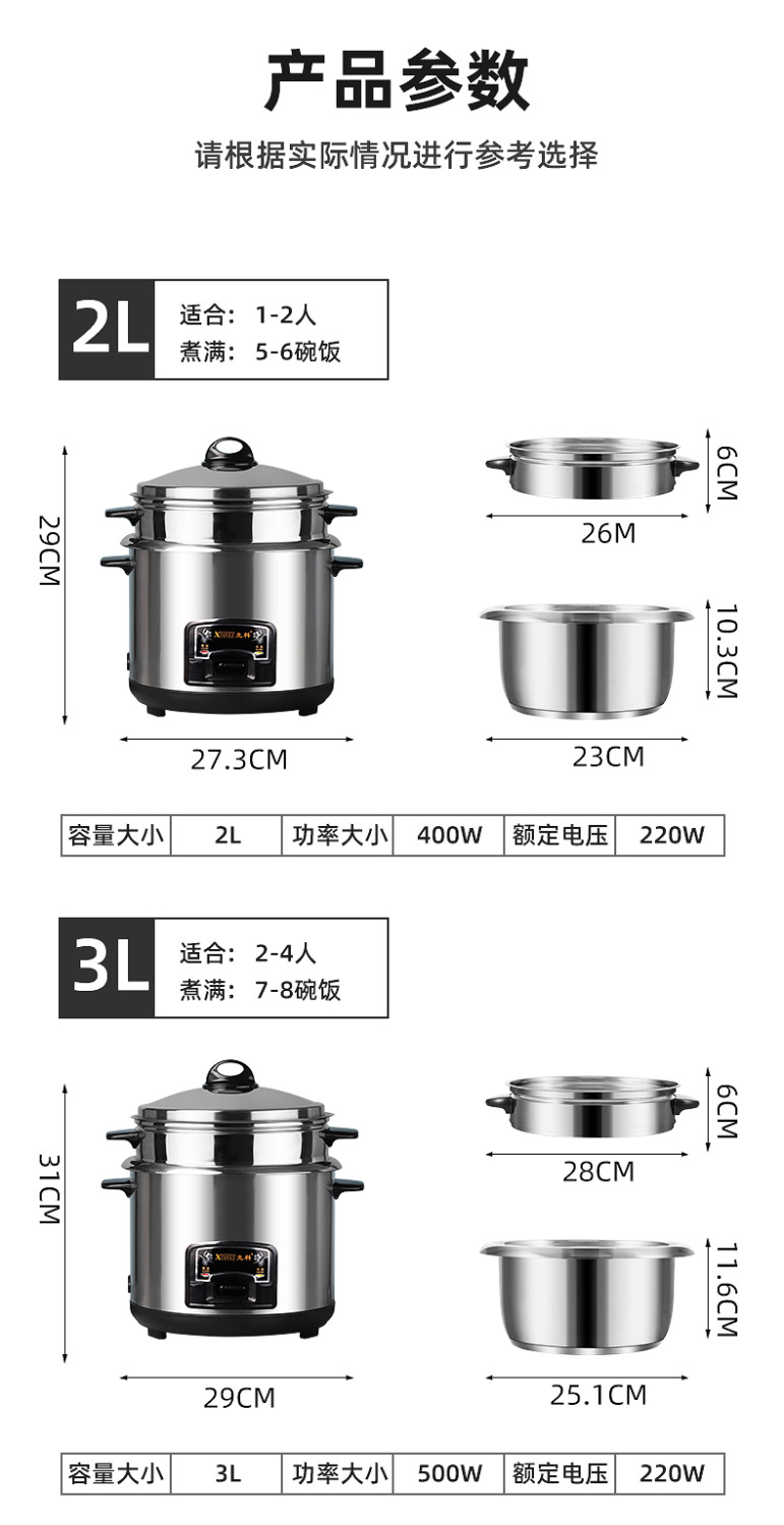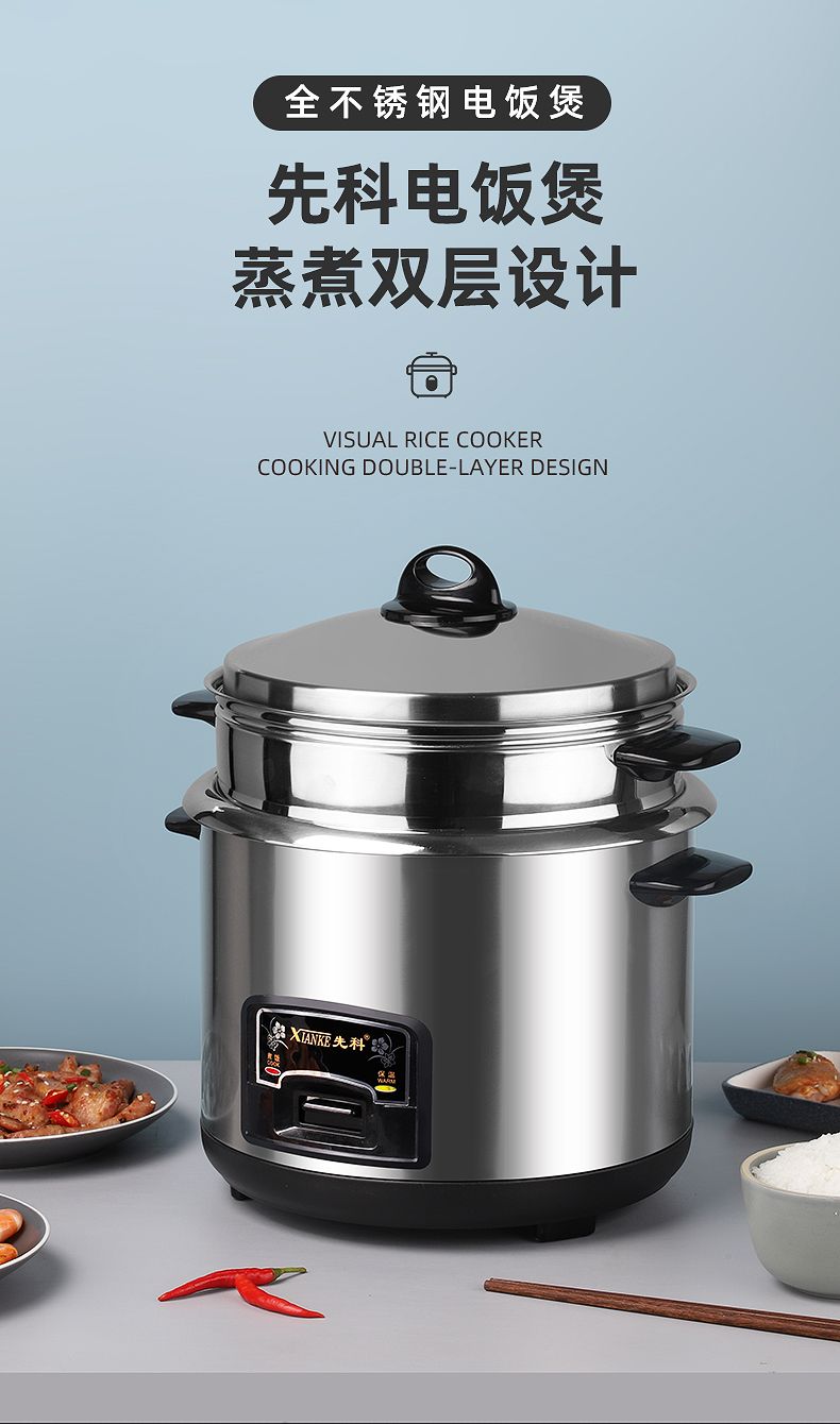 正品先科304不锈钢内胆老式电饭锅电饭煲家用无涂层电饭煲蒸煮炖