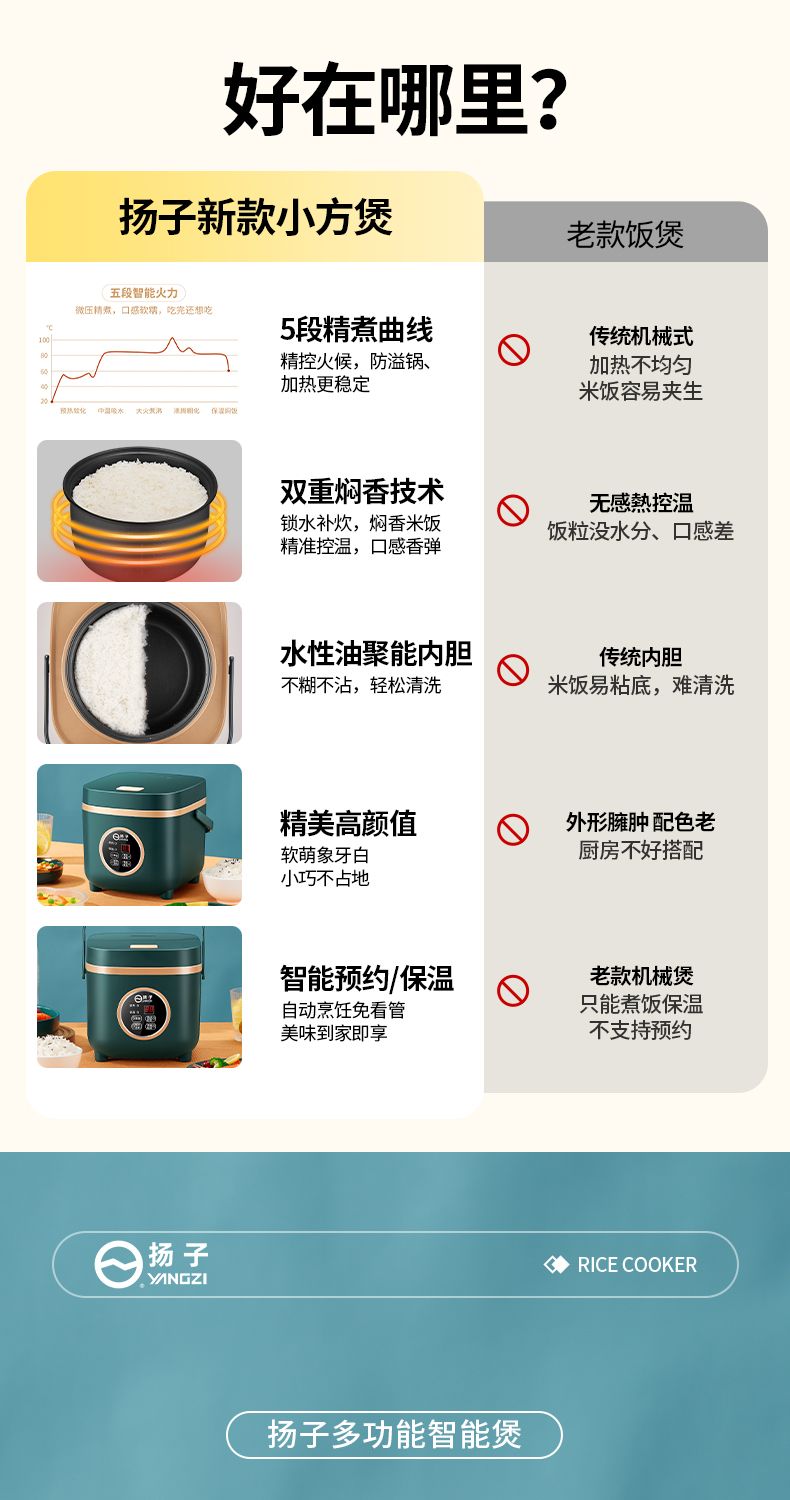 扬子迷你智能电饭煲小型家用2-3人宿舍1人多功能全自动蒸煮电饭锅
