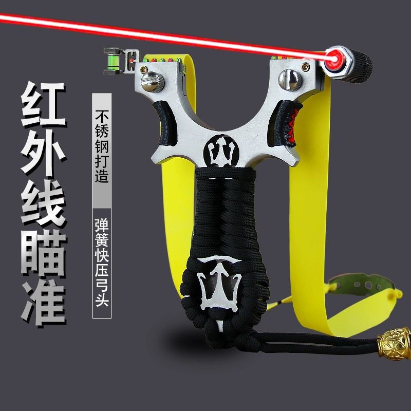 弹弓不锈钢金属户外实战加厚扁皮筋组单工架子红外激光高精度