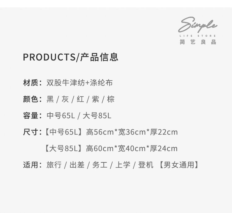 | 【登机旅行】65升【身高160-180推荐】 | USD $16.83 | 999999 piece available |