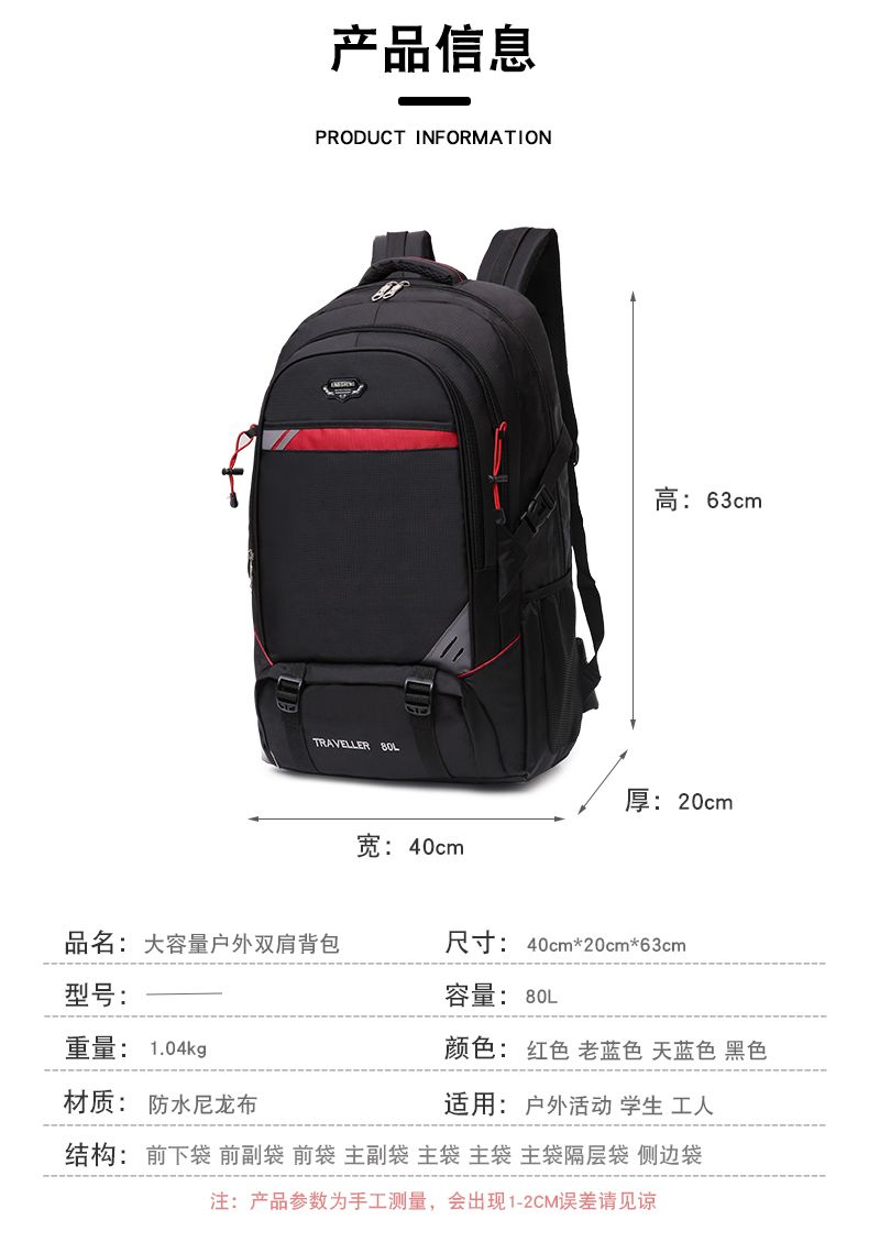 80升超大容量防水双肩包户外登山包男女旅行背包行李包徒步旅游包