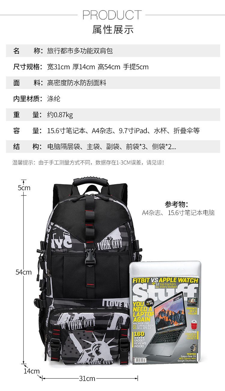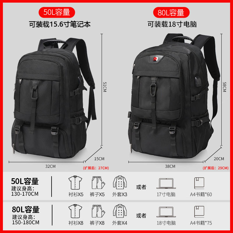 超大容量男士双肩包旅游背包休闲运动风户外行李包登山包防水书包