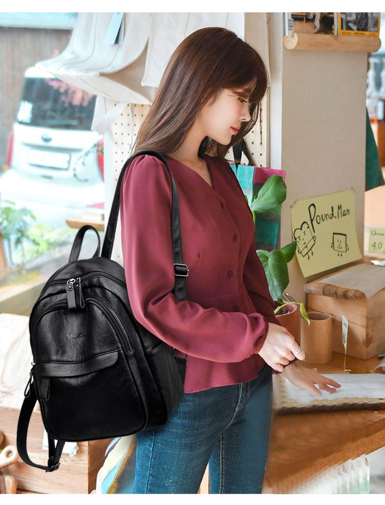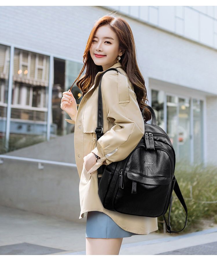 中年妈妈双肩背包外出潮休闲PU软皮旅行大容量背包女书包女学生