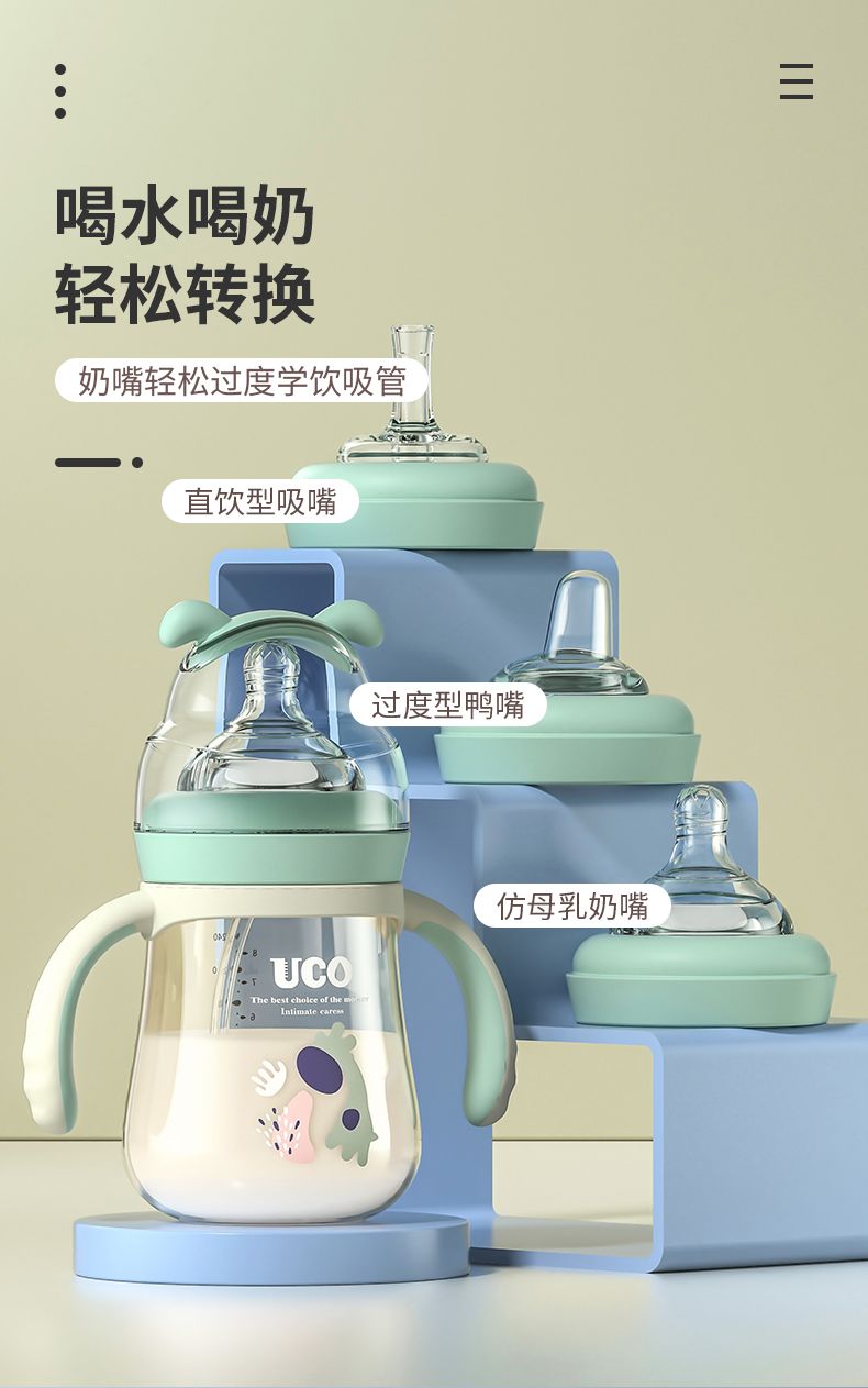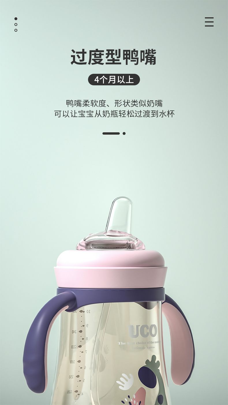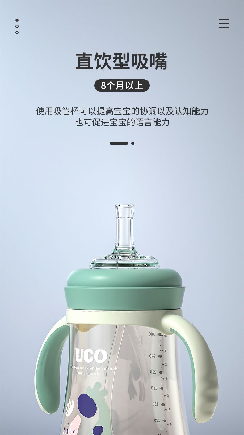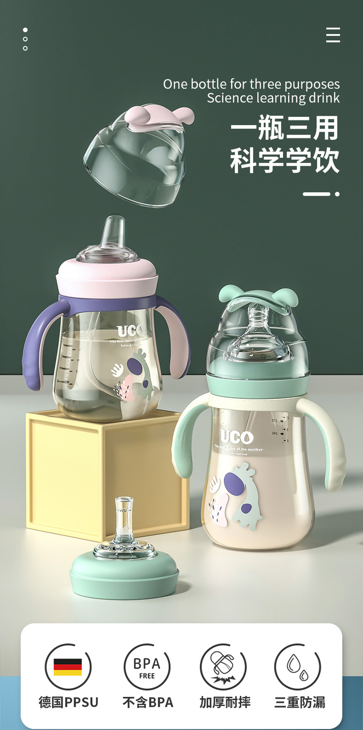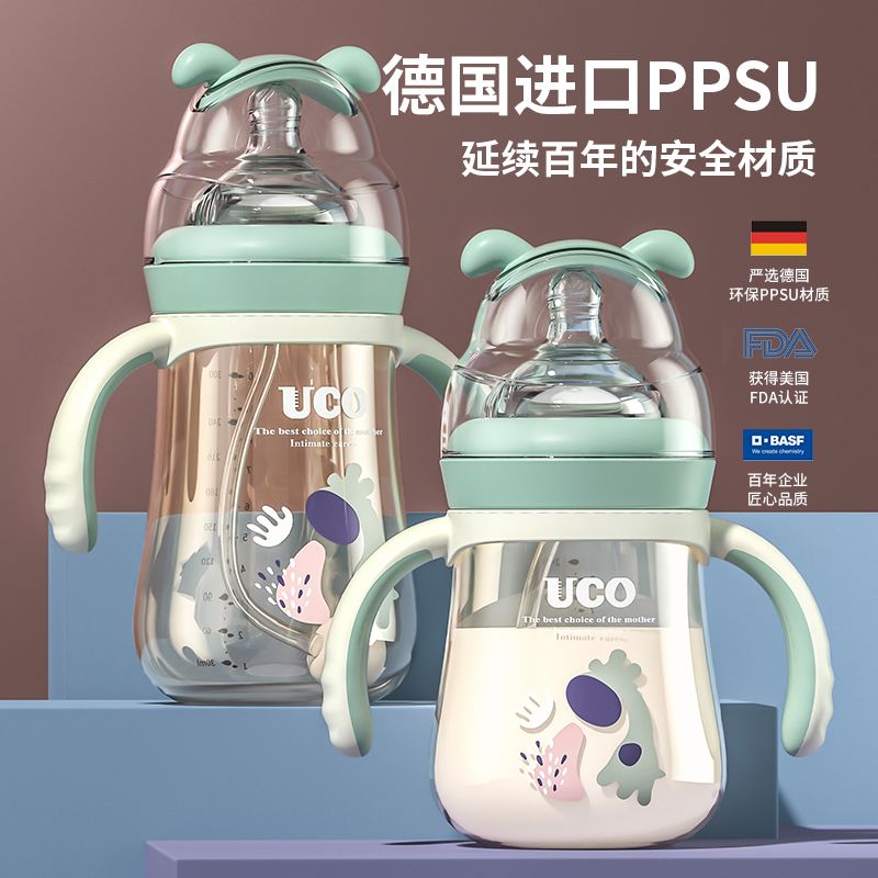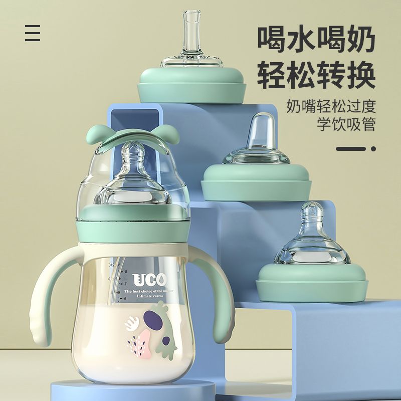 优可PPSU奶瓶婴儿防摔宽口径带吸管一岁宝宝二新生儿鸭嘴杯半水三