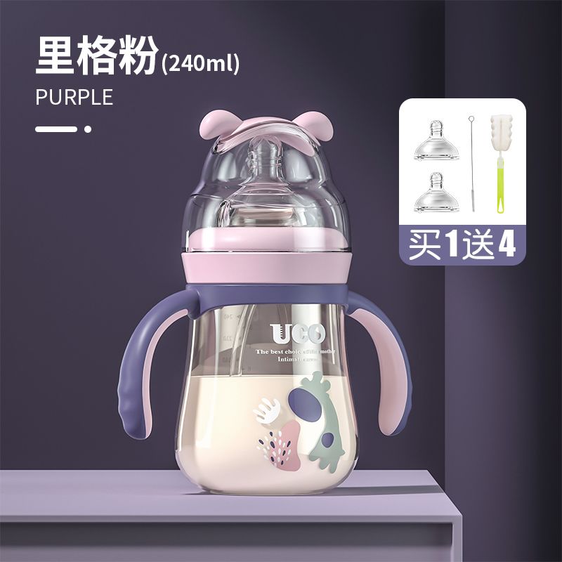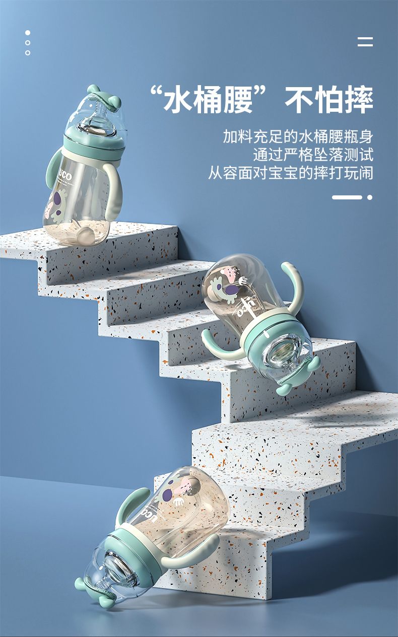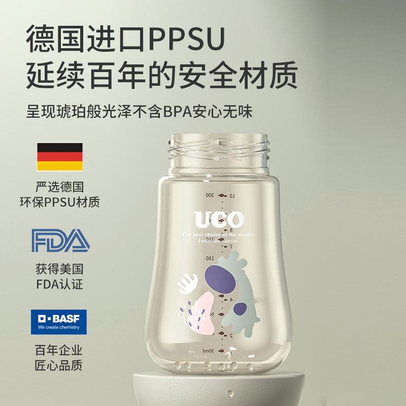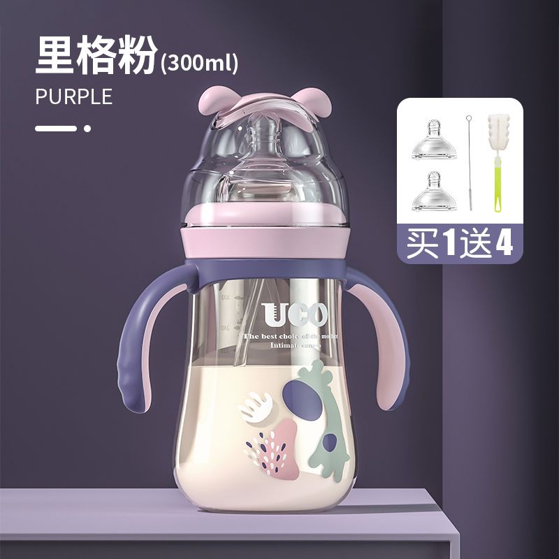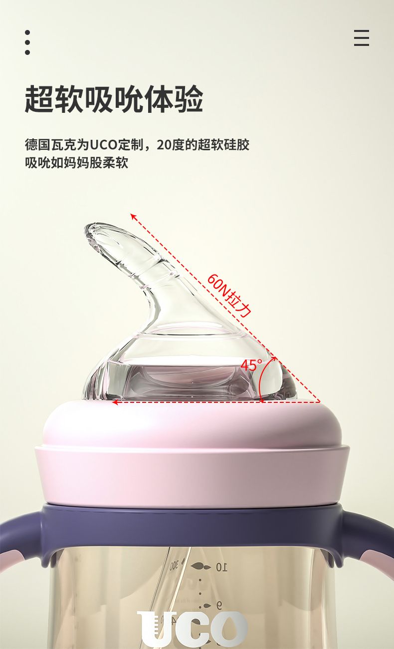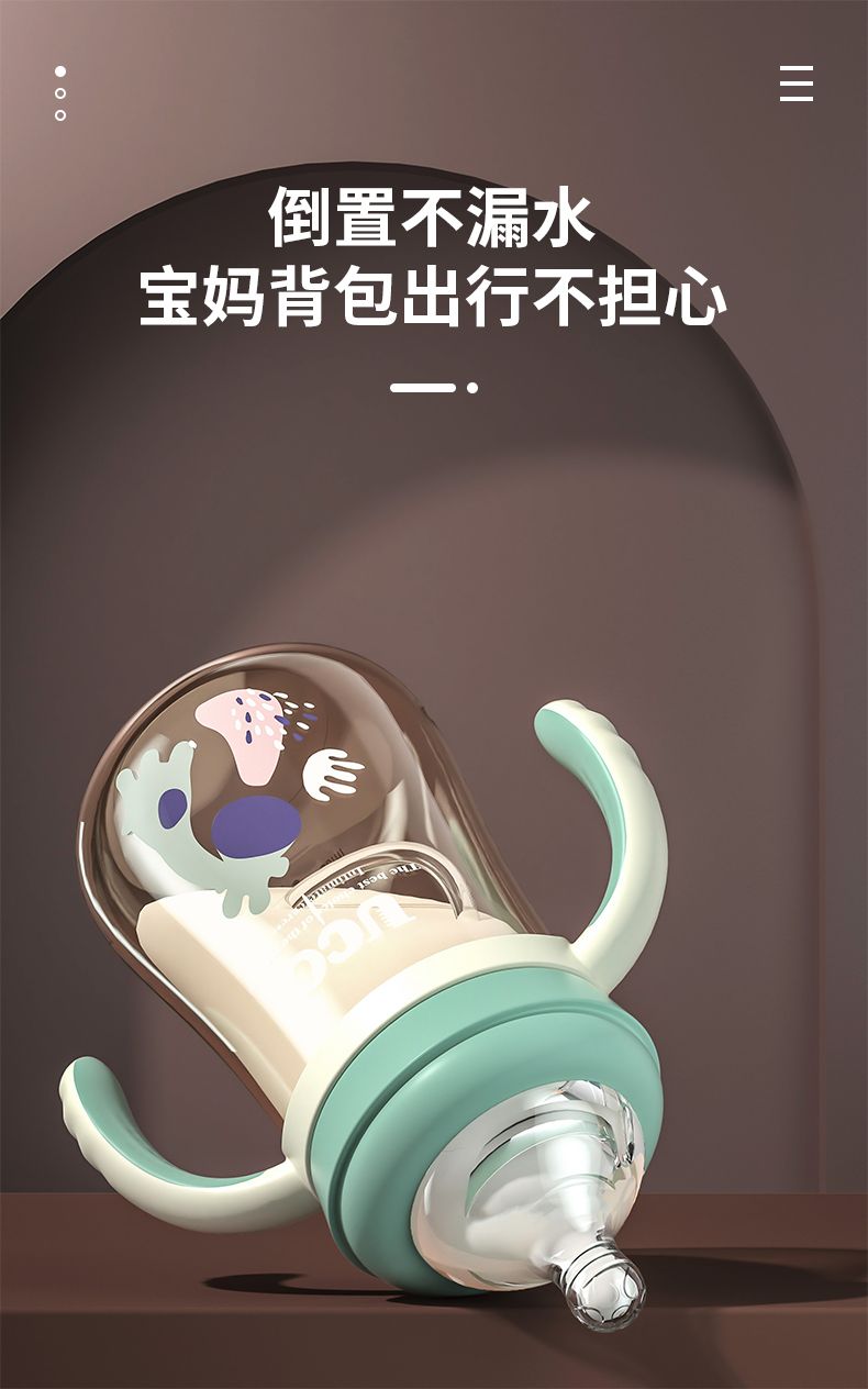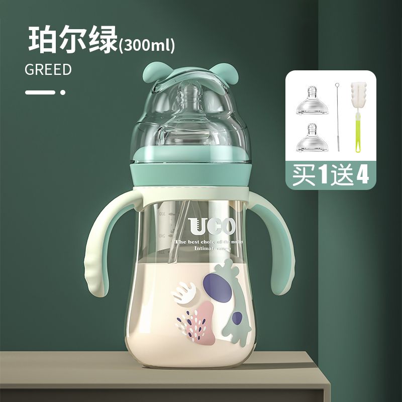 优可PPSU奶瓶婴儿防摔宽口径带吸管一岁宝宝二新生儿鸭嘴杯半水三