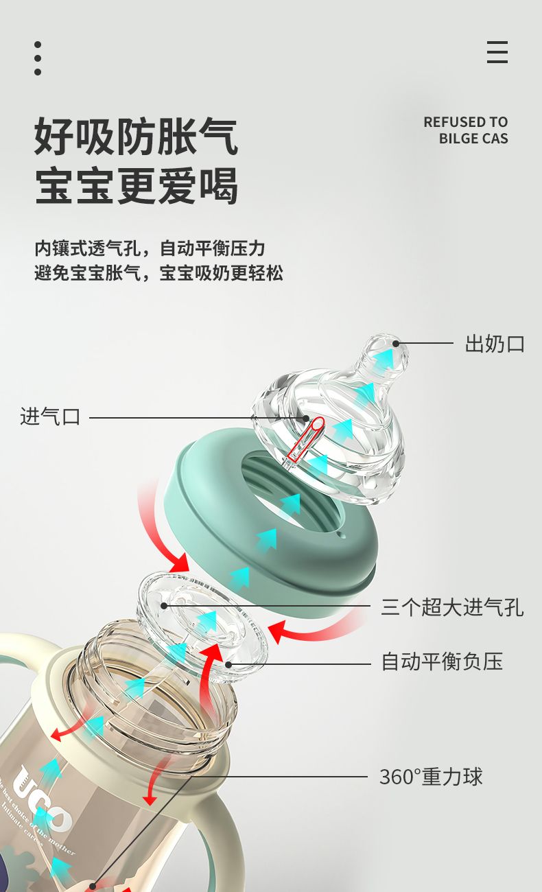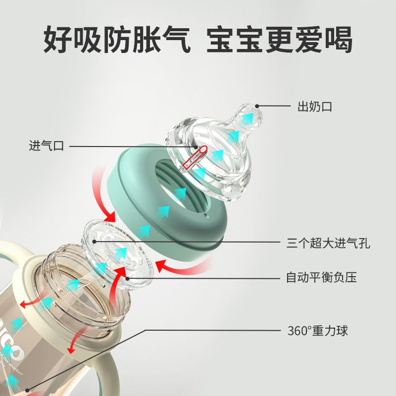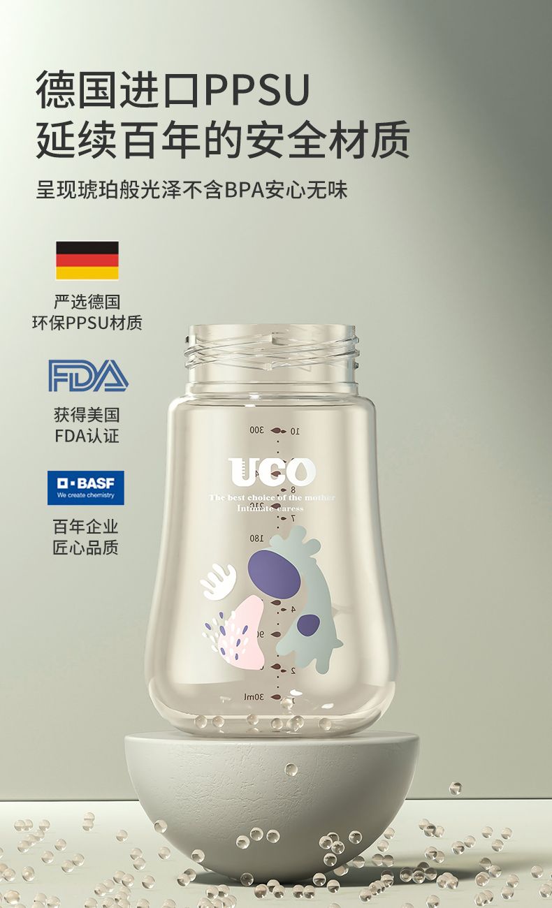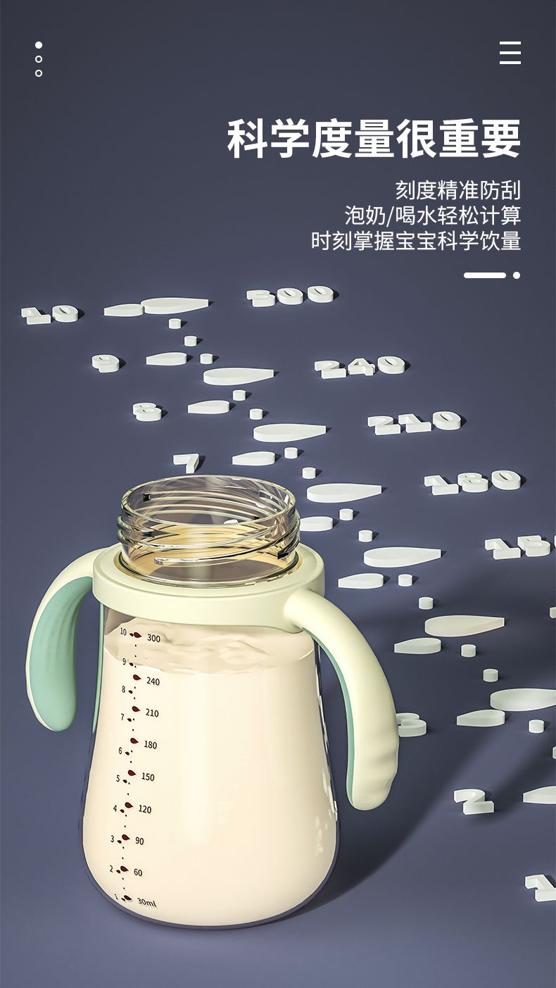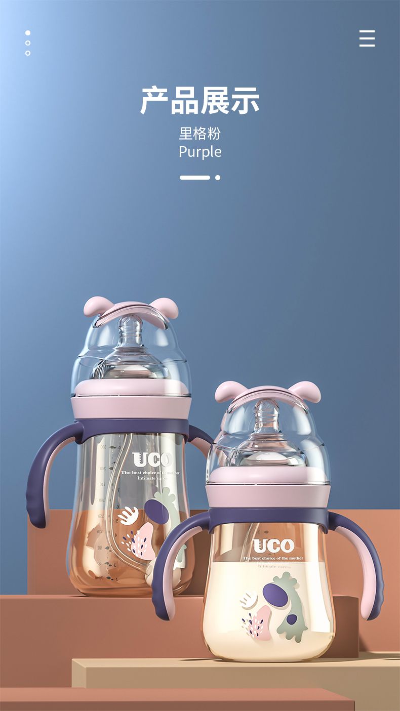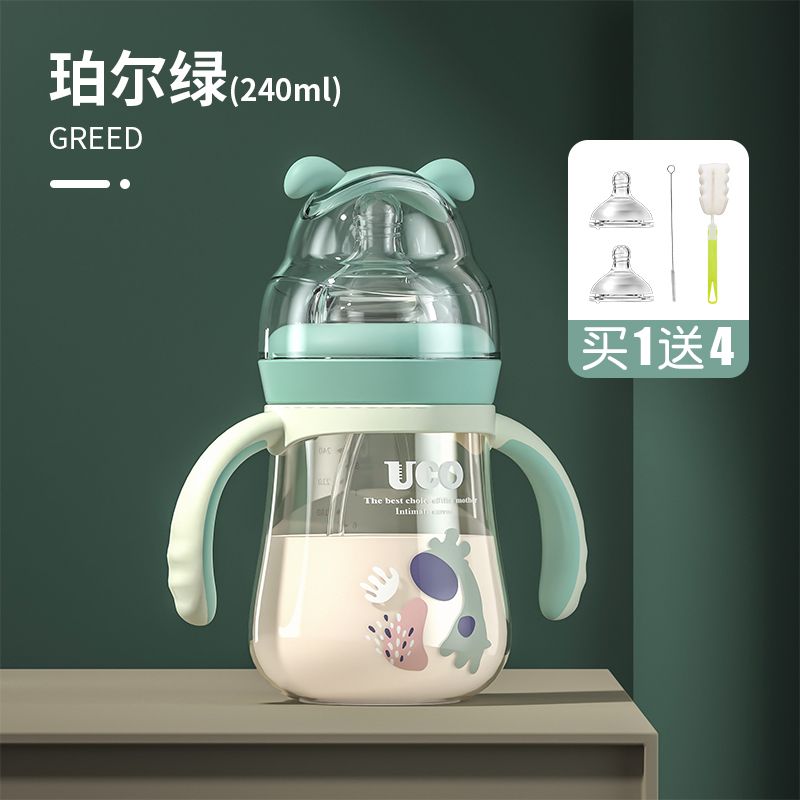 优可PPSU奶瓶婴儿防摔宽口径带吸管一岁宝宝二新生儿鸭嘴杯半水三