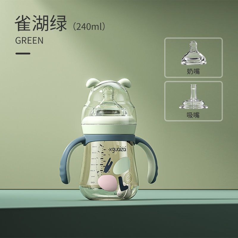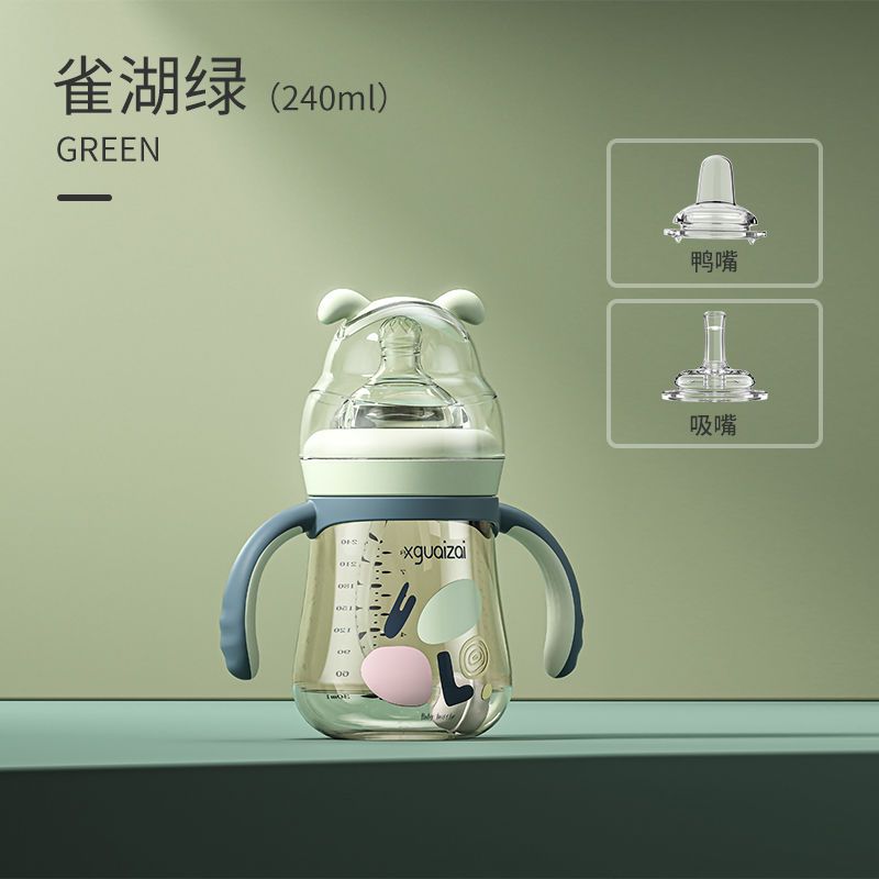 小乖仔PPSU婴儿奶瓶仿母乳吸管杯鸭嘴杯防摔宝宝防胀气新生2岁3带