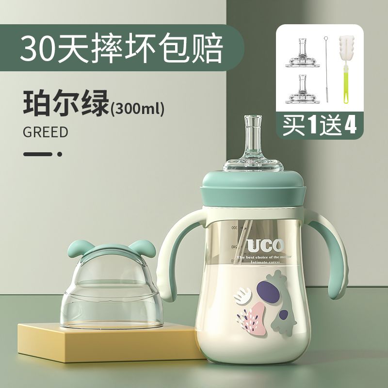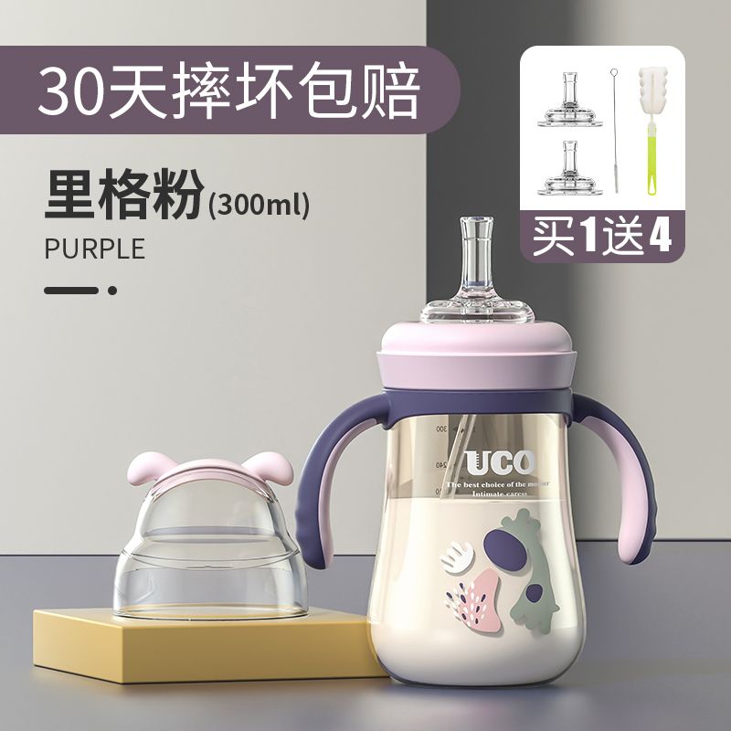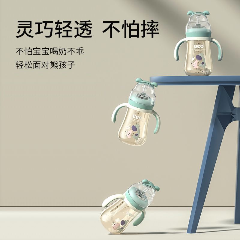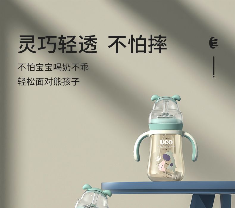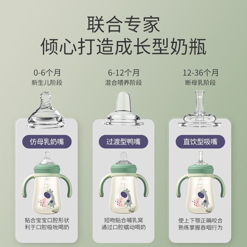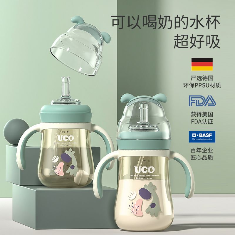 优可PPSU婴儿吸管奶瓶宝宝学饮杯防胀气1-3岁带吸管儿童防呛水杯2