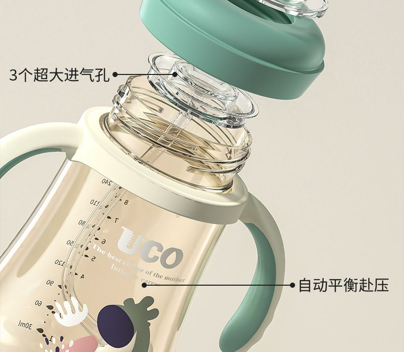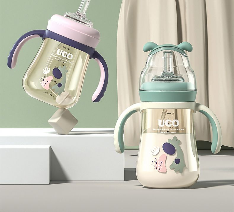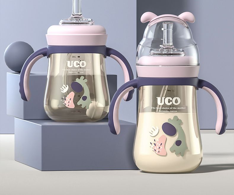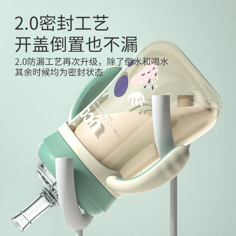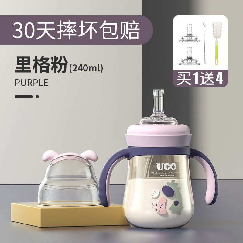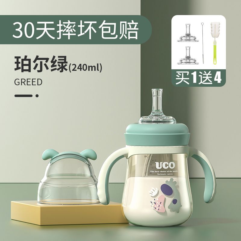 优可PPSU婴儿吸管奶瓶宝宝学饮杯防胀气1-3岁带吸管儿童防呛水杯2