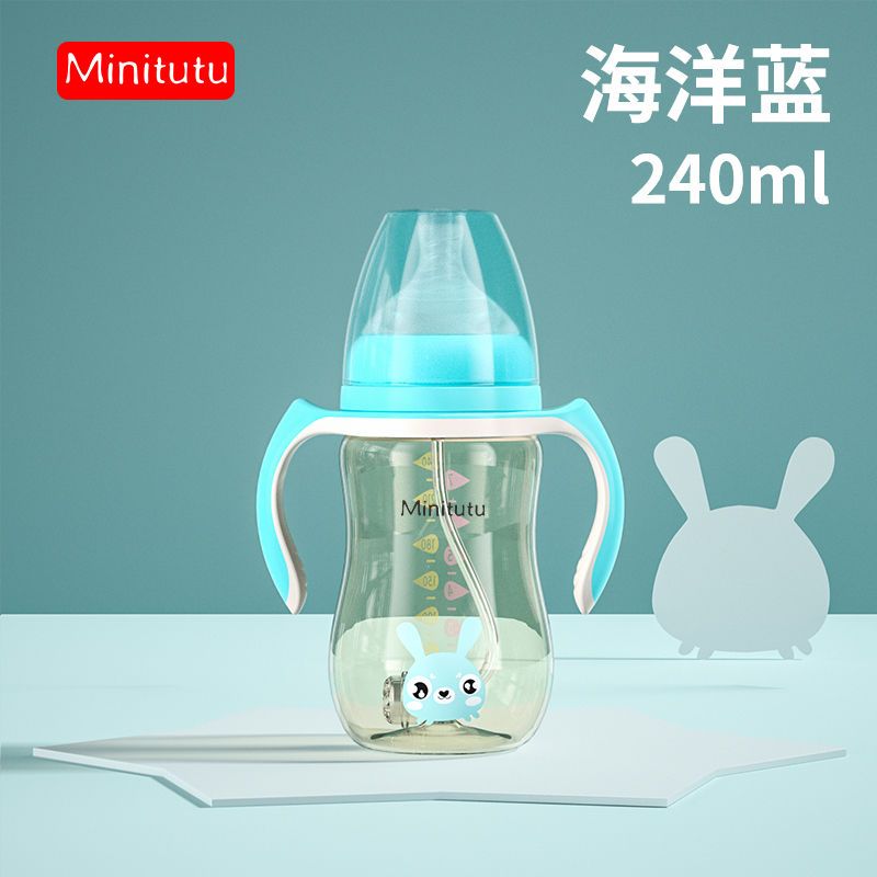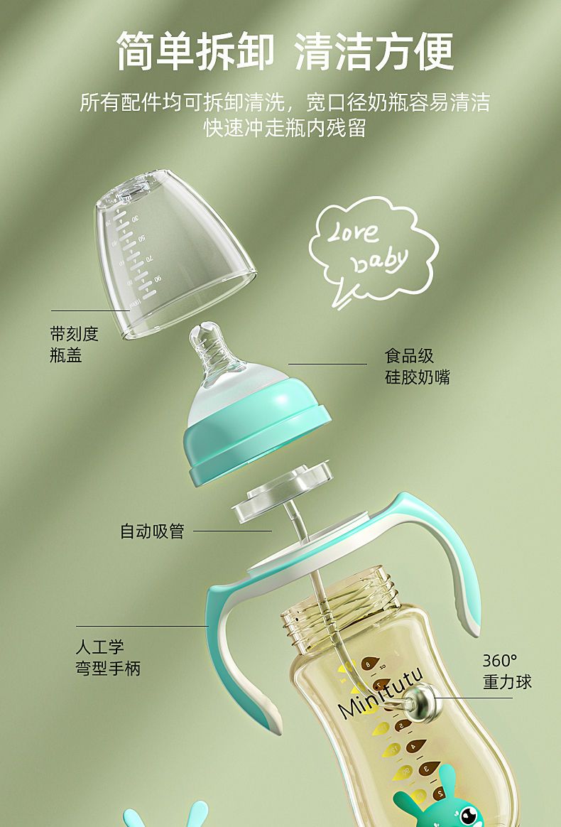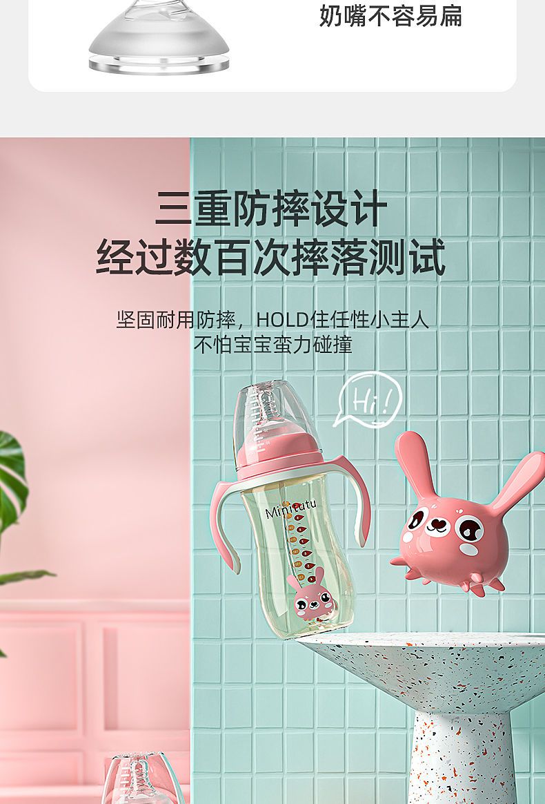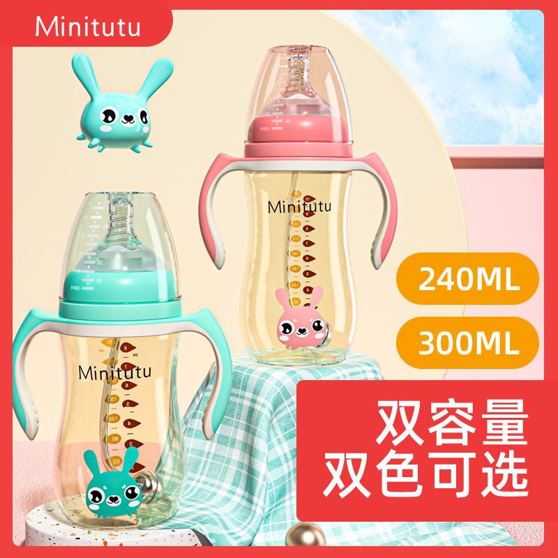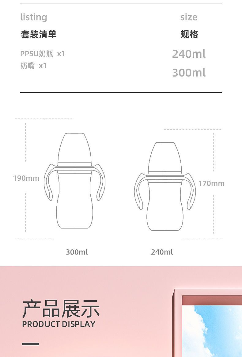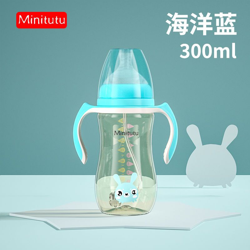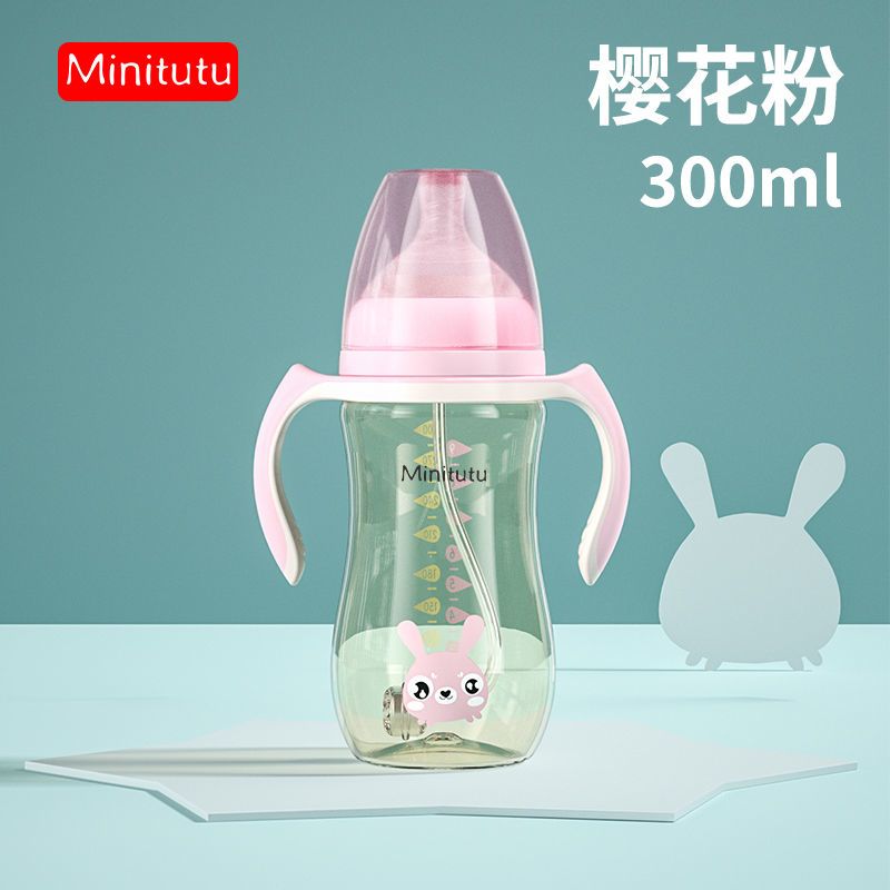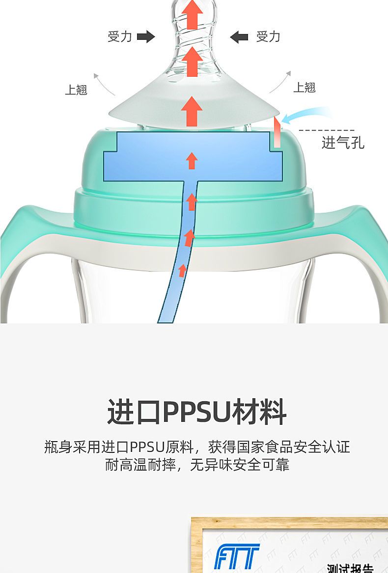 婴幼儿奶瓶ppsu宽口径防胀气防摔300ml耐高温初新生儿套装手柄