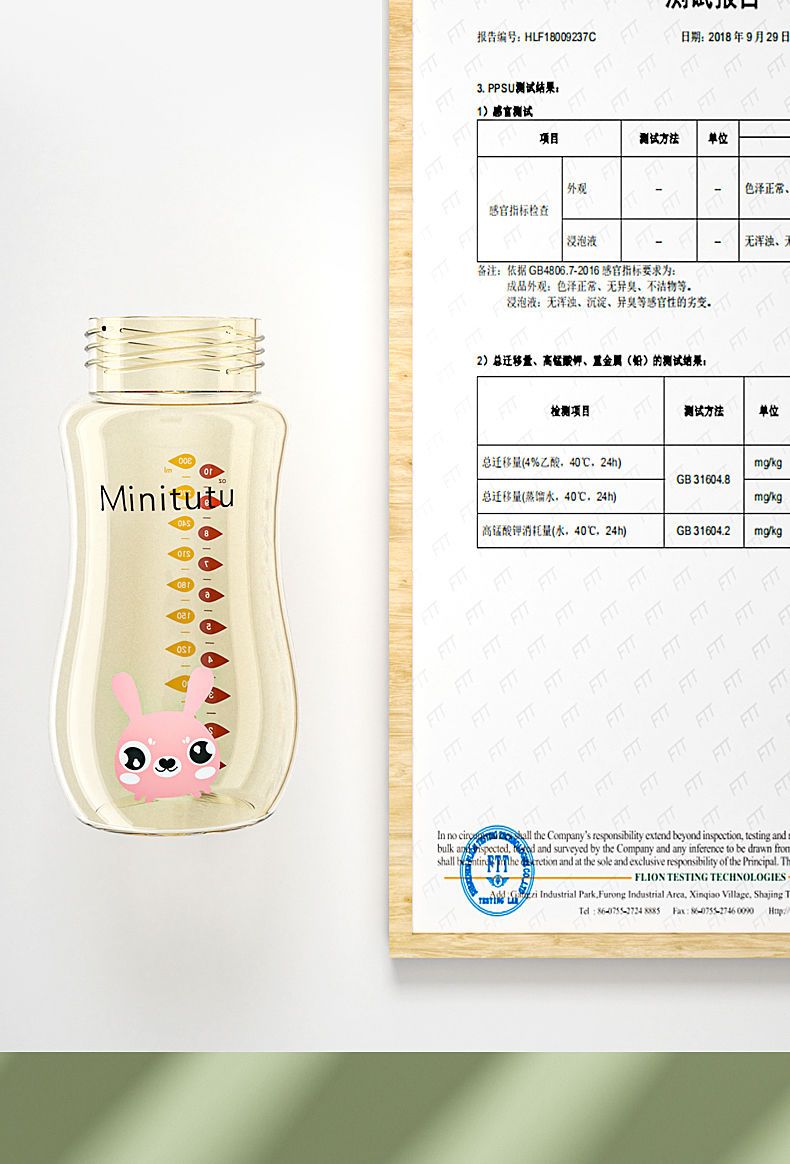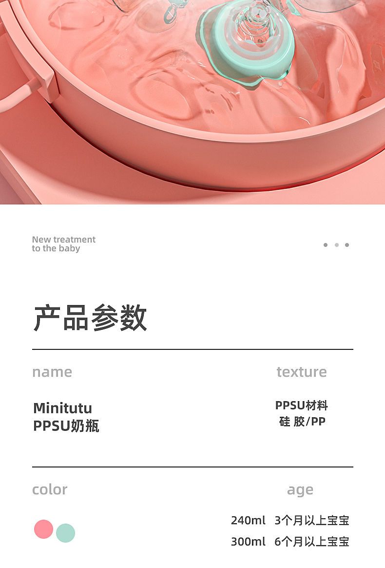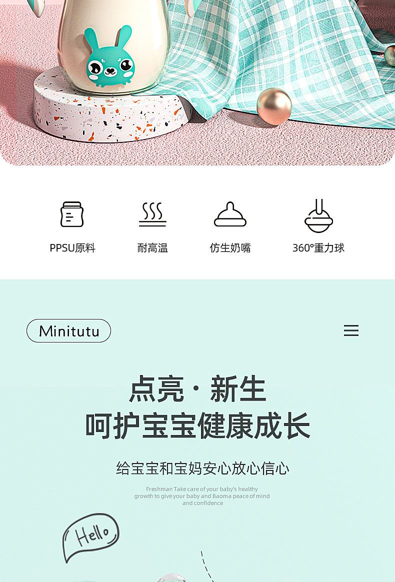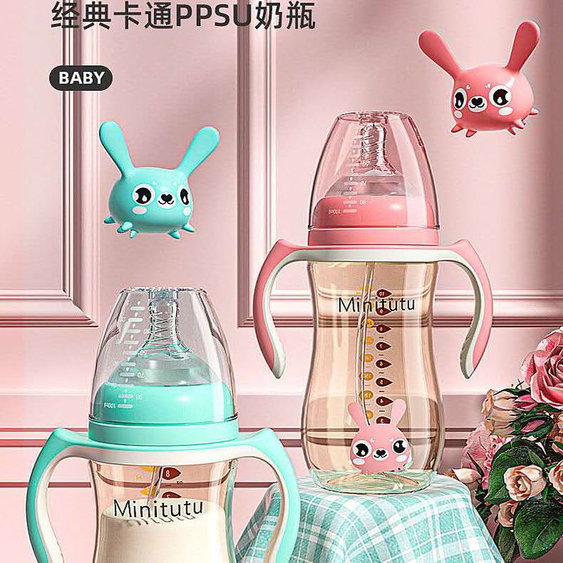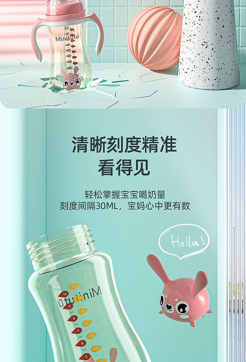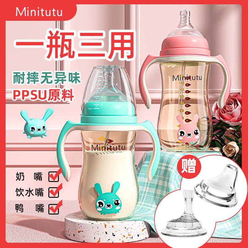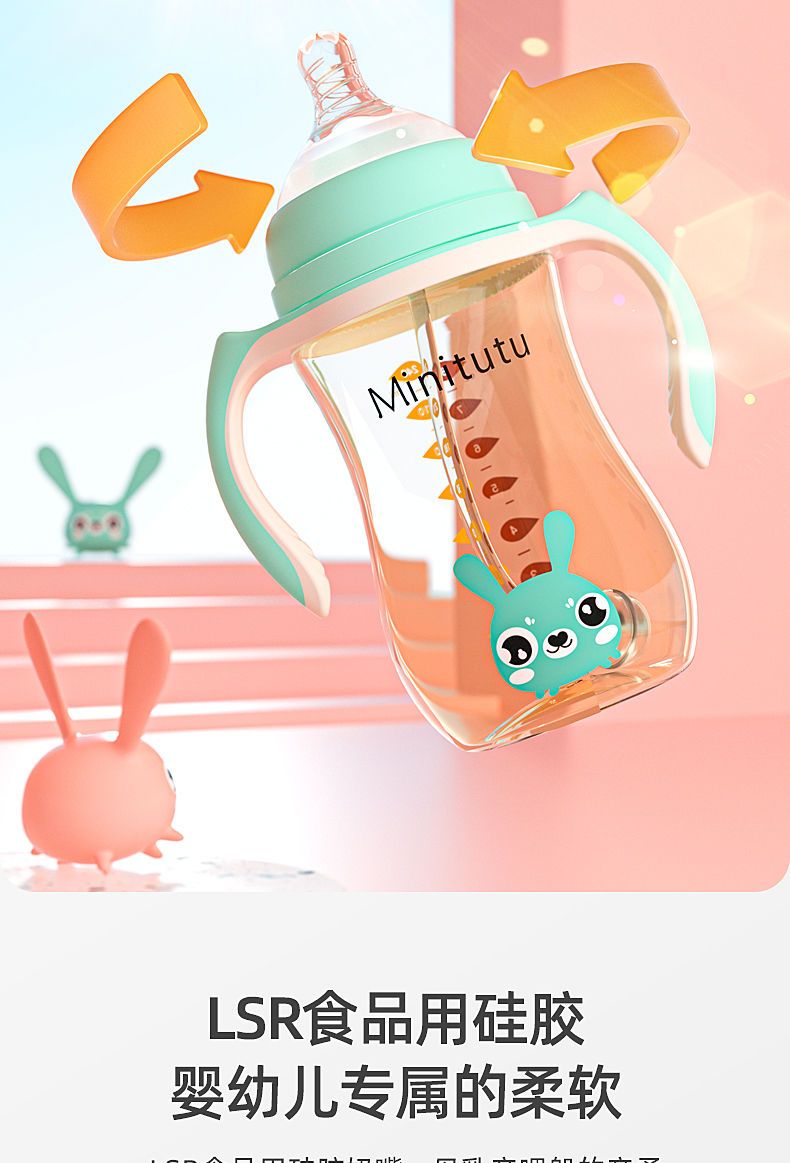 婴幼儿奶瓶ppsu宽口径防胀气防摔300ml耐高温初新生儿套装手柄