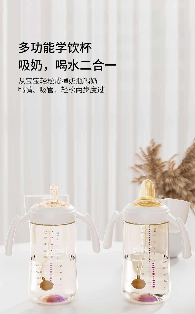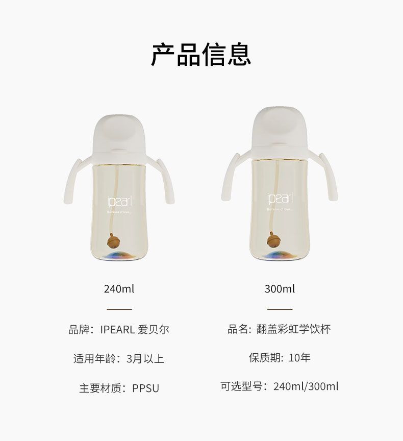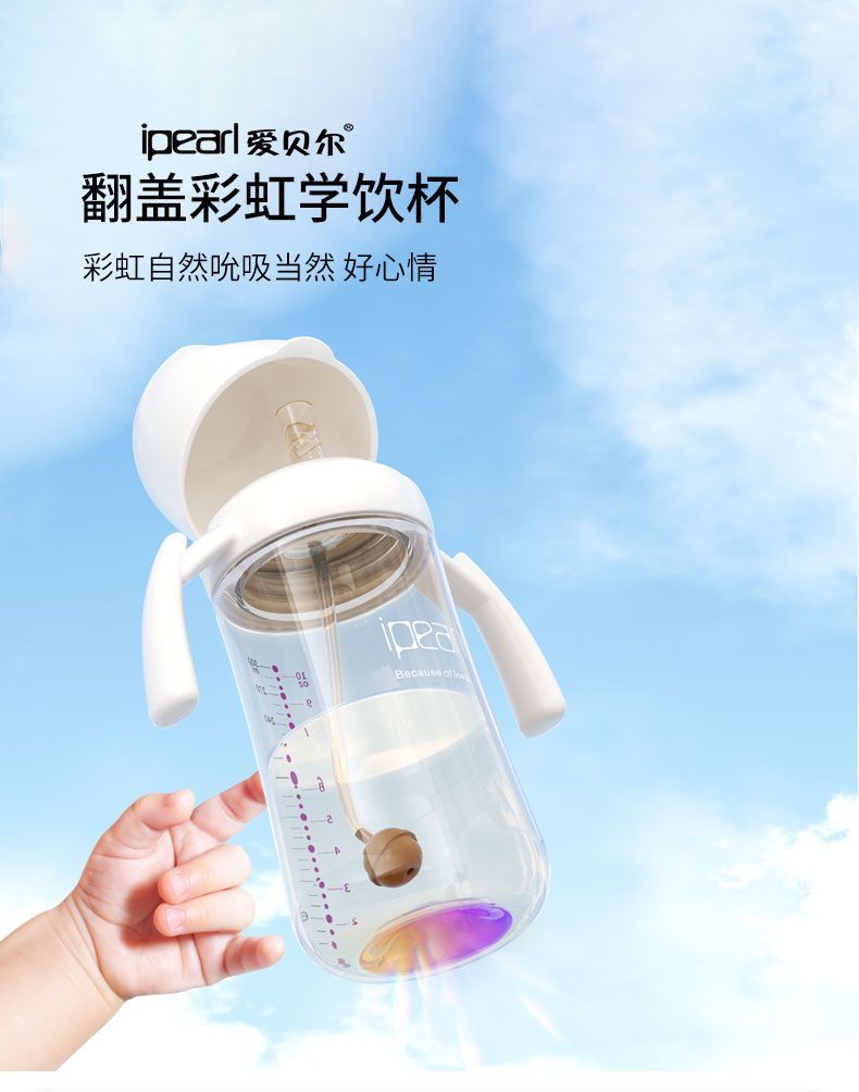 直饮彩虹学饮杯PPSU翻盖宝宝防呛喝奶喝水杯吸管杯奶瓶杯1-3岁