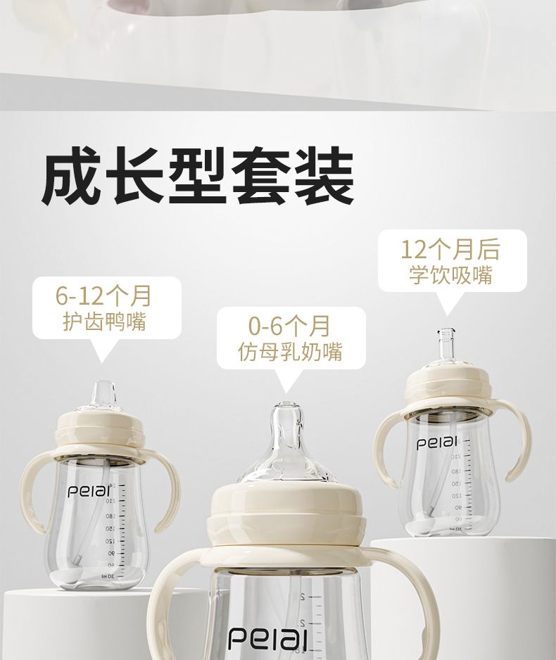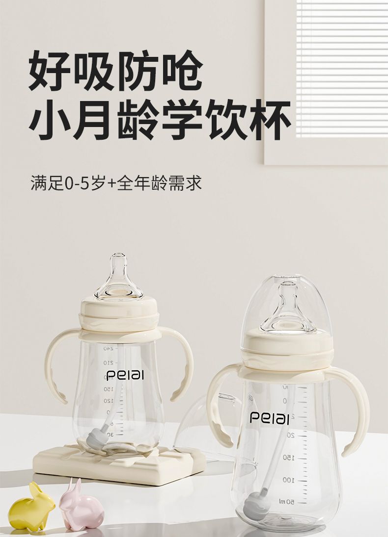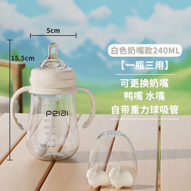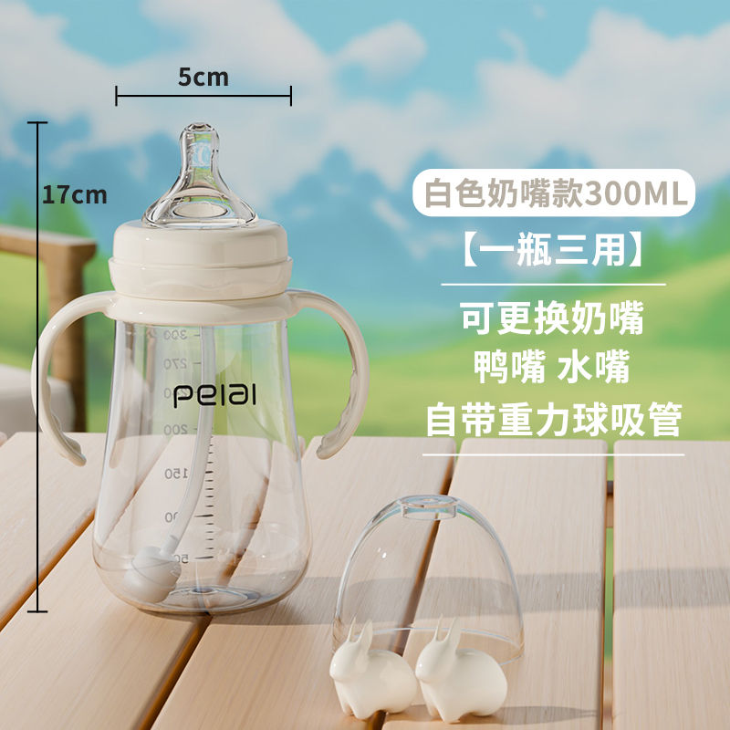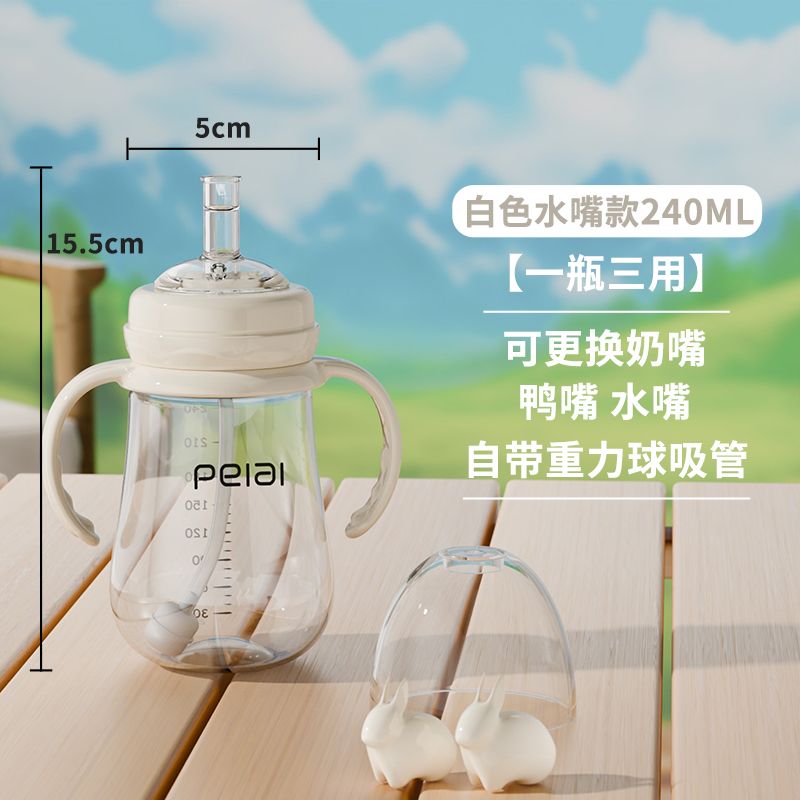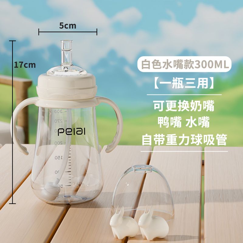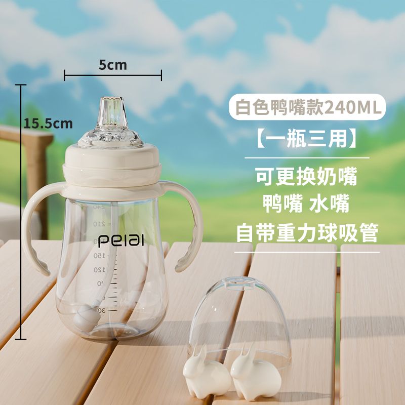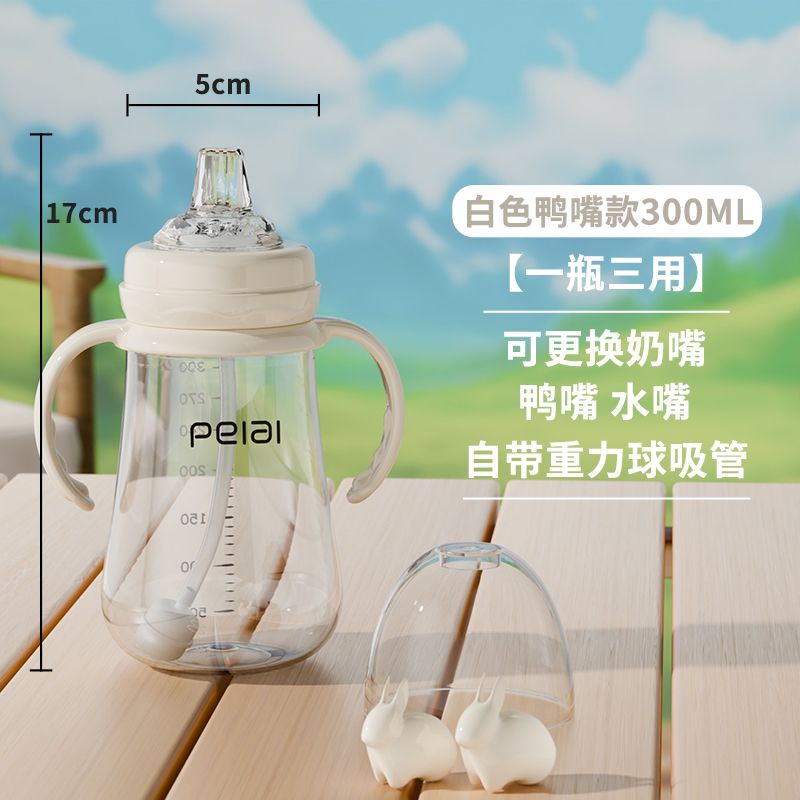 婴儿吸管式奶瓶宝宝喝水杯儿童直饮嘴学饮杯带手柄防漏耐摔鸭嘴杯