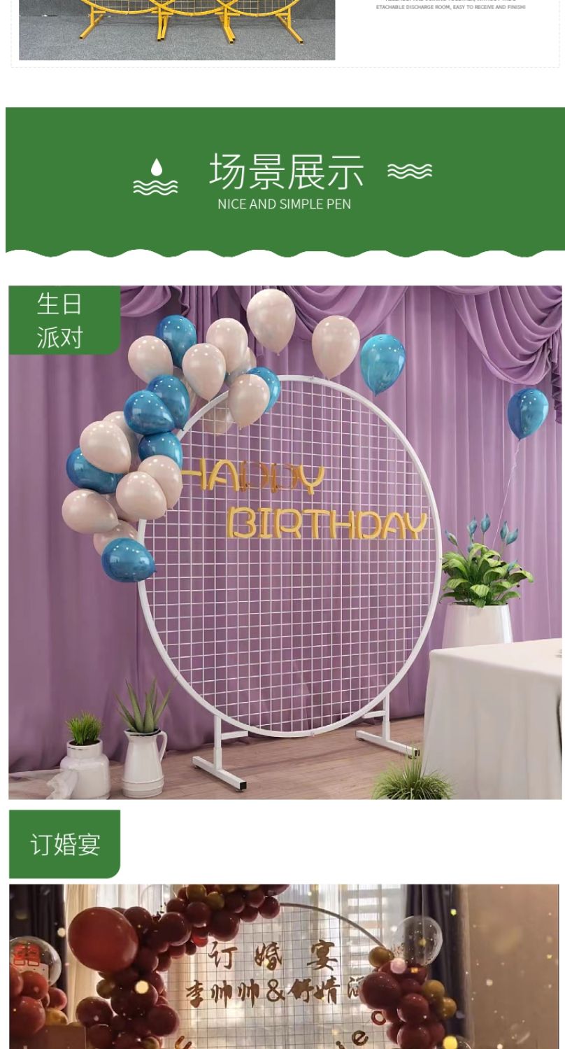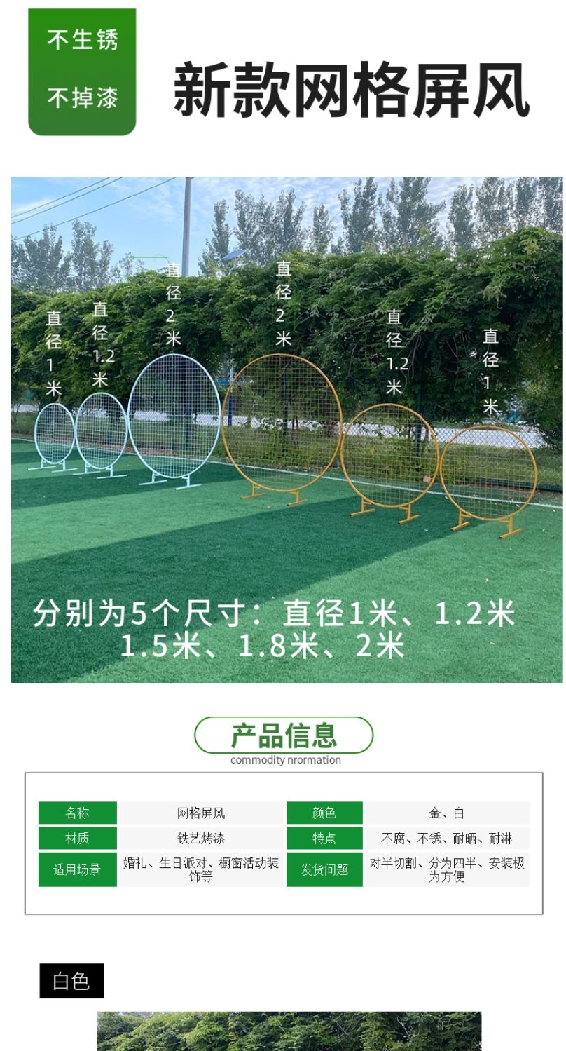新款铁艺圆形网格屏风森系婚礼装饰摆件舞台庆典布置背景气球拱门