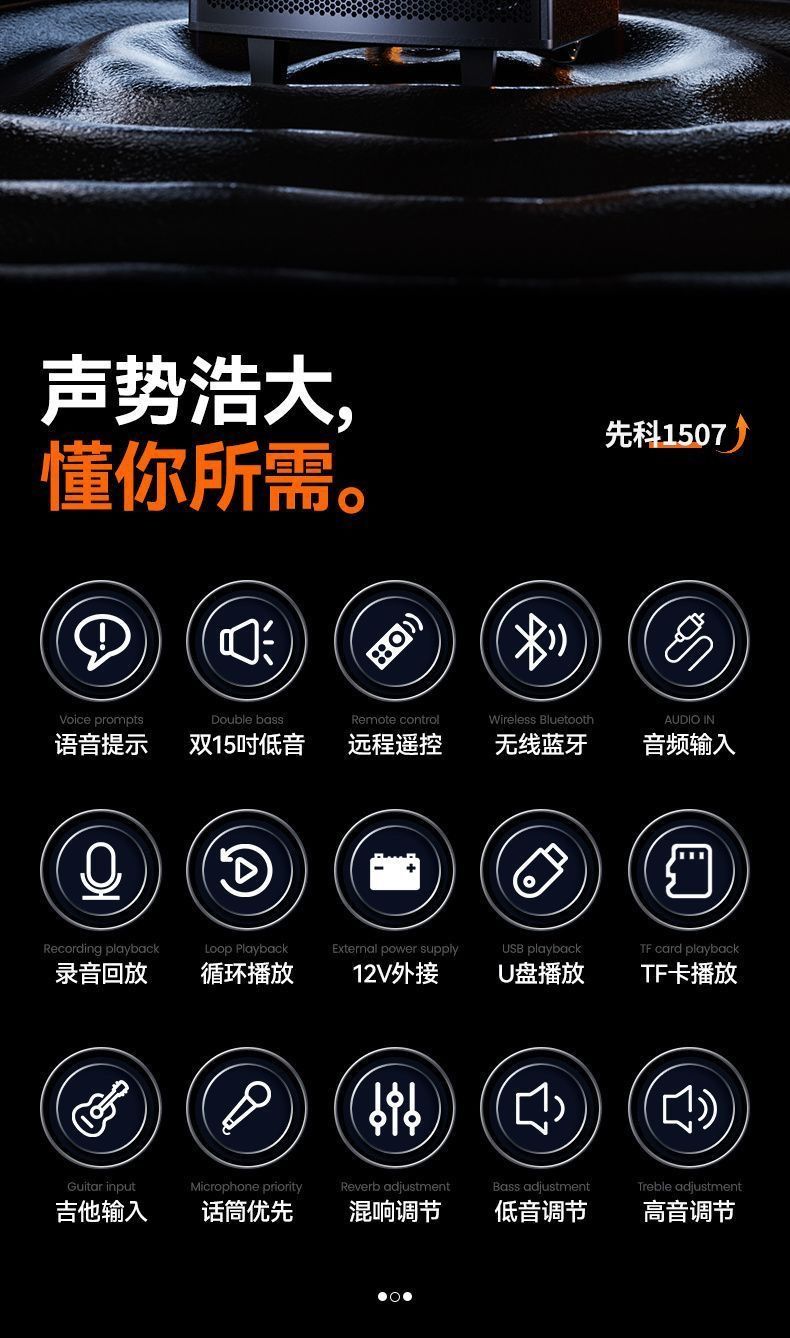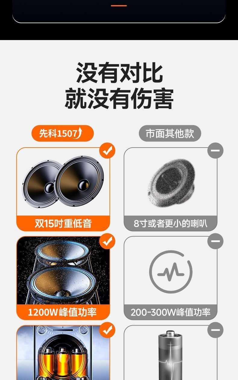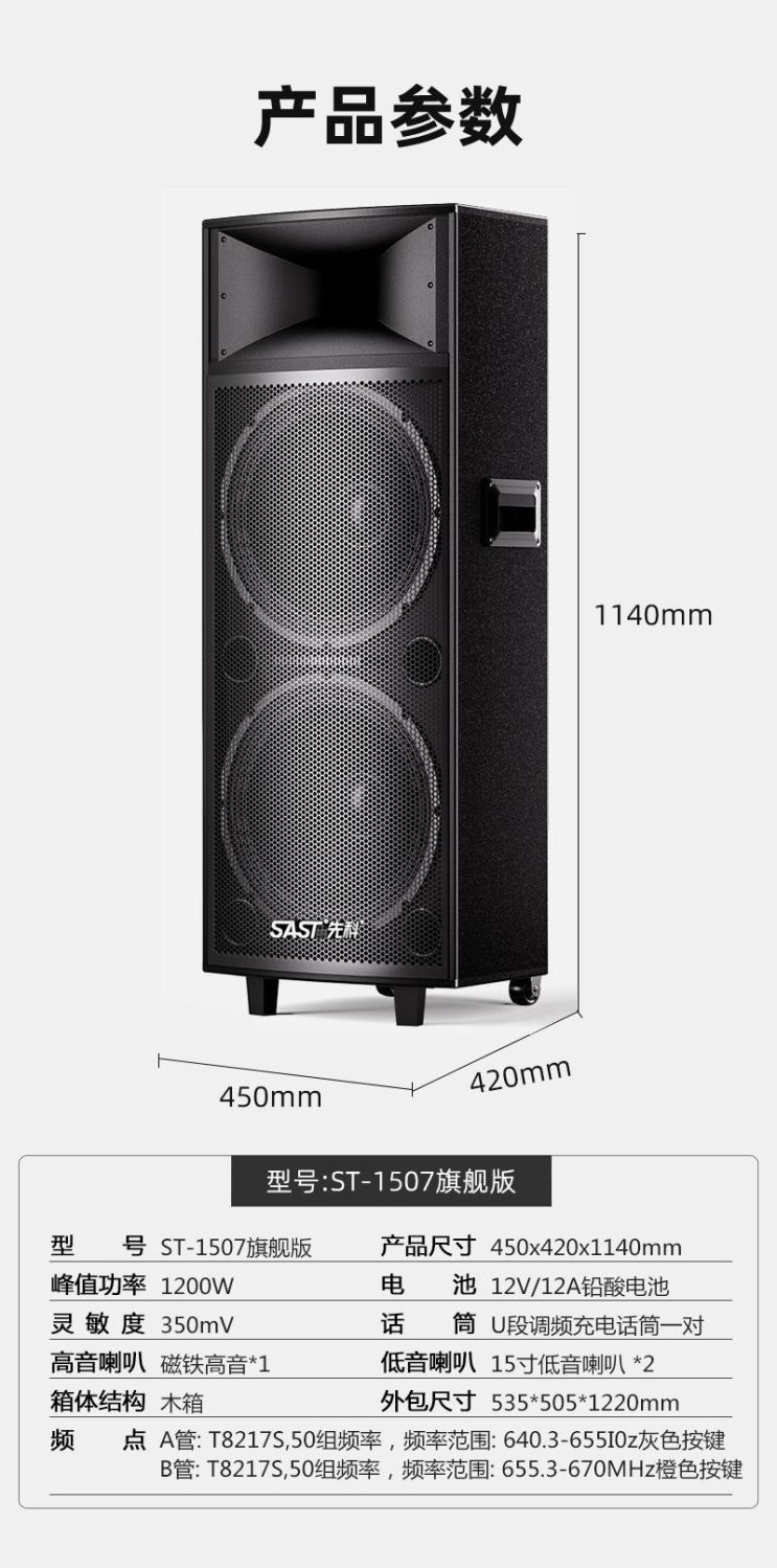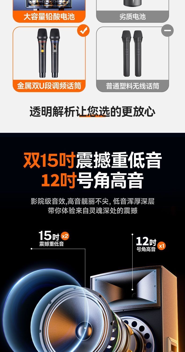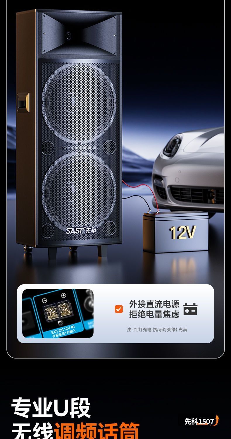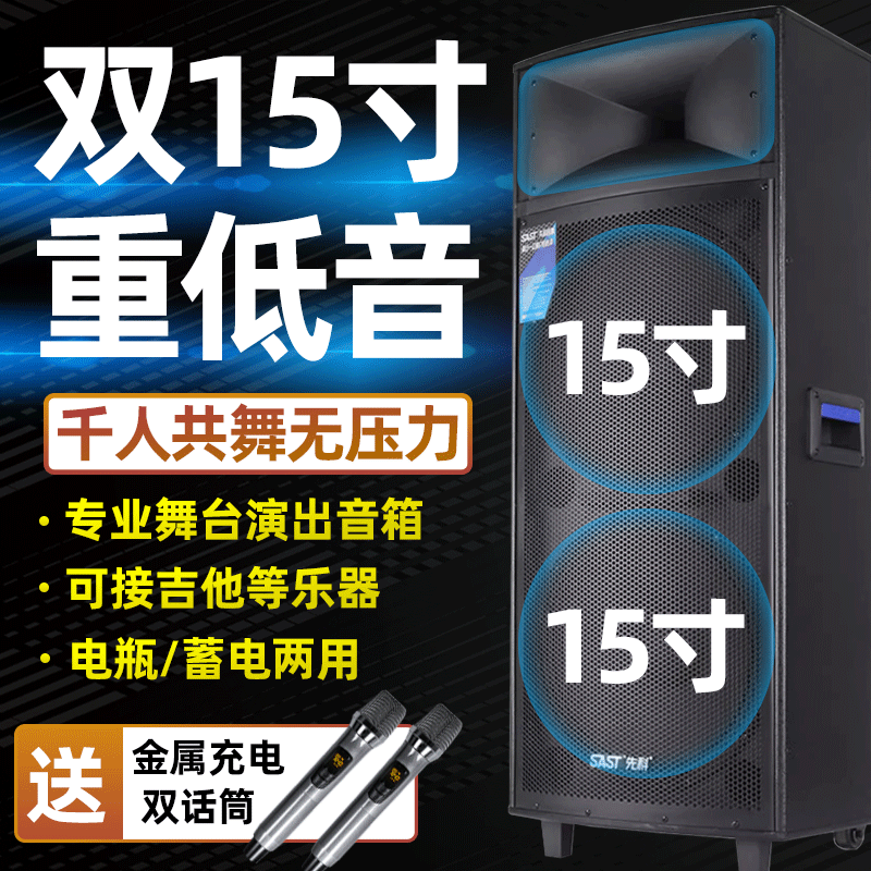 先科双15寸广场舞音响户外专业舞台演出音箱超重低音婚庆超大音量